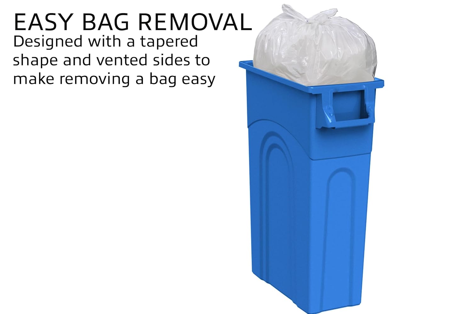 United Solutions Highboy Recycling Bin, 23 Gallon, Space Saving Slim Profile and Easy Bag Removal, Indoor or Outdoor Use, Integrated Handles for Easy Carrying, 4-Pack, Recycle Blue