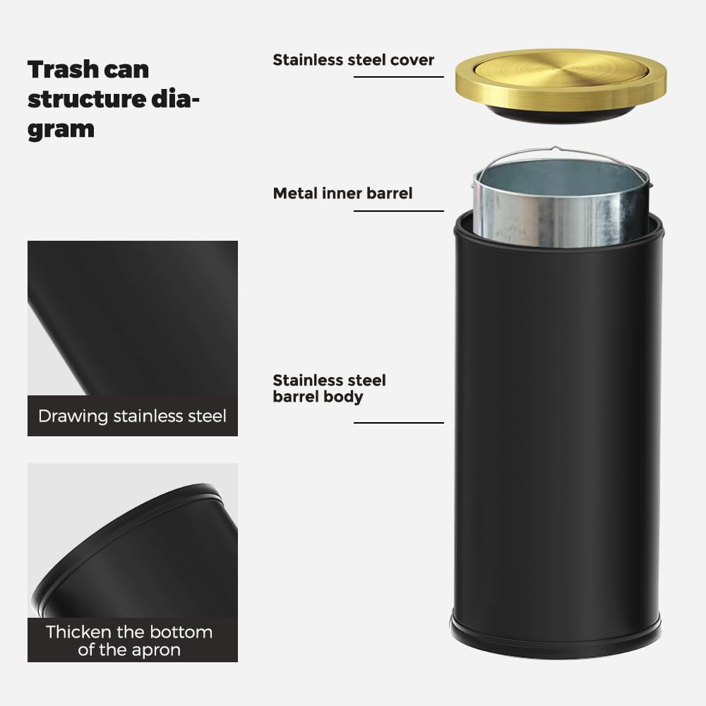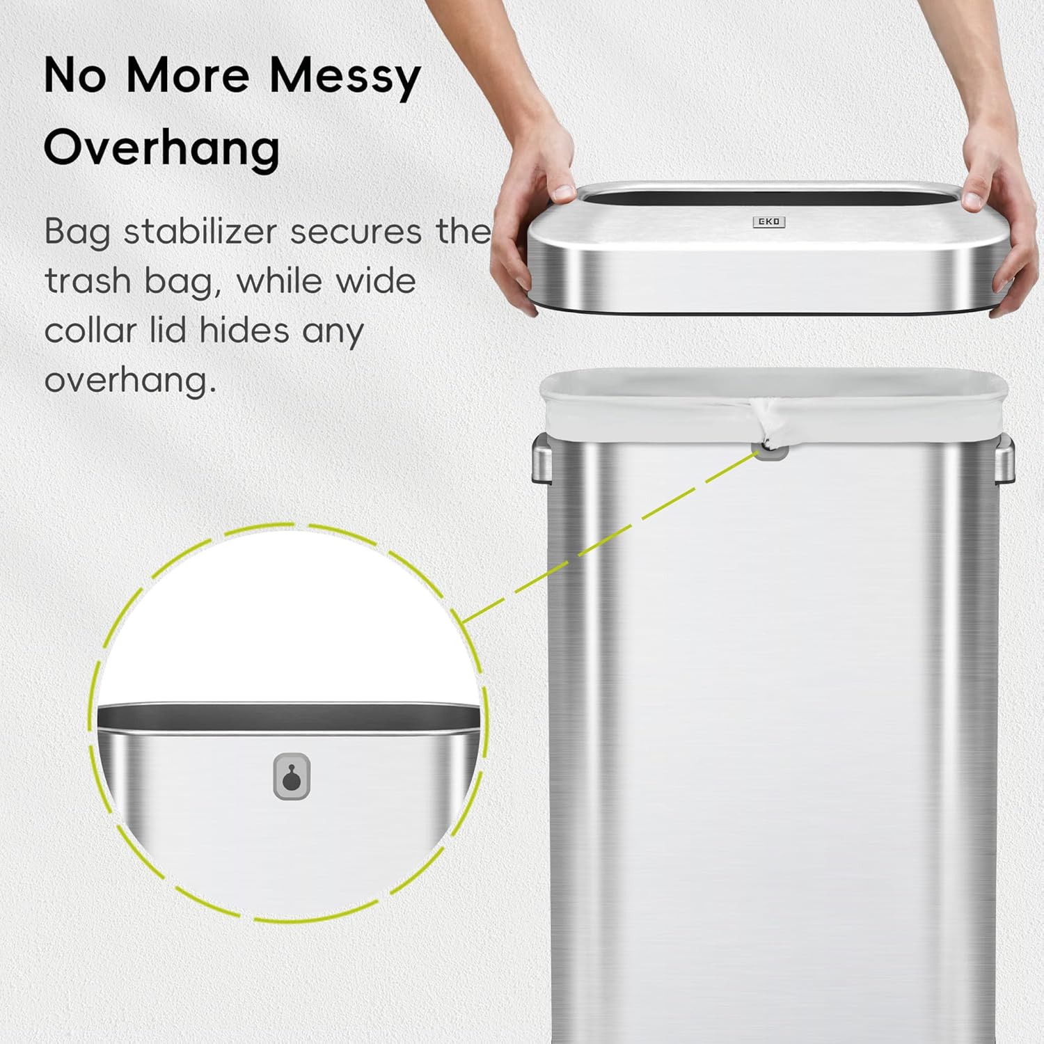 EKO Urban 24 Gallon/ 90 Liter Open Top Stainless Steel Slim Commercial Trash Can, Tall Kitchen Garbage Bin, Heavy-Duty Commercial Grade Large Trash Can for Home, Office, Hotel, Cafe, Restaurant, Dorm