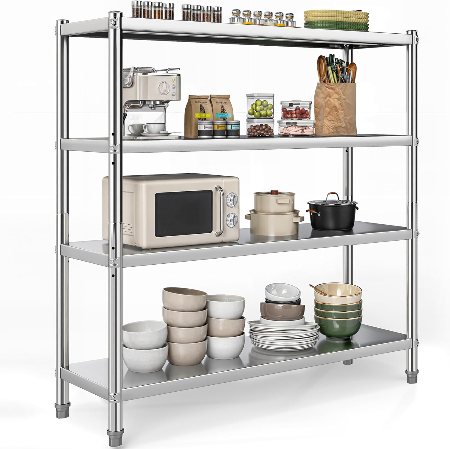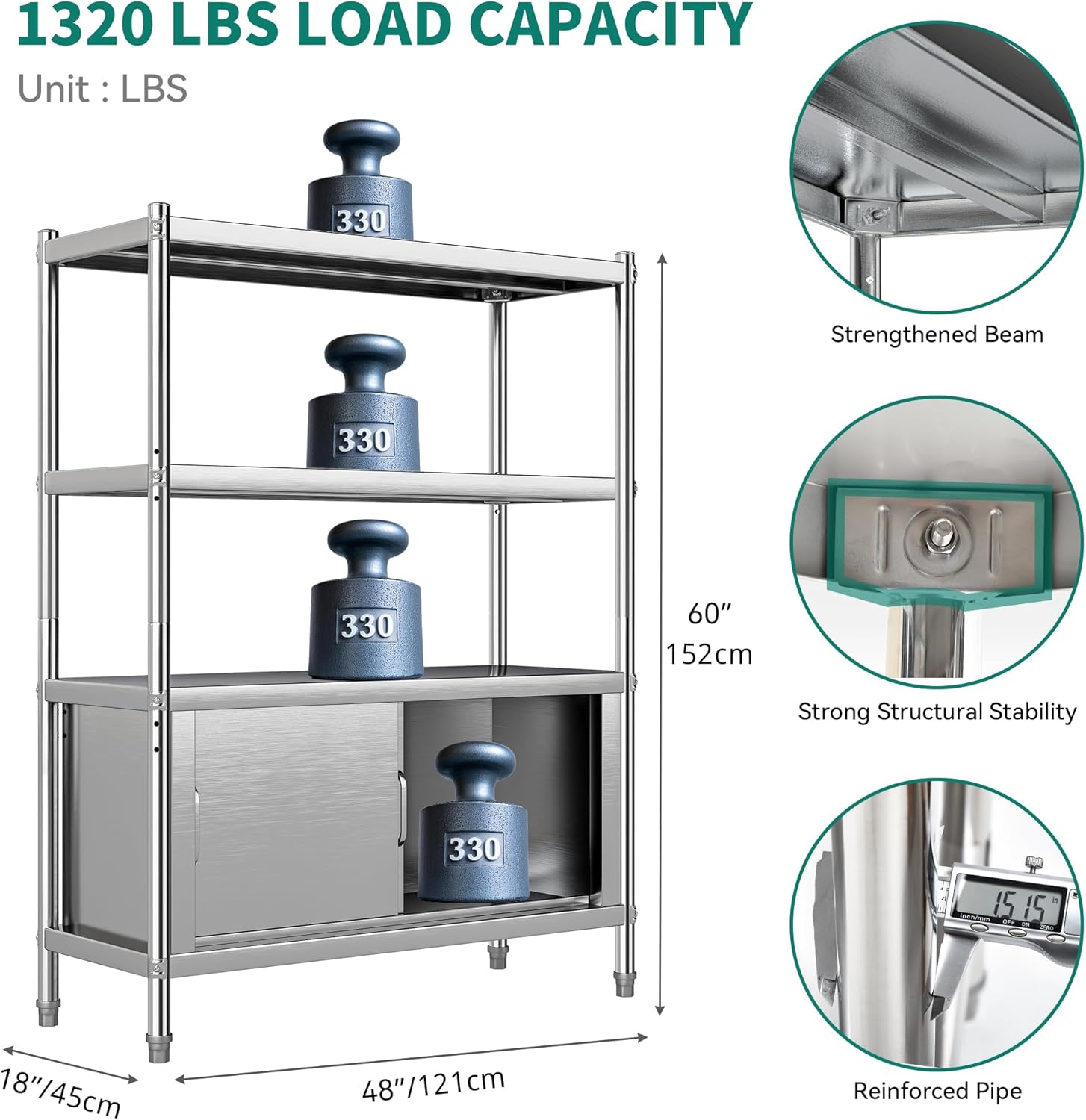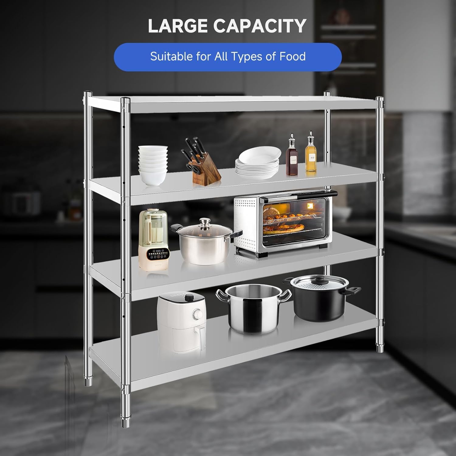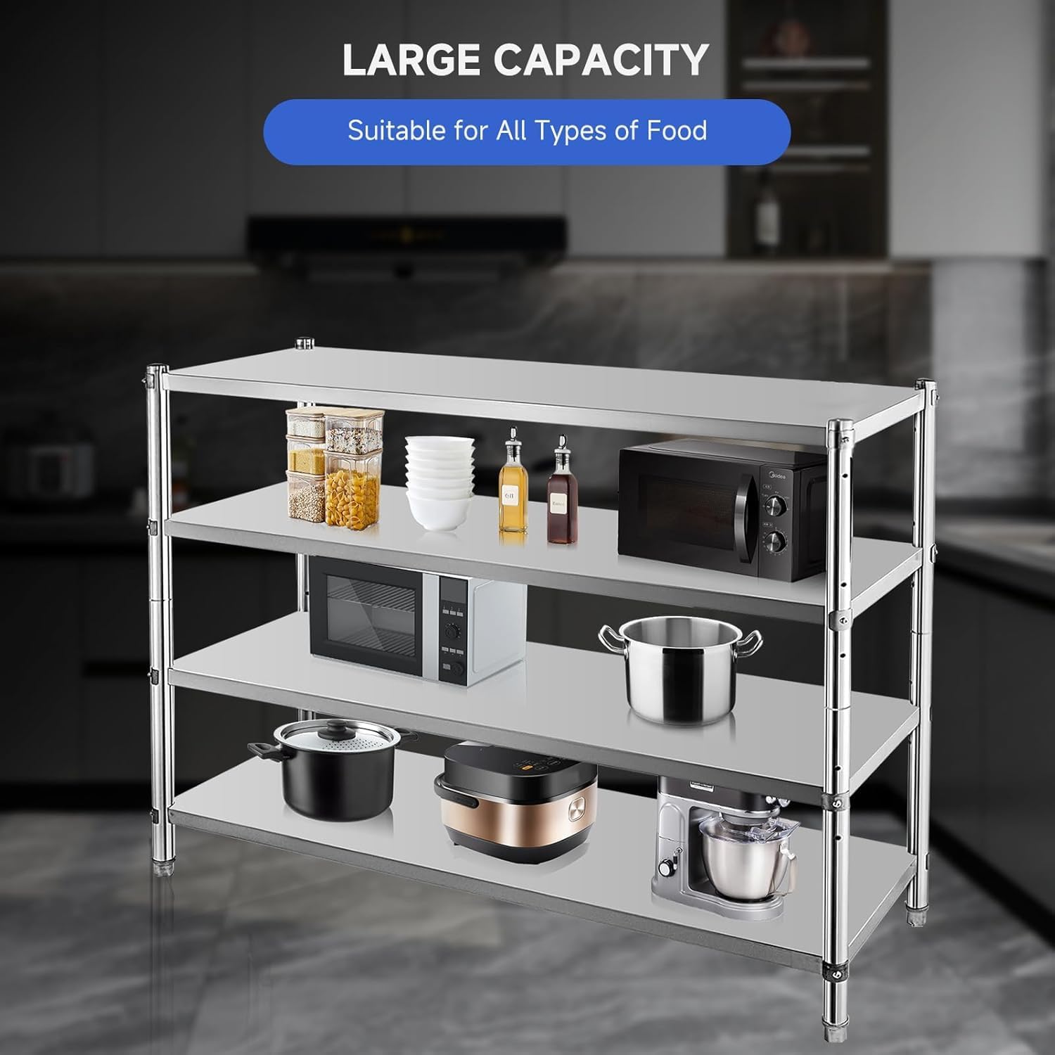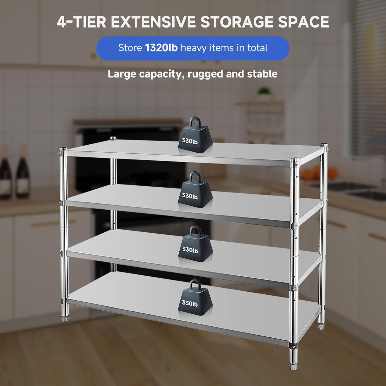 Stainless Steel Shelves,47x18x60 in Storage Shelf 4-Tier Heavy Duty Adjustable Shelf Unit for Kitchen Garage Office Restaurant Warehouse,330lb Per Shelf