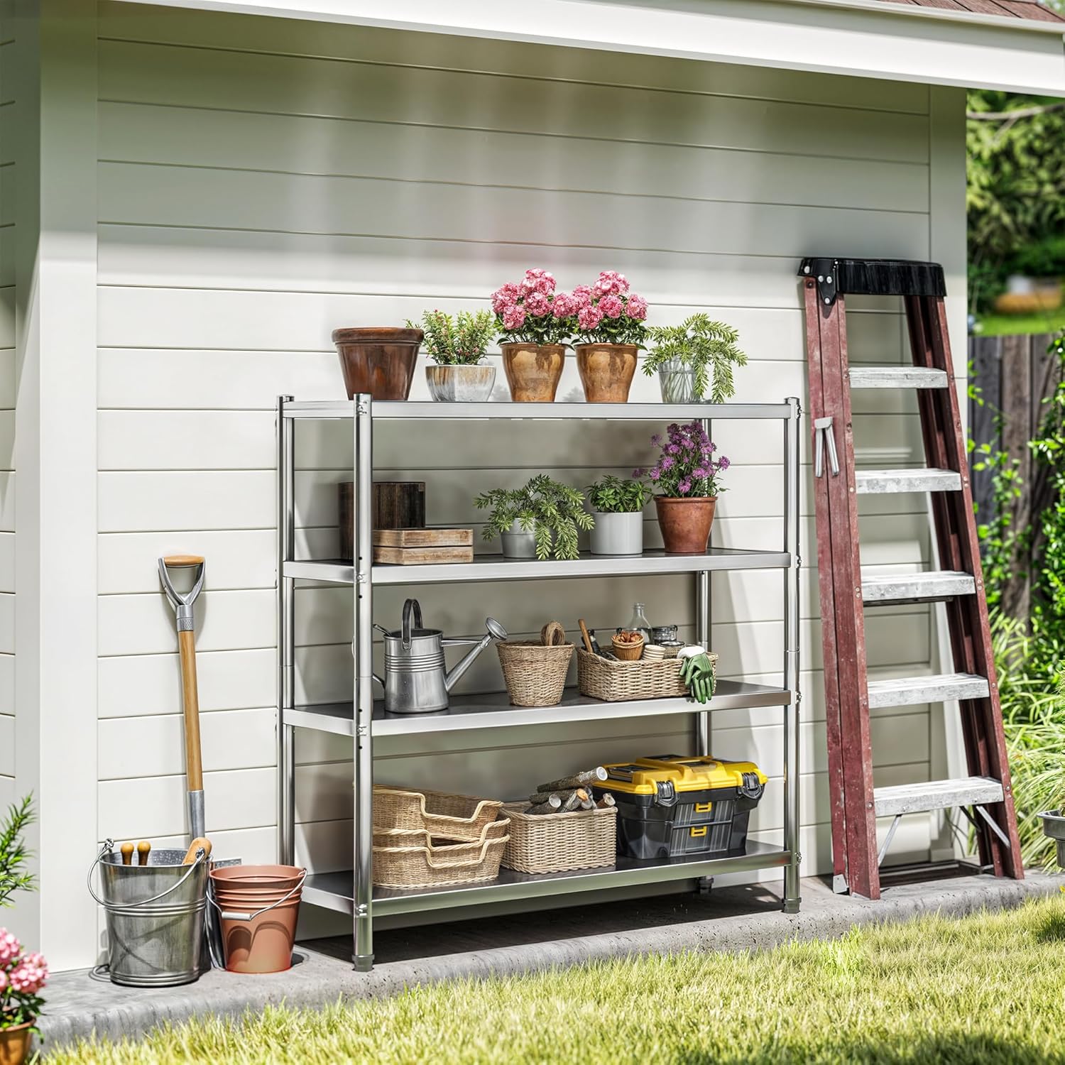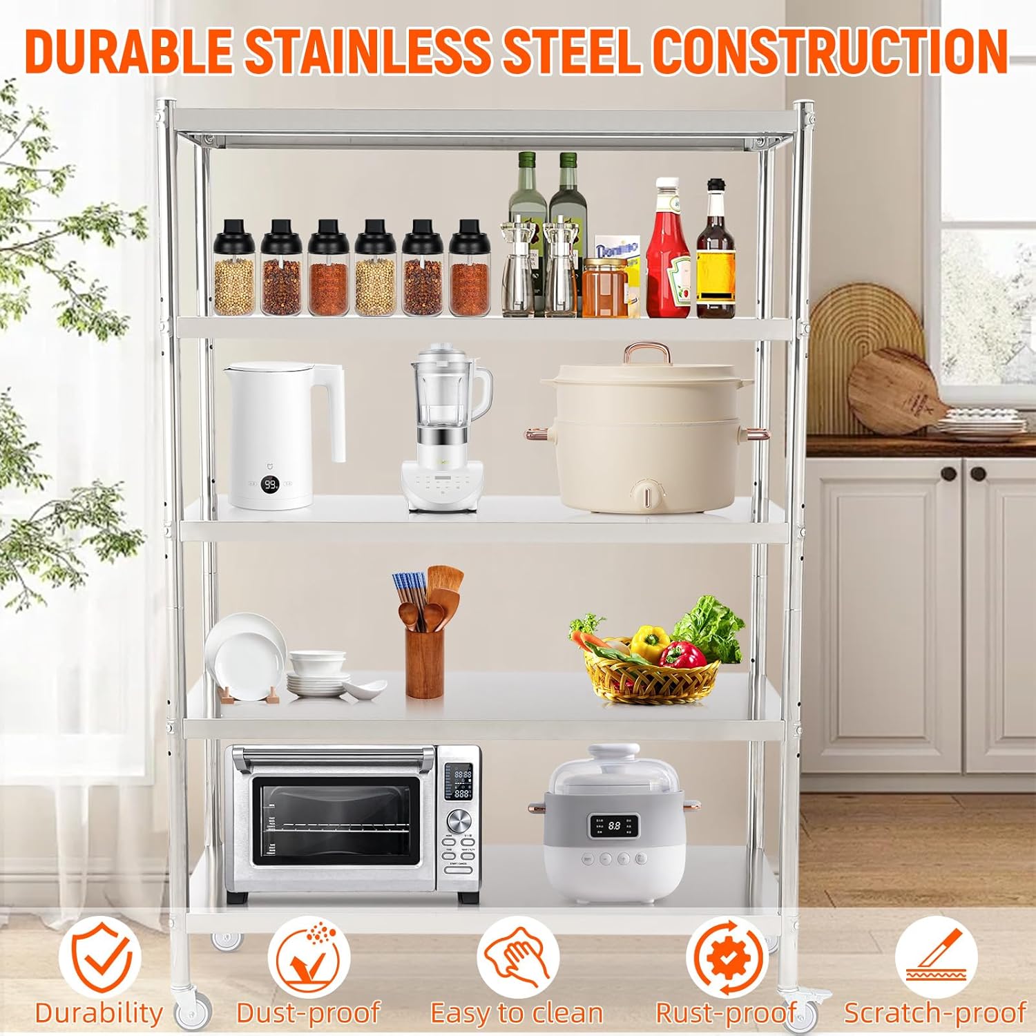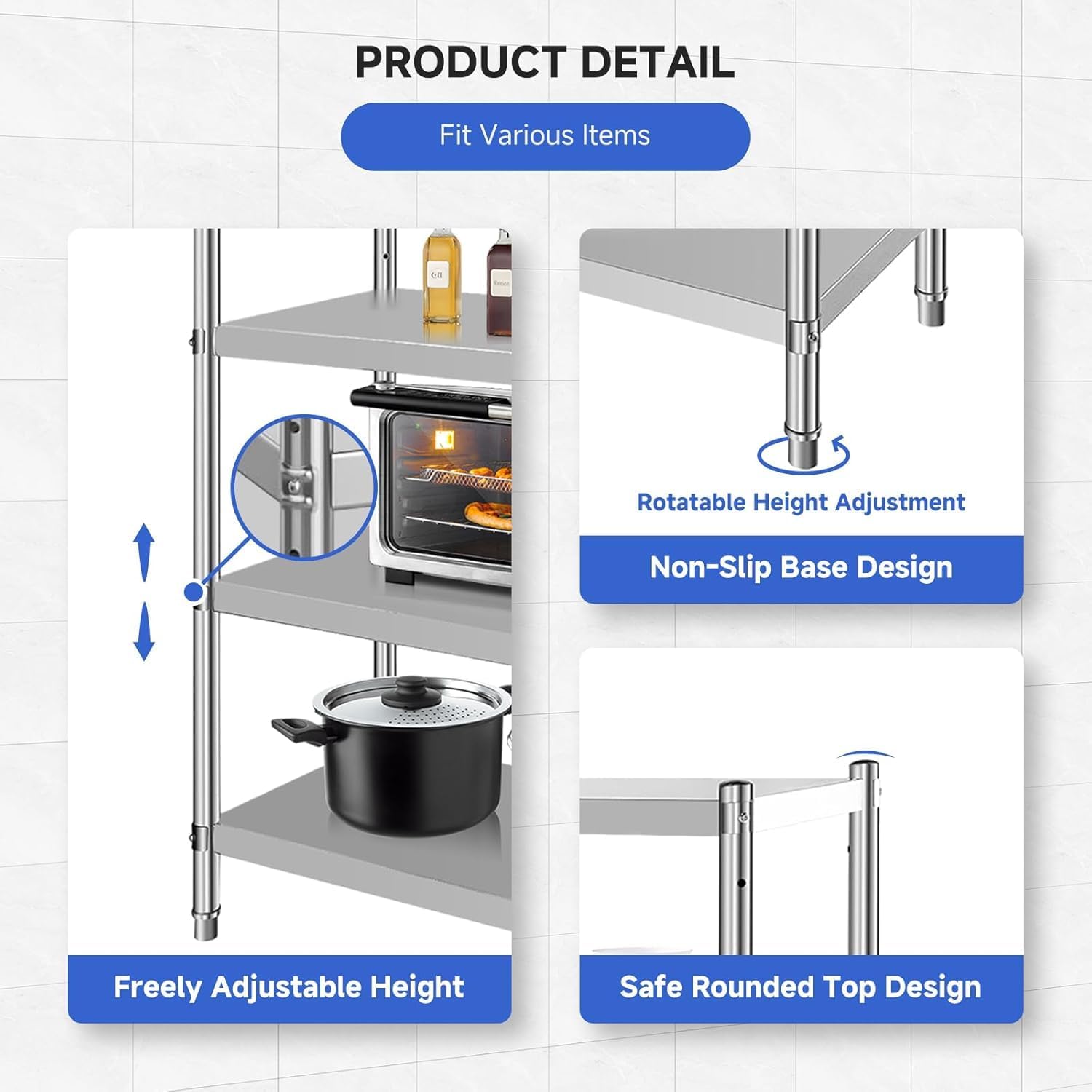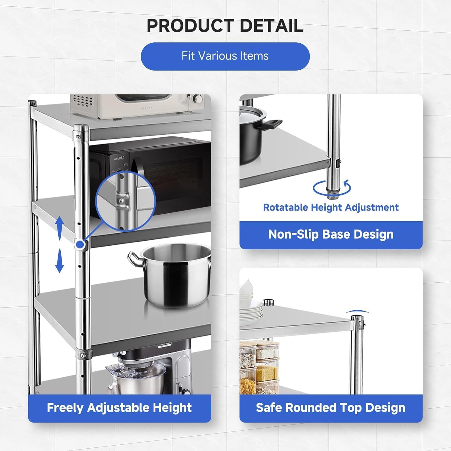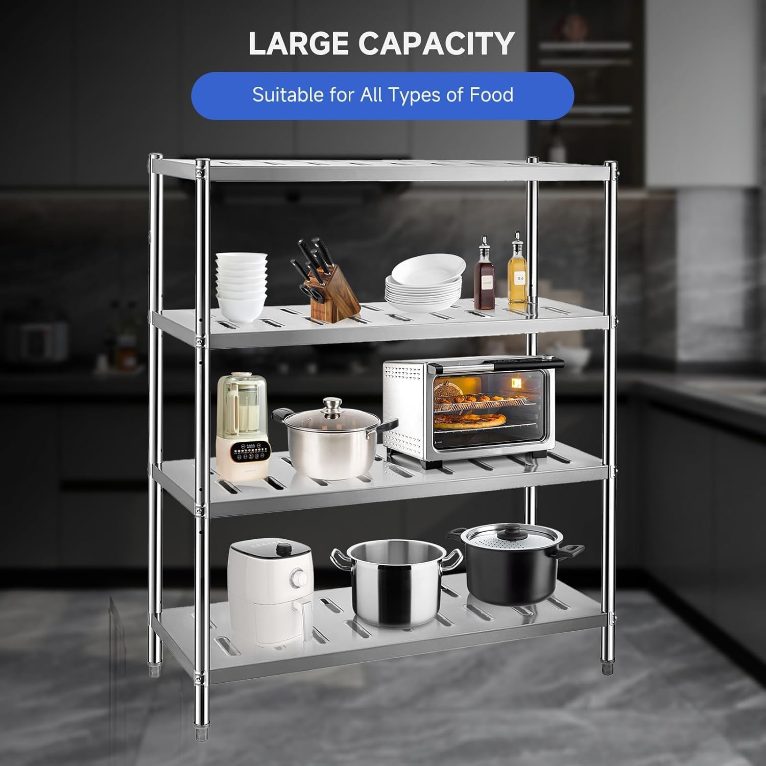 Stainless Steel Shelves,47x18x60 in Storage Shelf 4-Tier Heavy Duty Adjustable Shelf Unit for Kitchen Garage Office Restaurant Warehouse,330lb Per Shelf