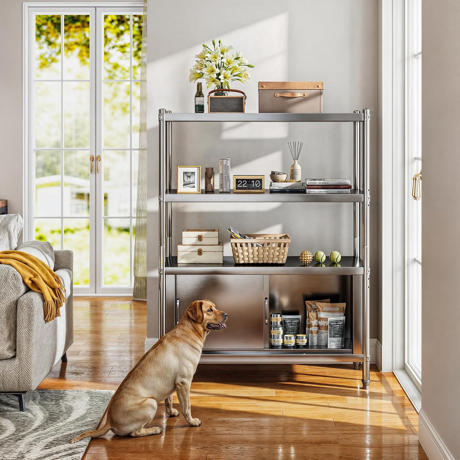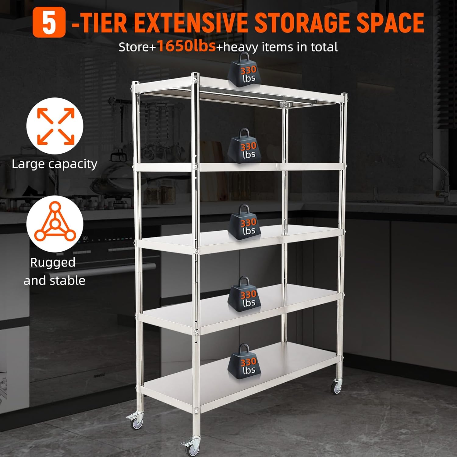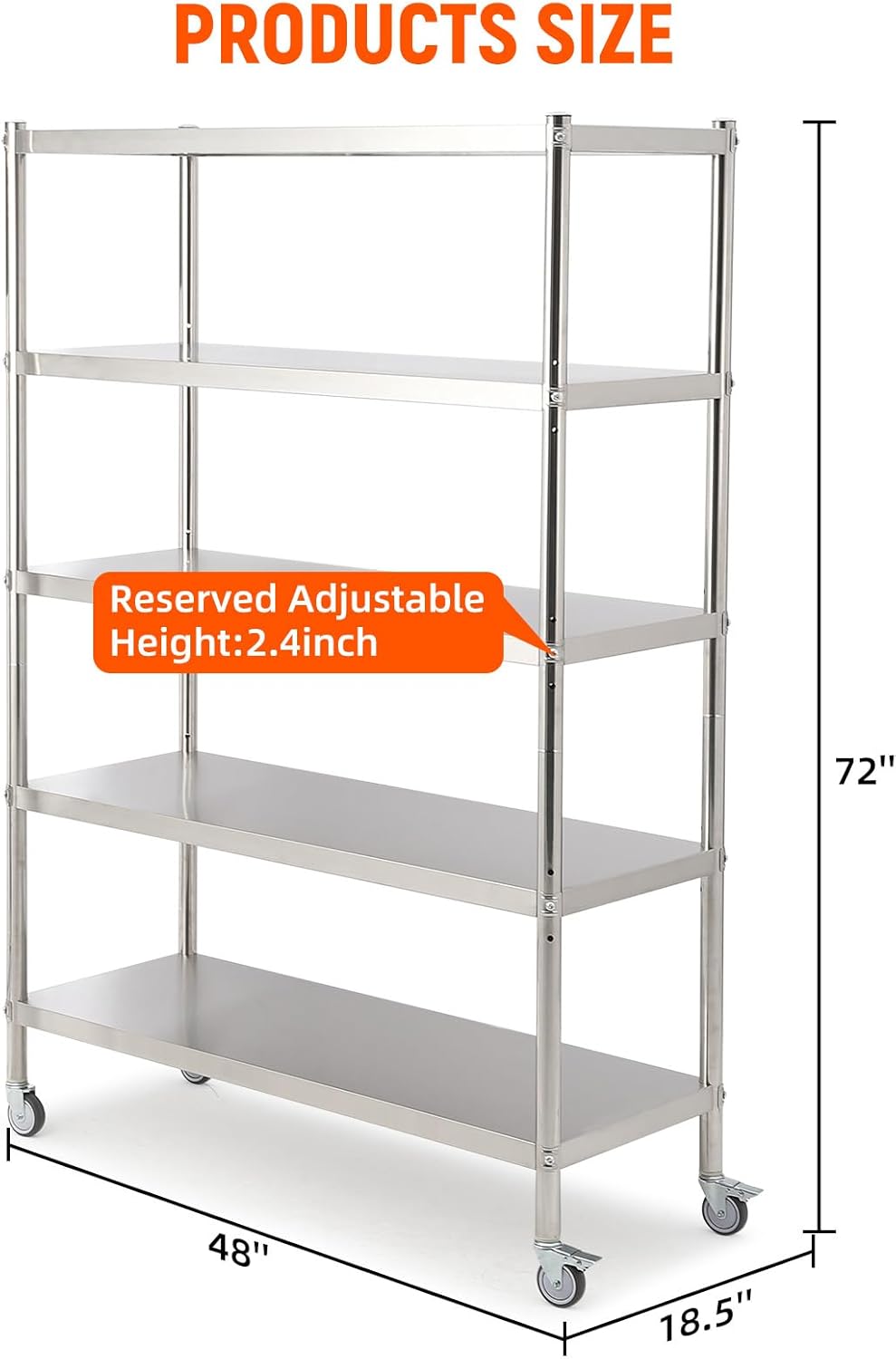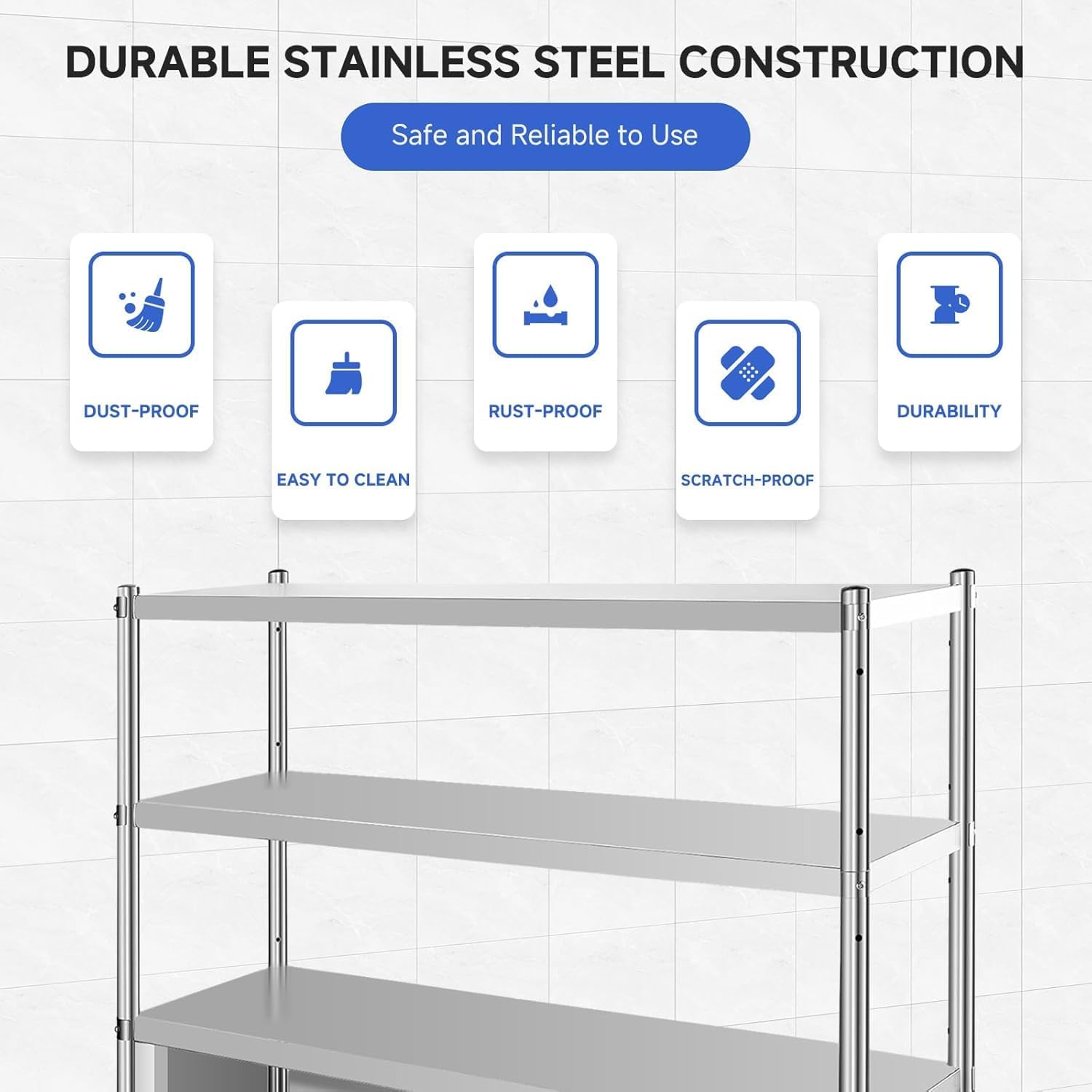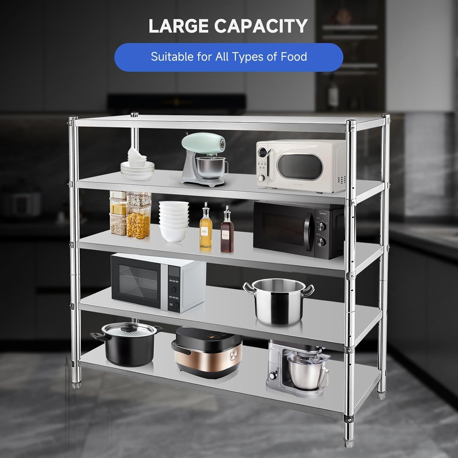 Stainless Steel Shelves,47x18x60 in Storage Shelf 4-Tier Heavy Duty Adjustable Shelf Unit for Kitchen Garage Office Restaurant Warehouse,330lb Per Shelf