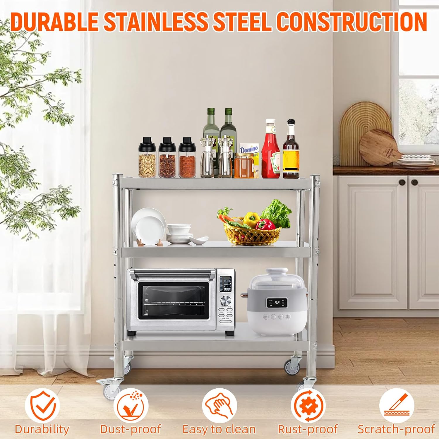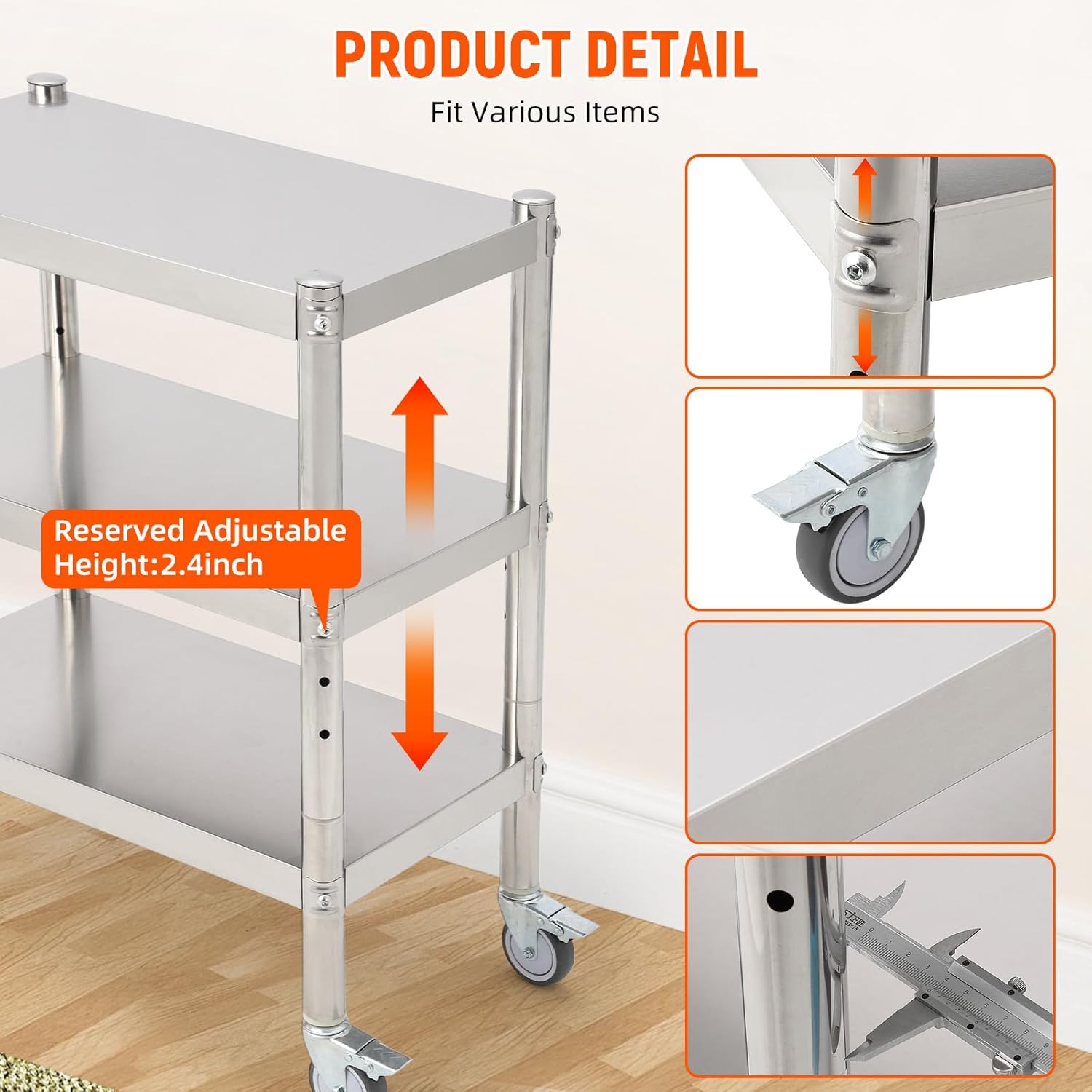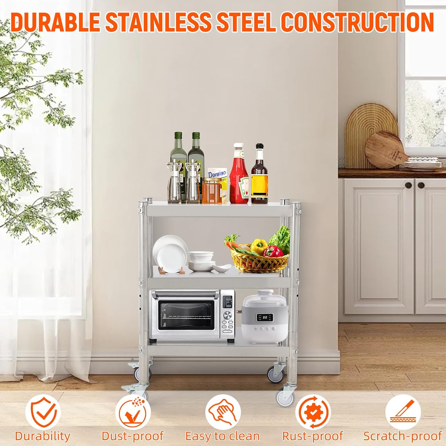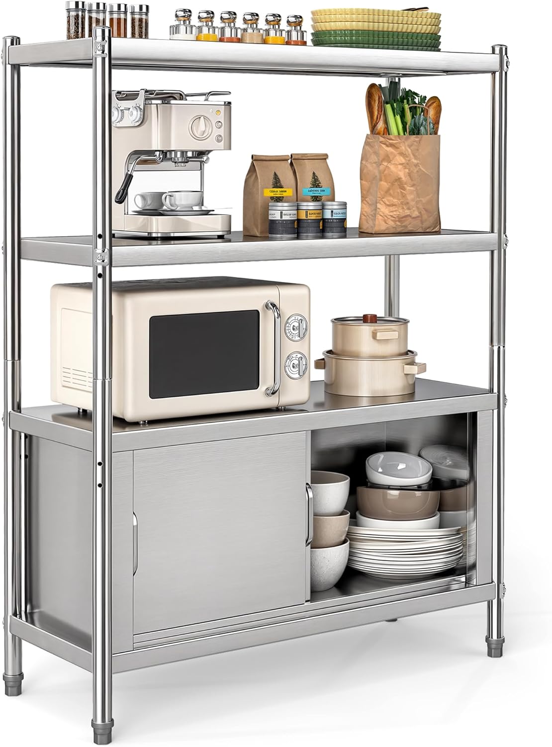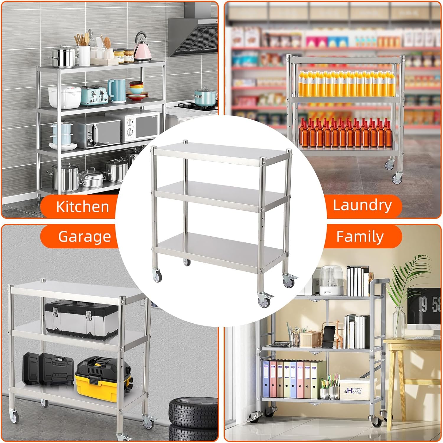 Stainless Steel Shelves,47x18x60 in Storage Shelf 4-Tier Heavy Duty Adjustable Shelf Unit for Kitchen Garage Office Restaurant Warehouse,330lb Per Shelf