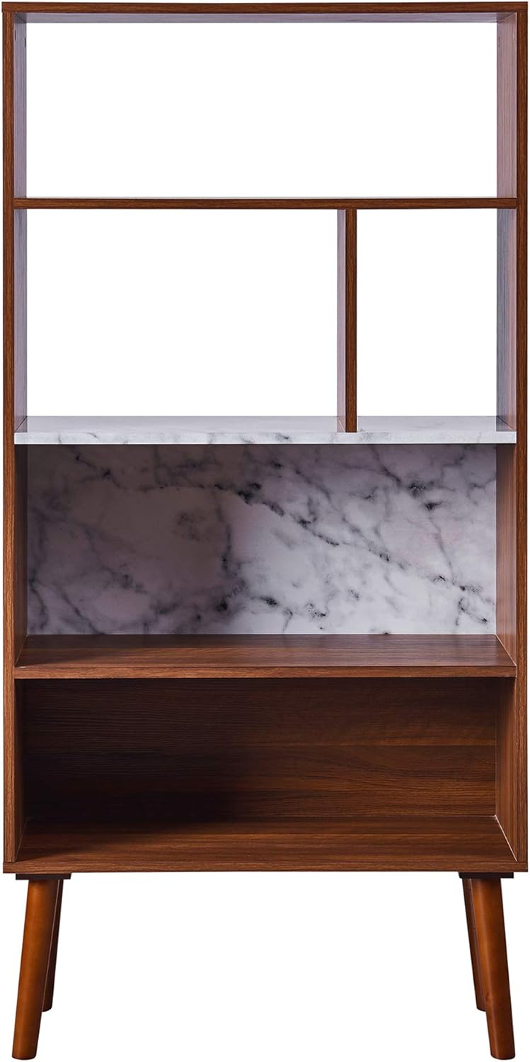 Teamson Home Marmo Modern Marble-Look 5-Tier Display Shelf, Faux Marble/Brass