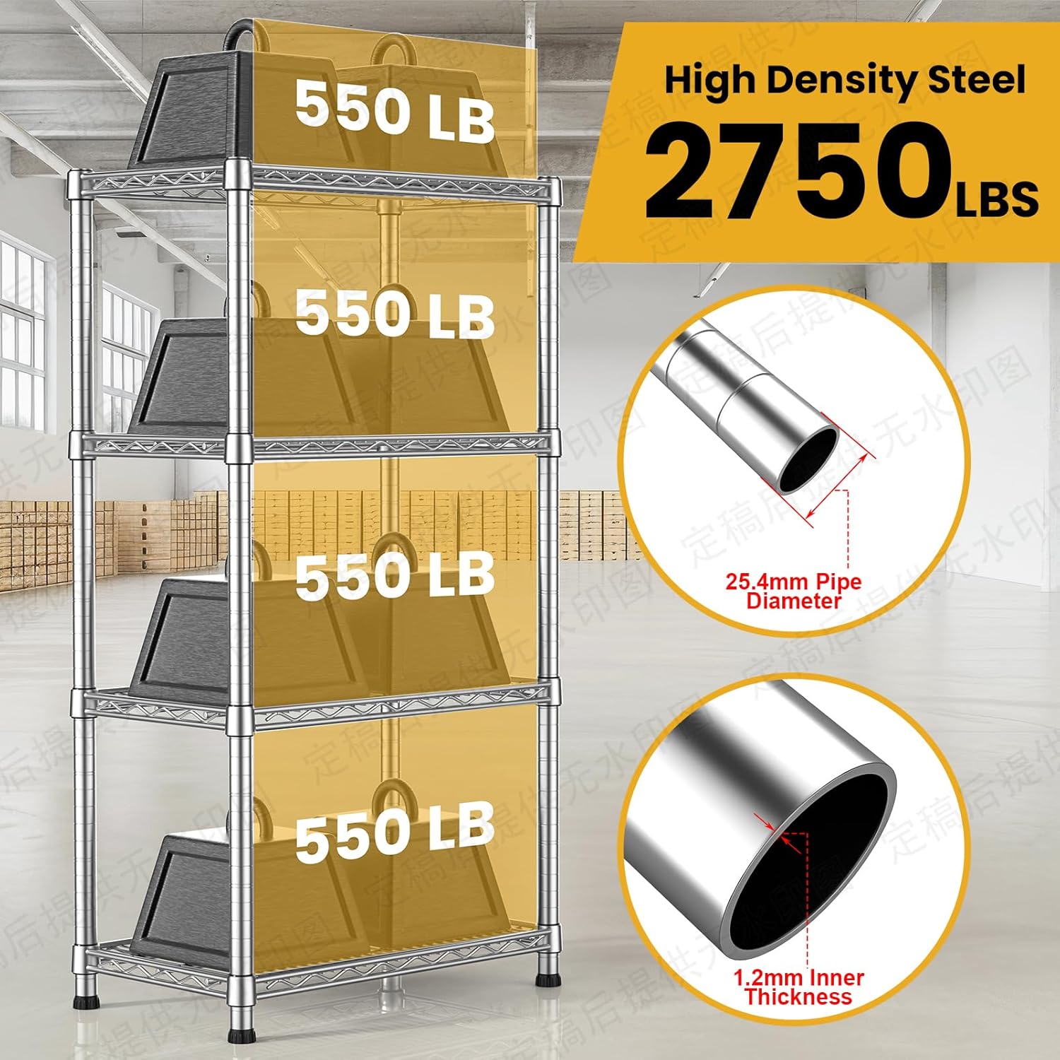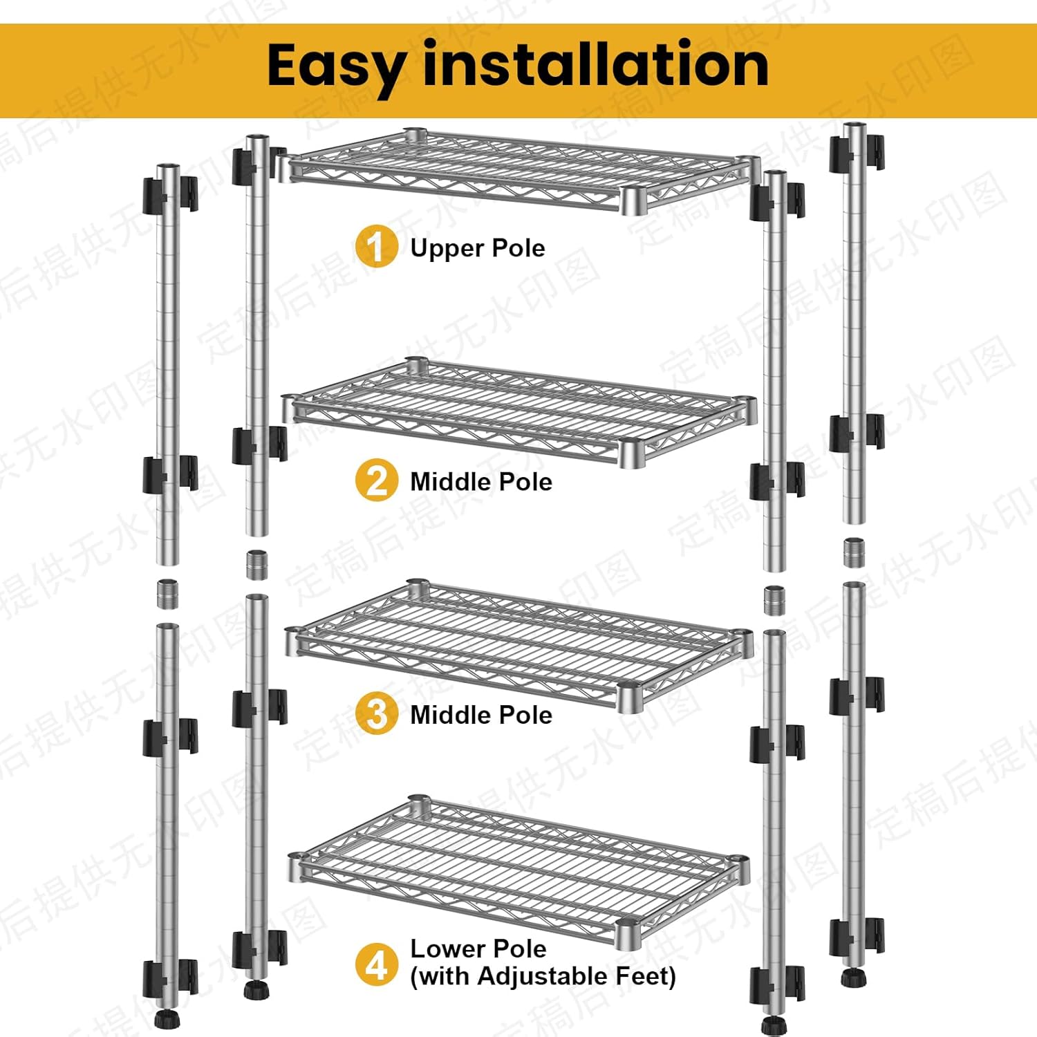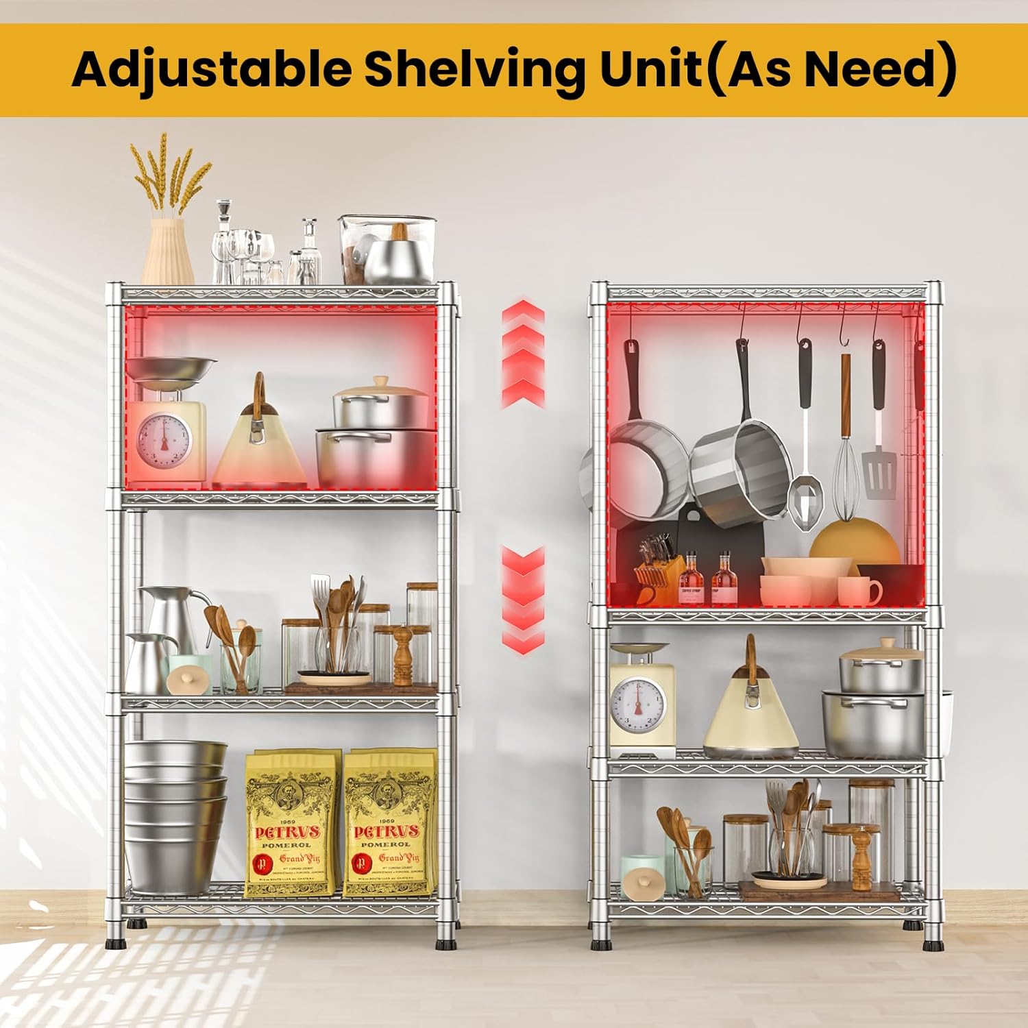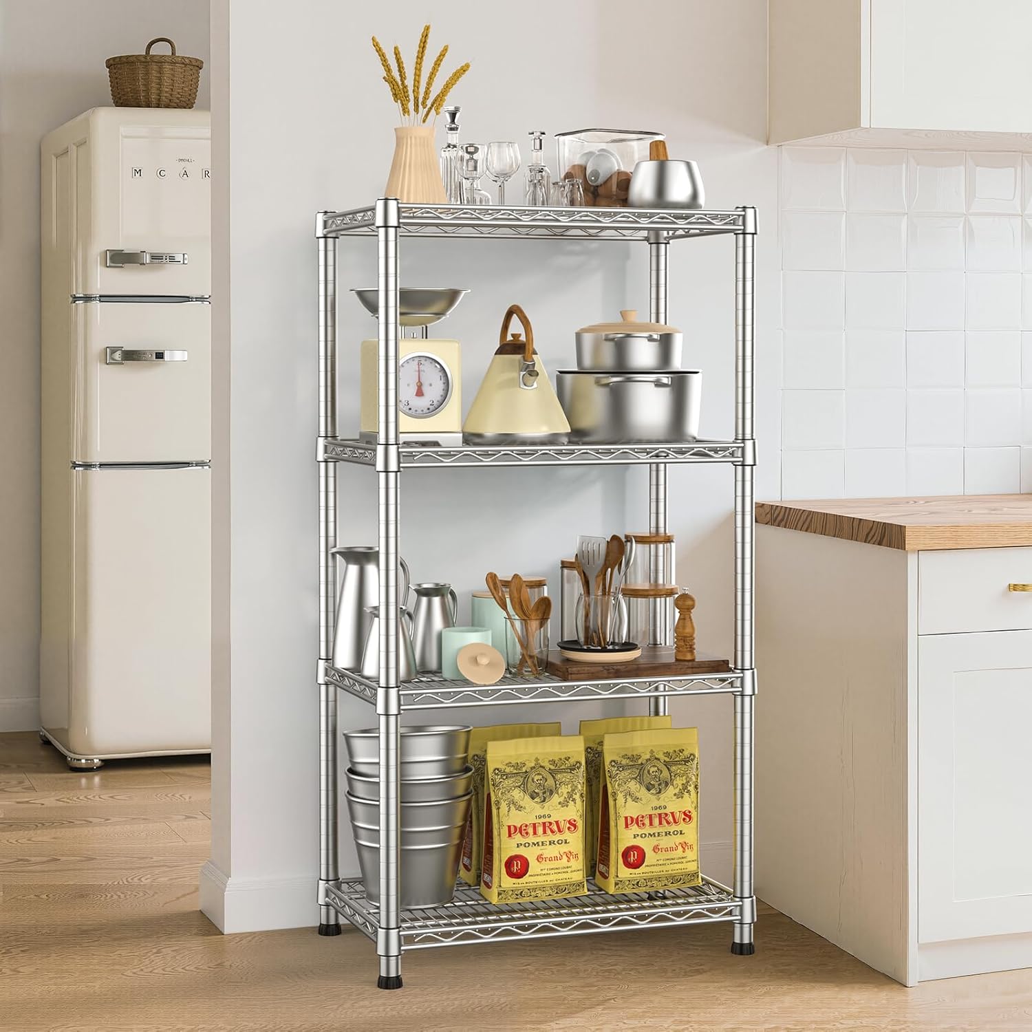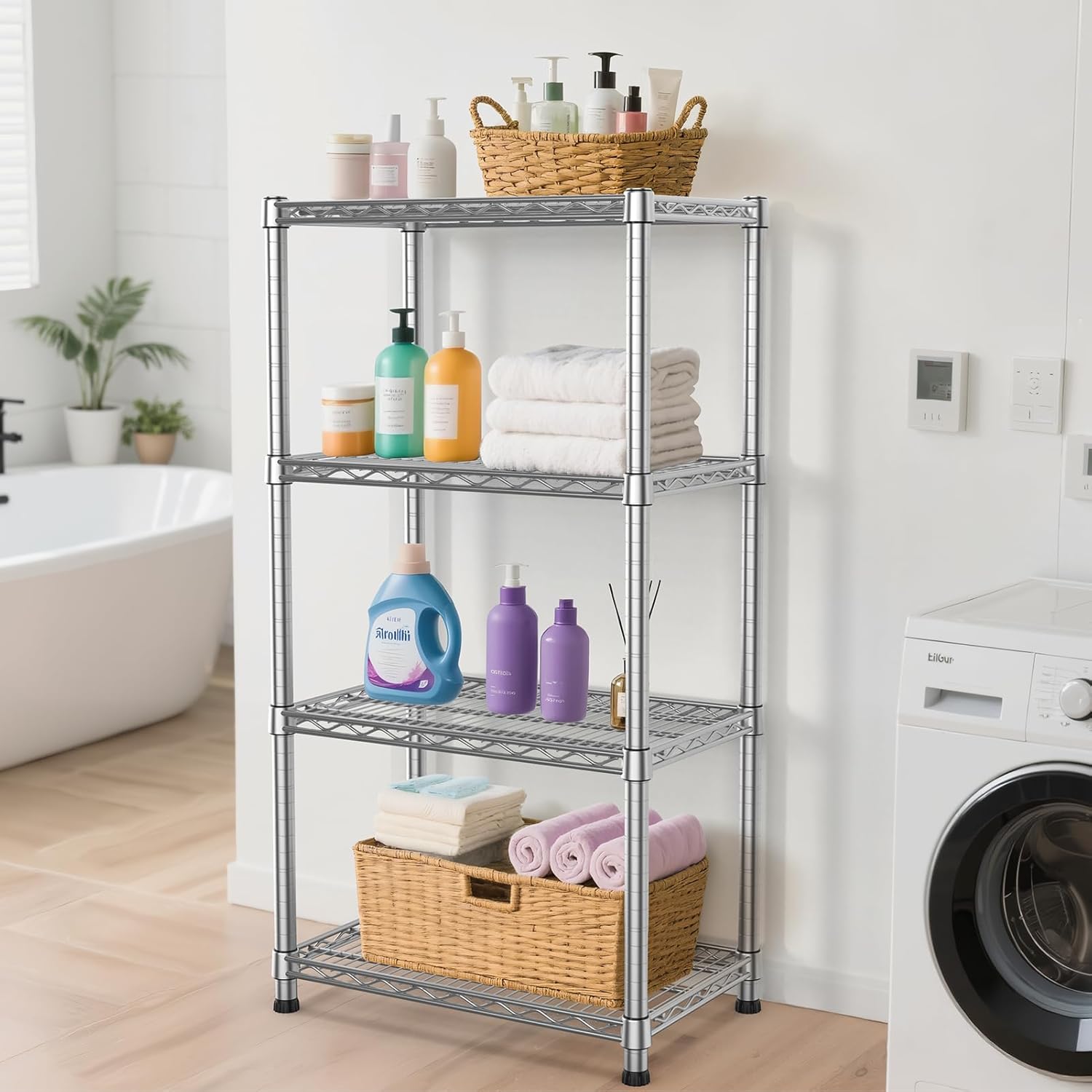 4 Tier Storage Shelving Garage Shelves Wire Shelving Unit Adjustable Metal Storage Shelving Racks Units Heavy-Duty 2200 LBS Shelf rganize,for Pantry Garage Laundry Bathroom Kitchen School Closet