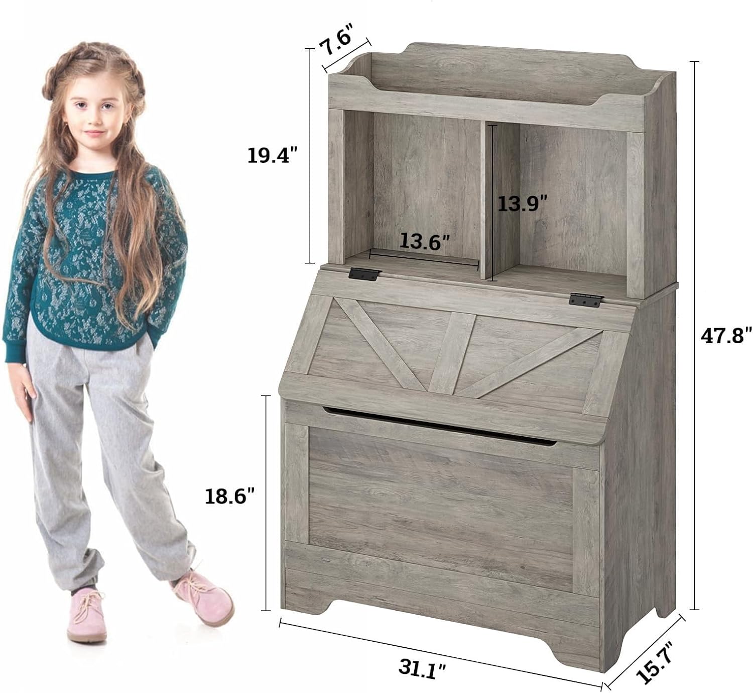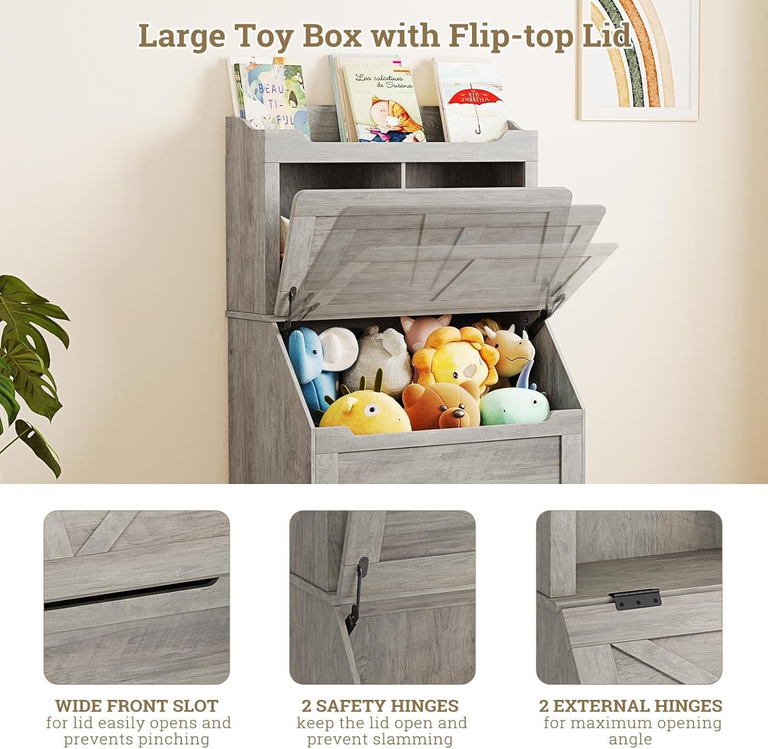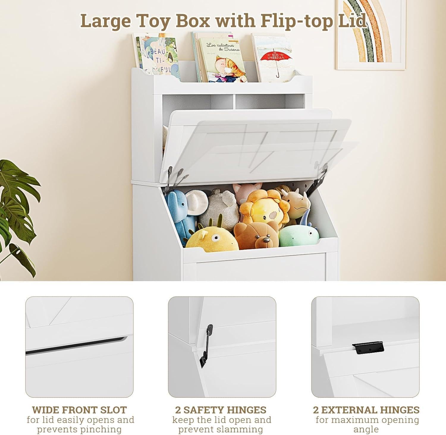 Spacious 3-tier Wooden Kids Bookcase and Toy Storage Organizer with Flip-Top Lid, Versatile Design for Playroom, Bedroom, Nursery, and Kindergarten - Child-Friendly Toy Chest Organizer