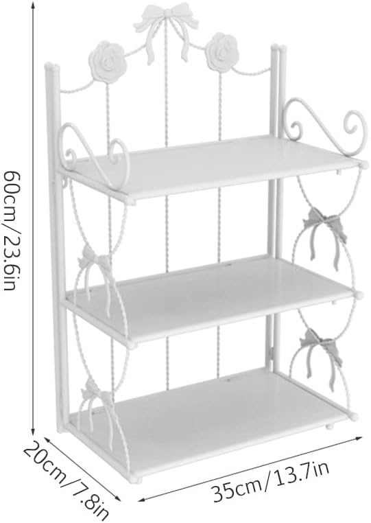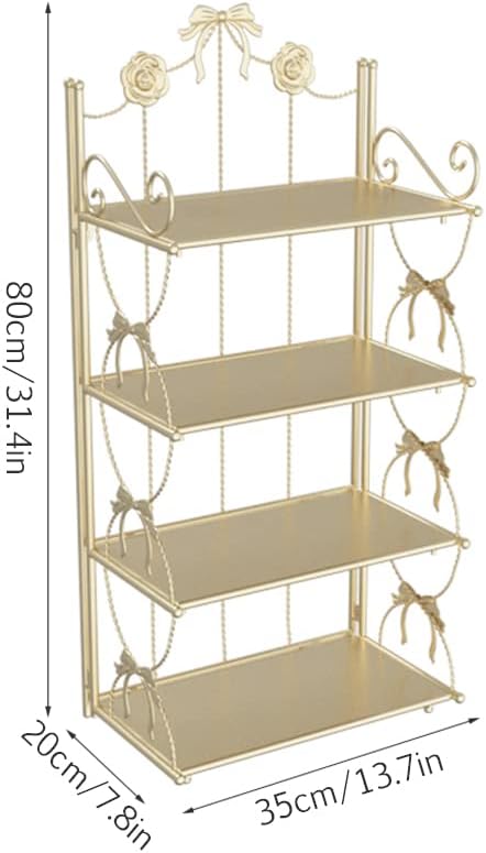 BOOMALTU Cute 4-Tier Folding Metal Shelving Bathroom Shelf,Gold Shelves Bookshelf with Bow Decor and Flowers for Storage and Display in Living Room, Bathroom,Kitchen