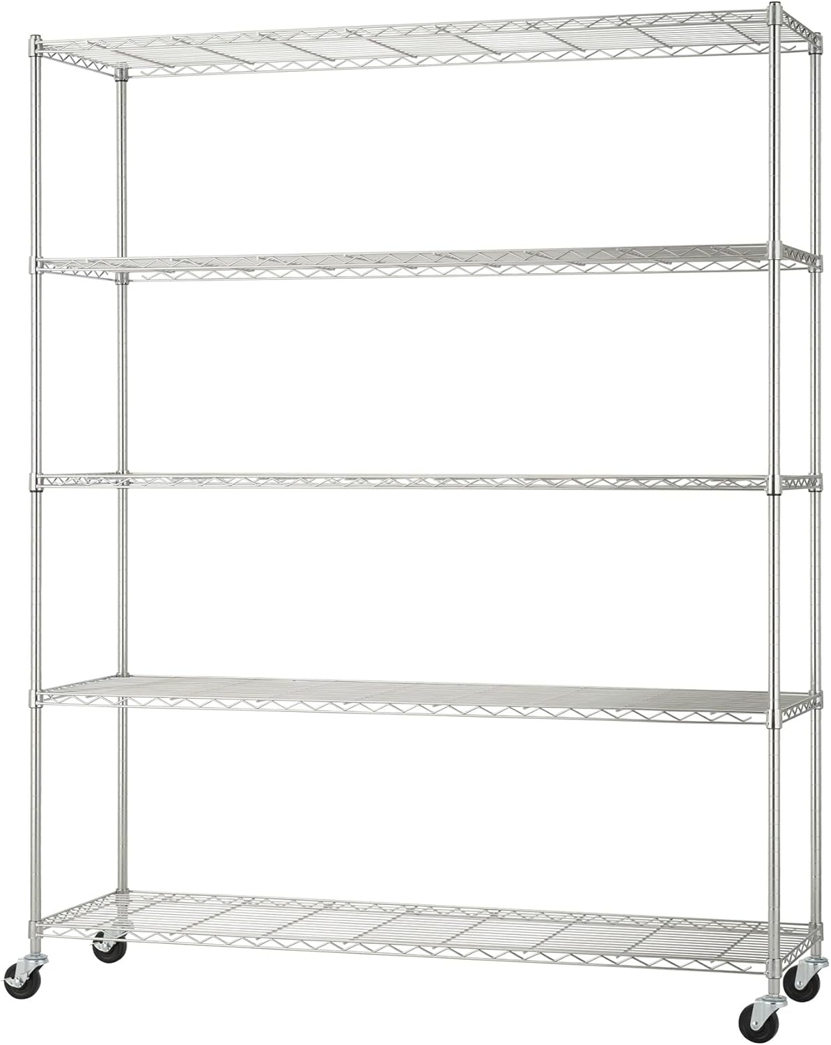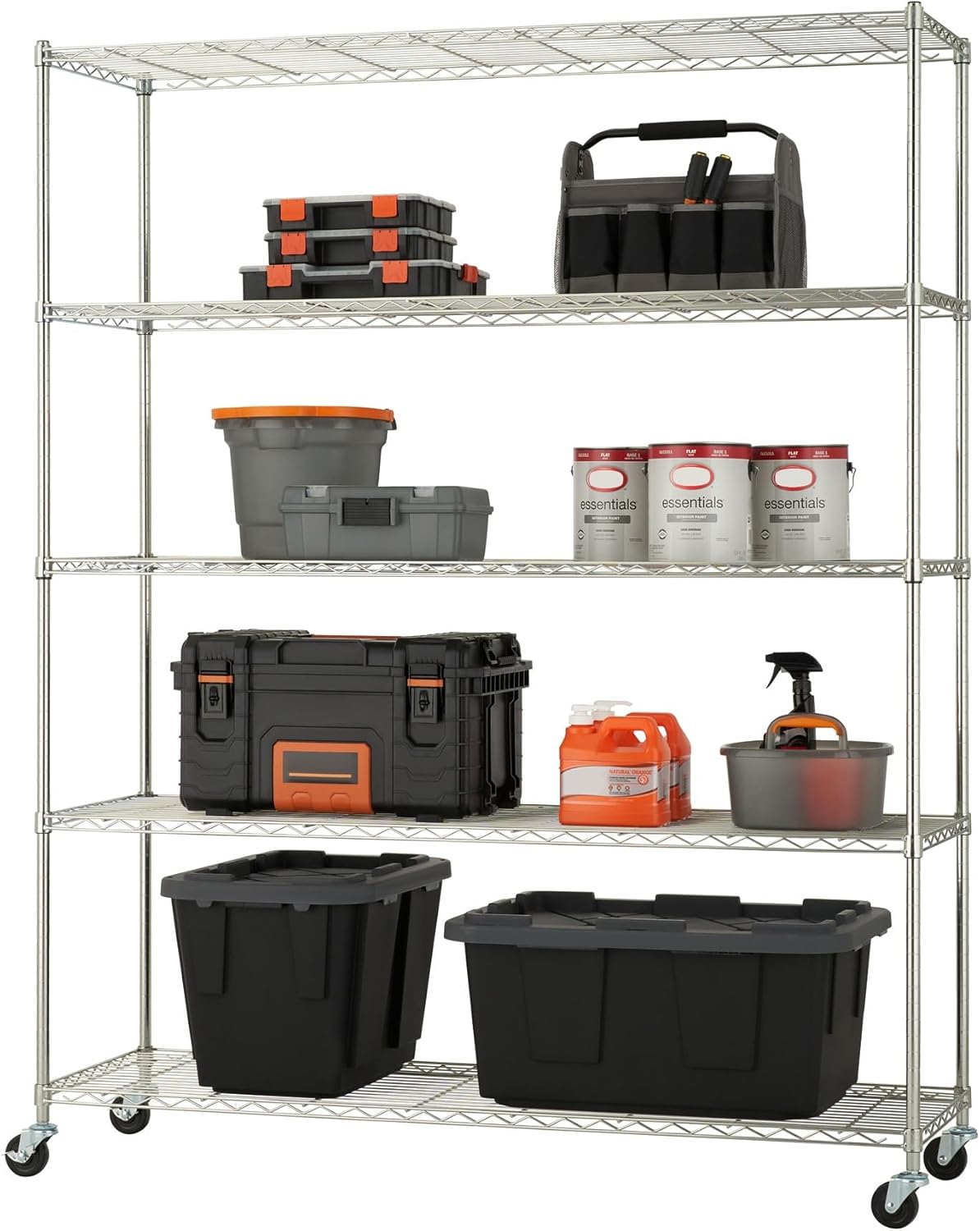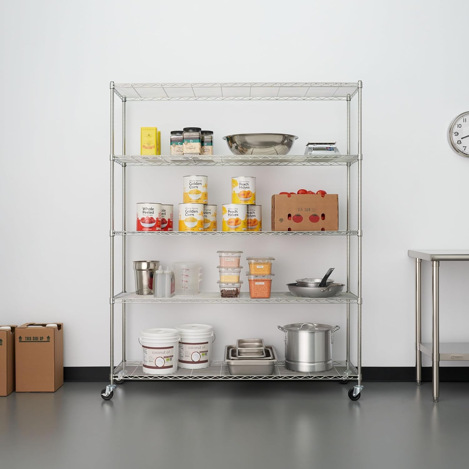 5-Tier Adjustable Wire Shelving with Wheels, Wire Shelf Rack for Kitchen Organization, Garage Storage, 400 to 2000 Pound Capacity, NSF Certified, 36” x 18” x 72”, Black