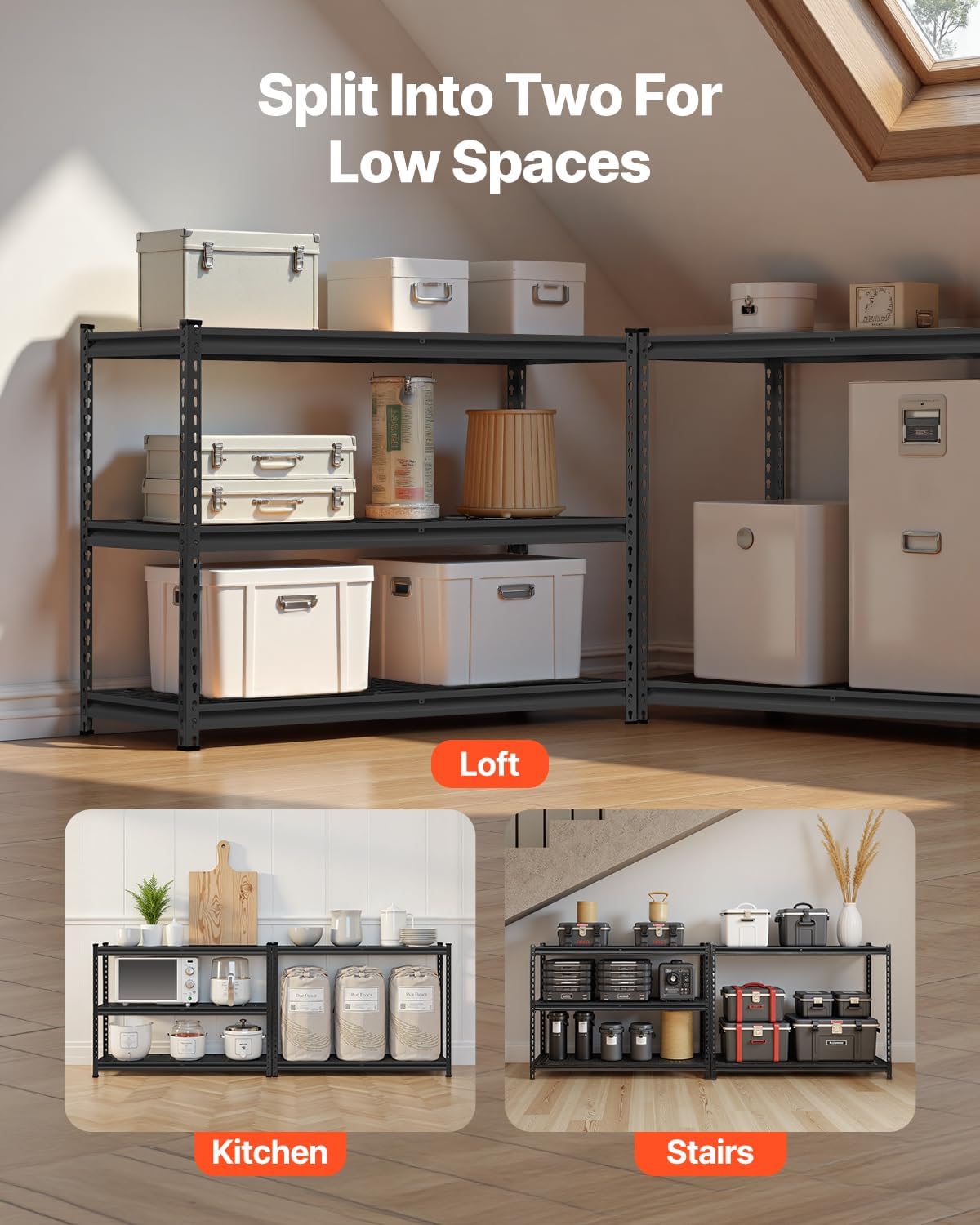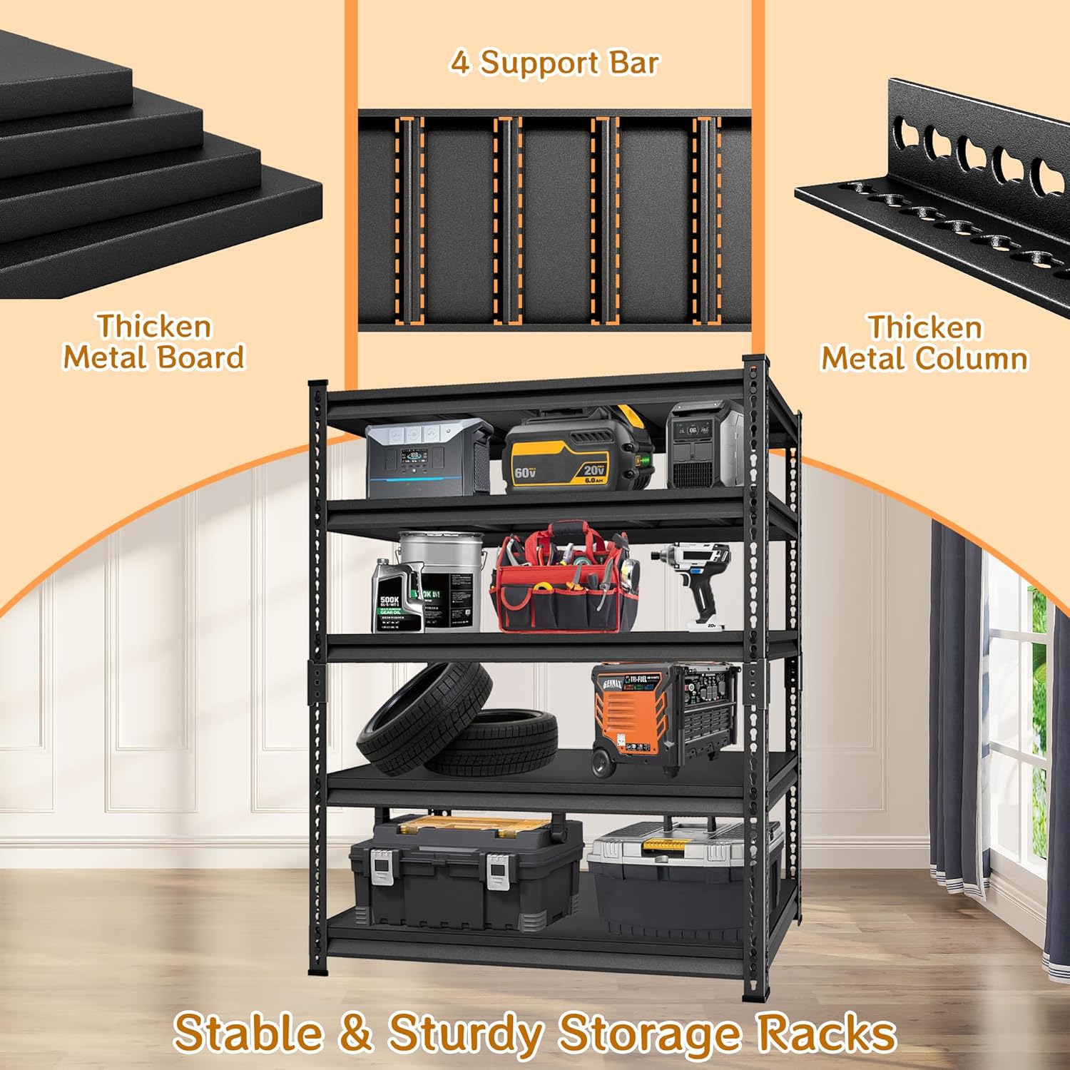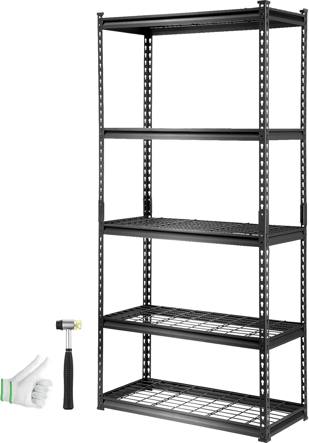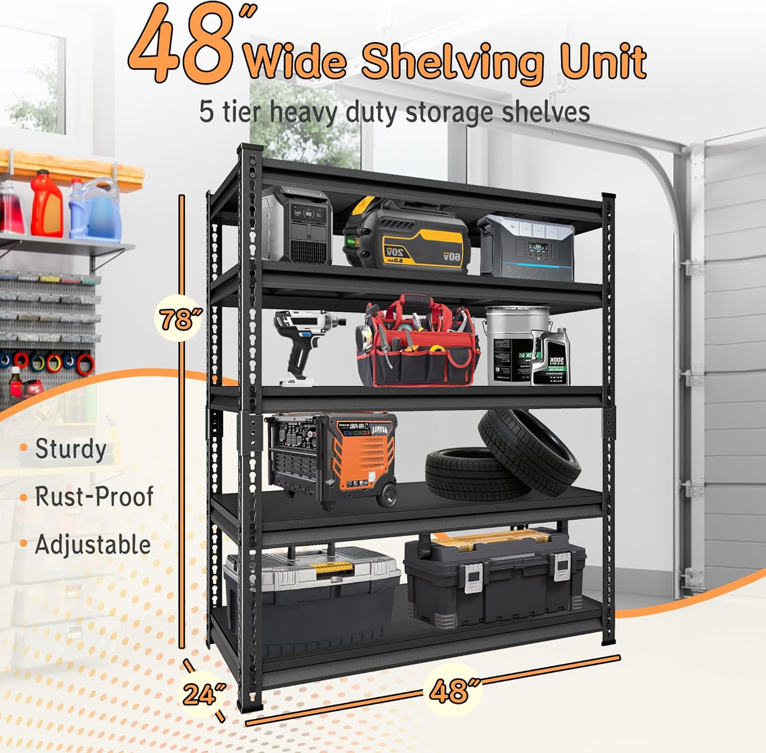 VEVOR Storage Shelves, 2500 lbs, 5 Tier Heavy Duty Garage Shelving, 18" D x 48" W x 72" H Adjustable Metal Shelves for Industrial Shelving Unit Utility Shelf, for Kitchen, Warehouse, Basement, Orange