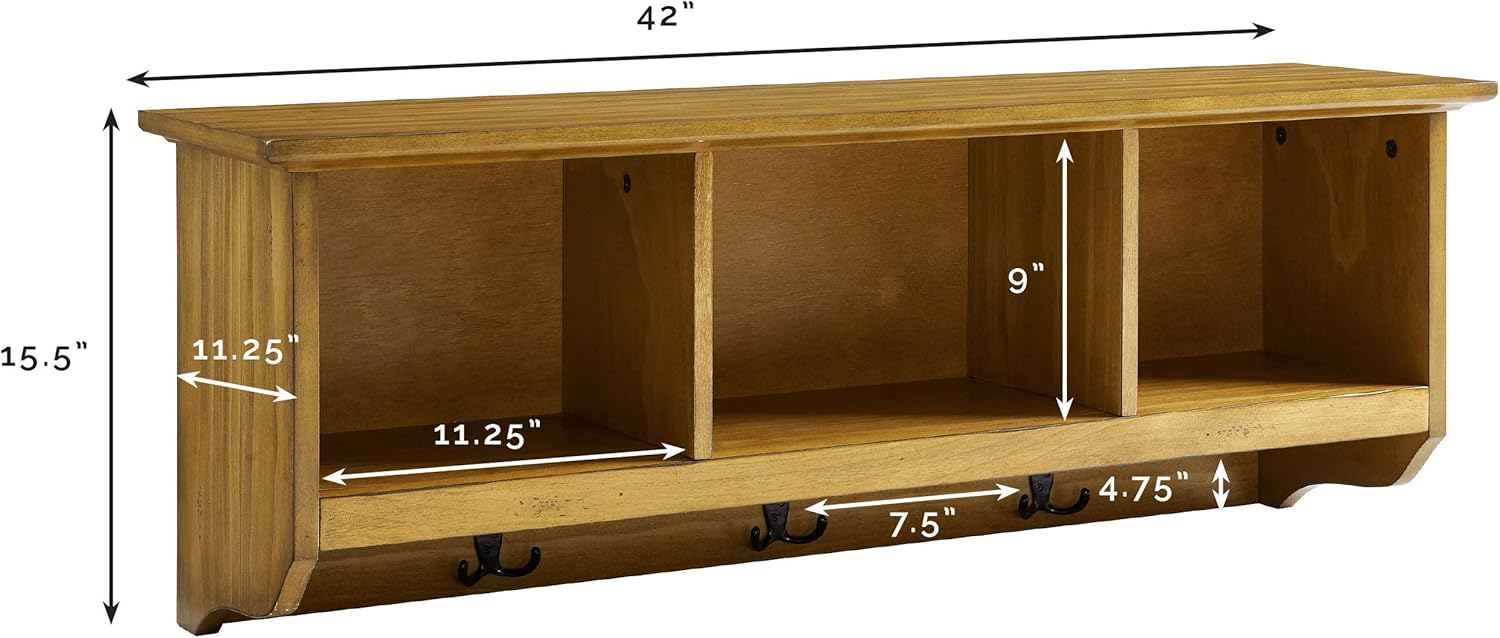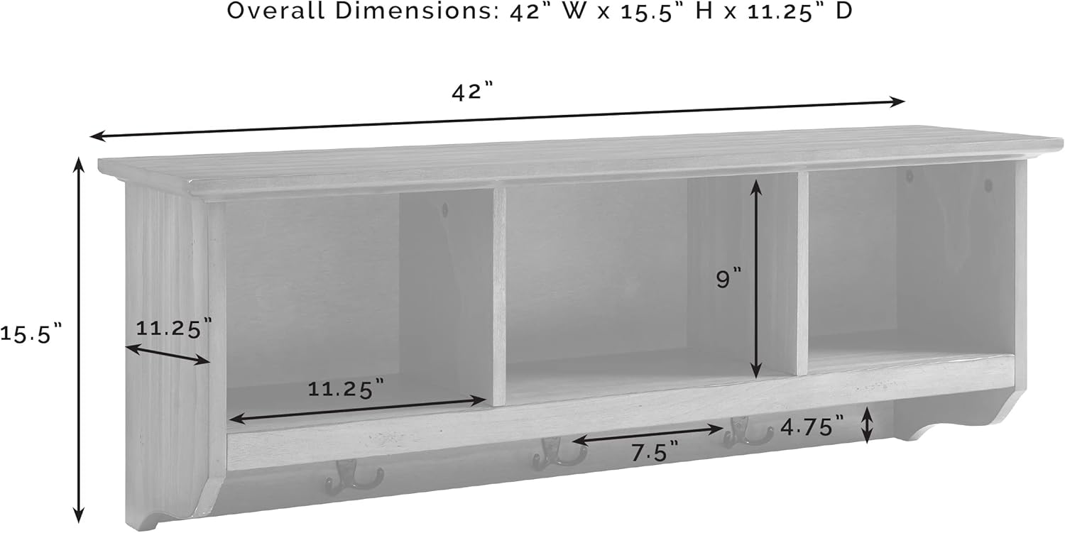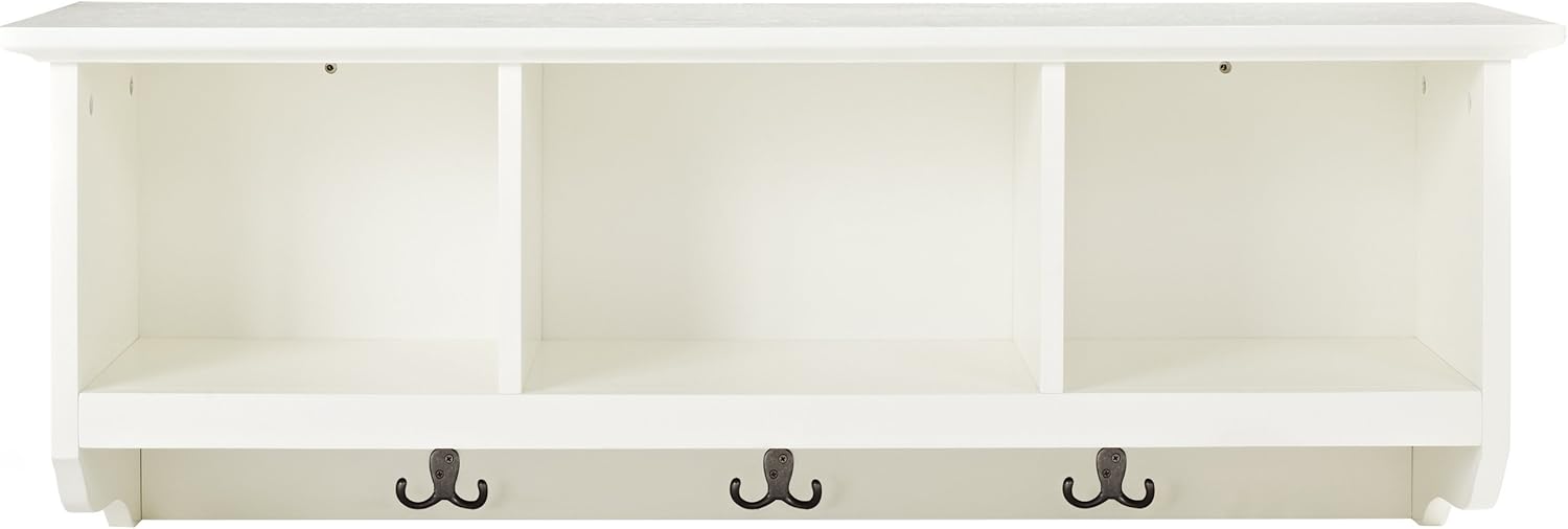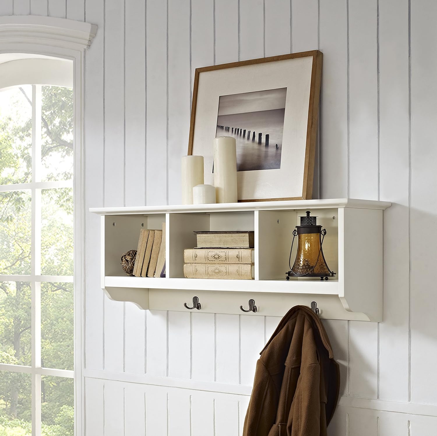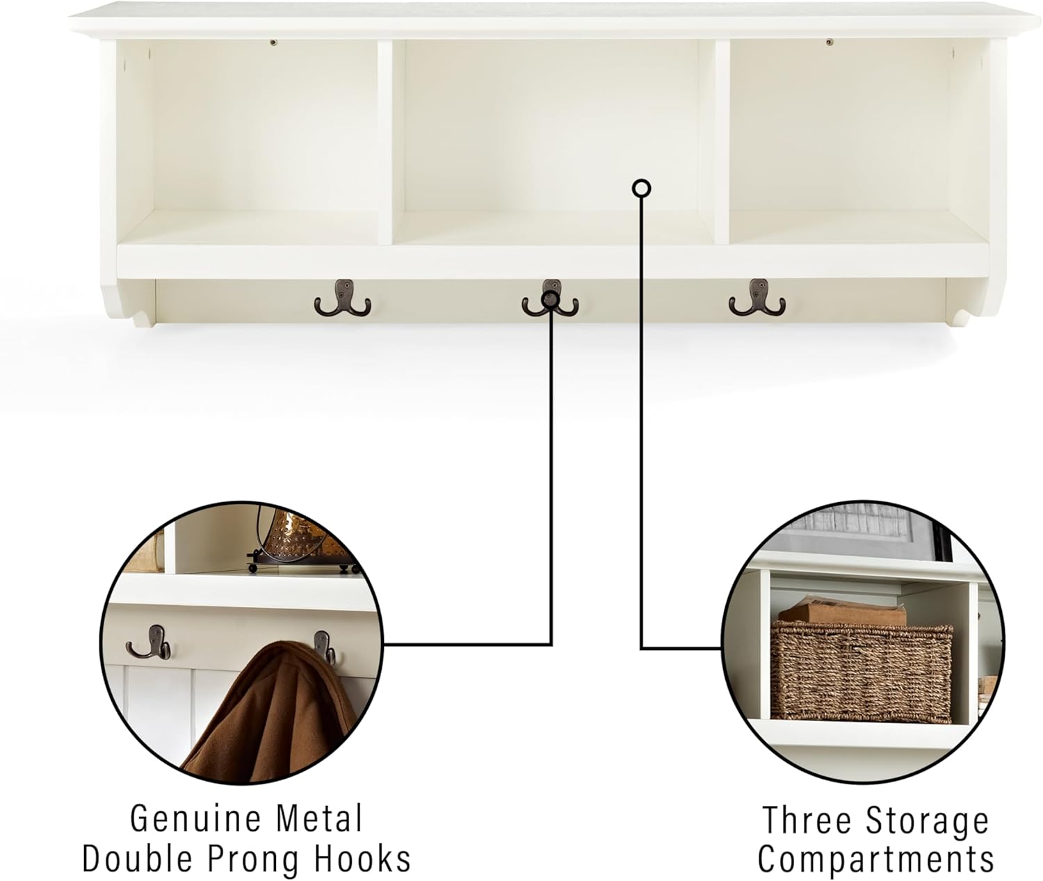 Crosley Furniture Brennan Entryway Storage Wall Shelf, with Coat Rack Hooks for Hanging, White