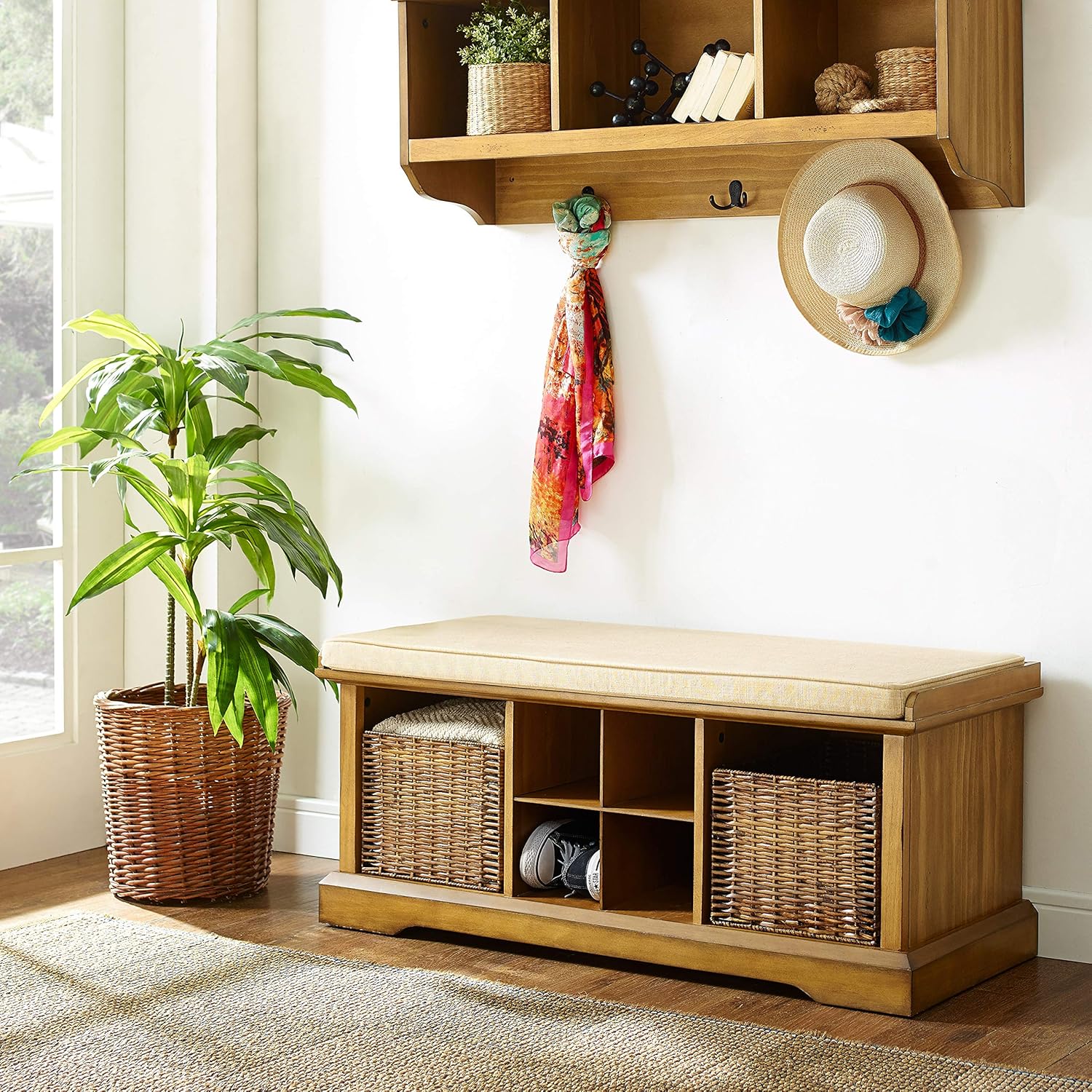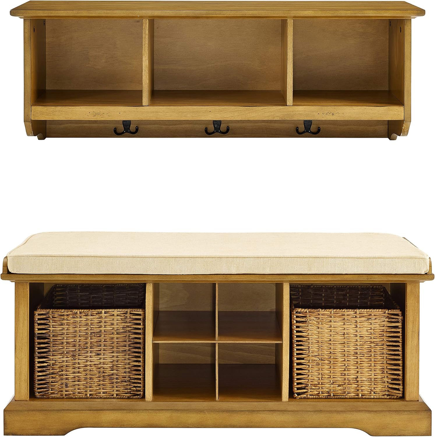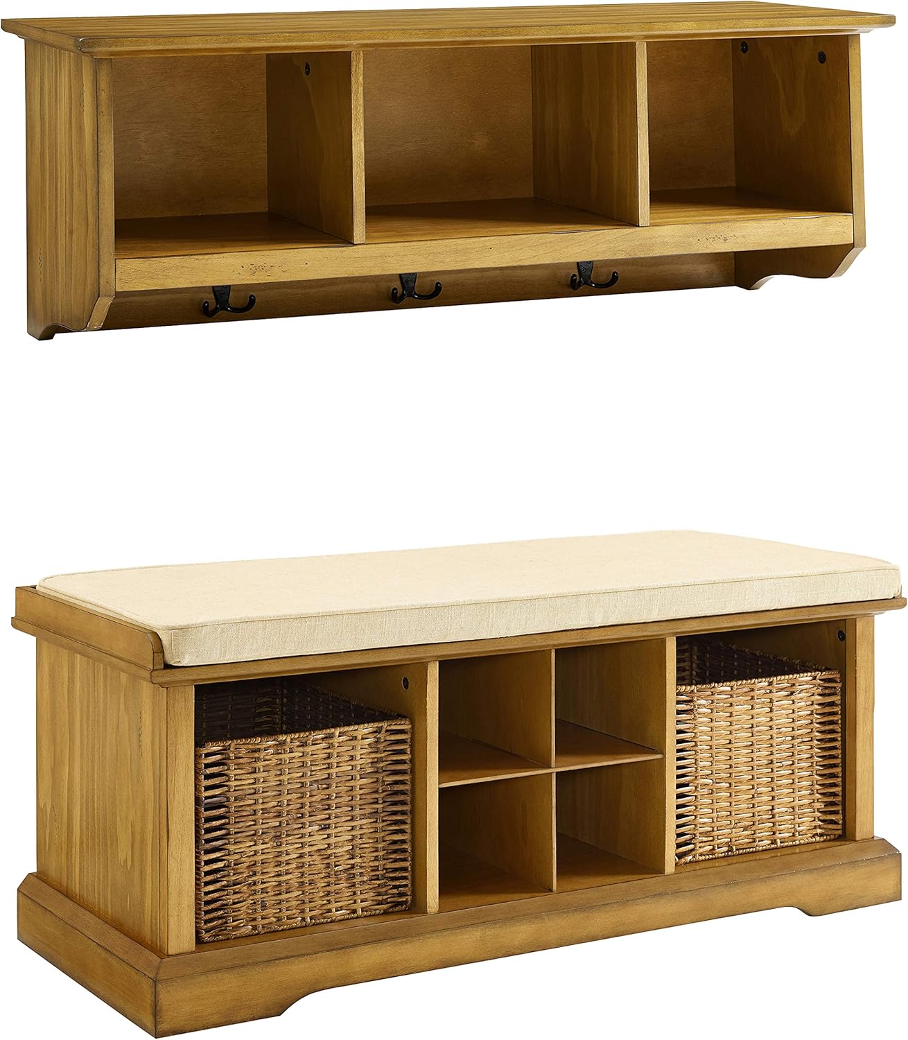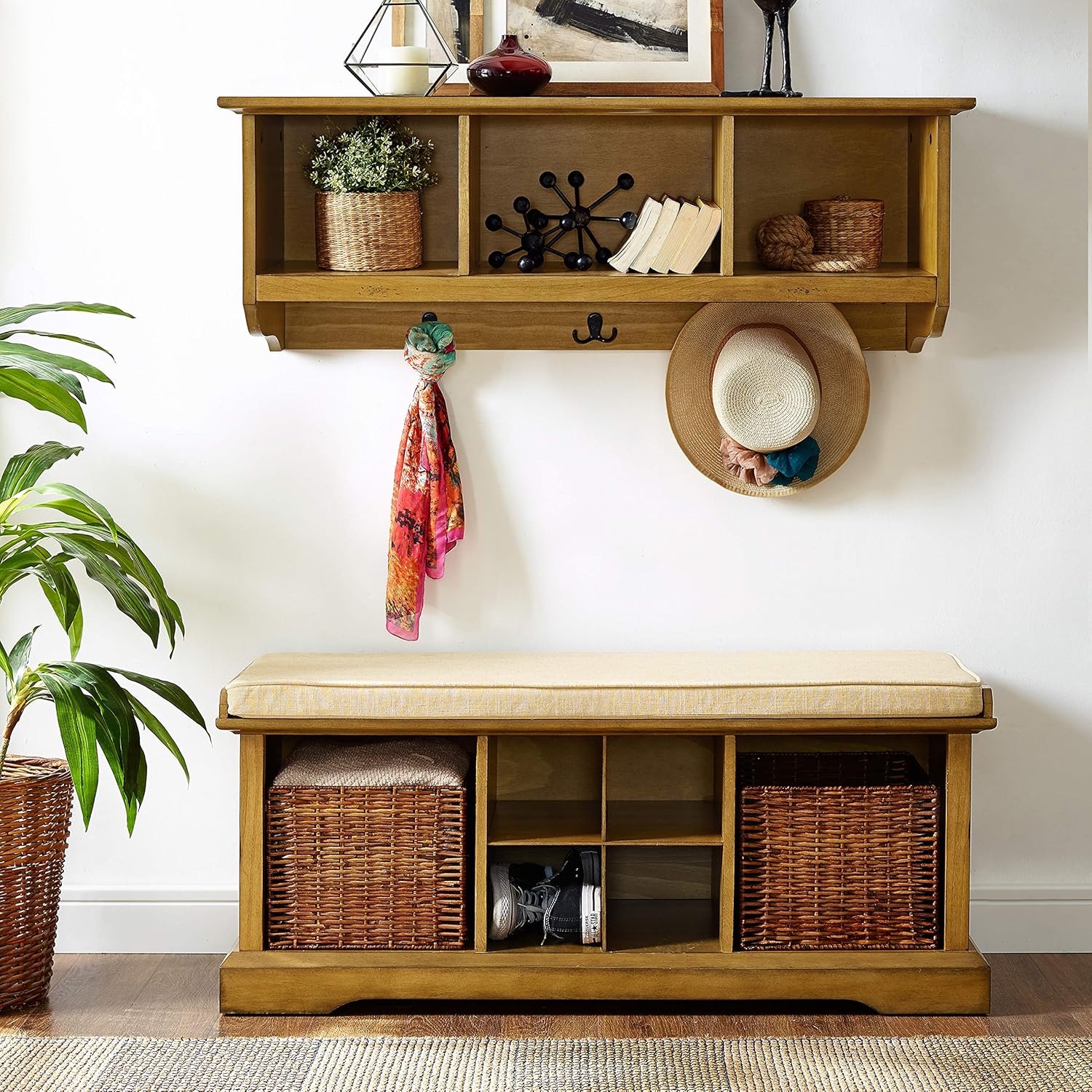 Crosley Furniture Brennan Entryway Storage Wall Shelf, with Coat Rack Hooks for Hanging, White