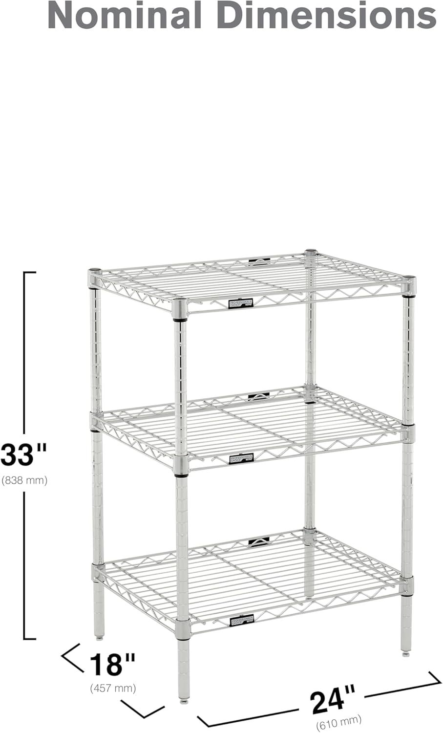 METRO Professional's Choice Commercial-Grade NSF Shelving Unit - Multipurpose Adjustable Wire Shelf for Home, Garage, Kitchen and More - 3 Shelves, 18" W x 24" L x 33" H - Chrome