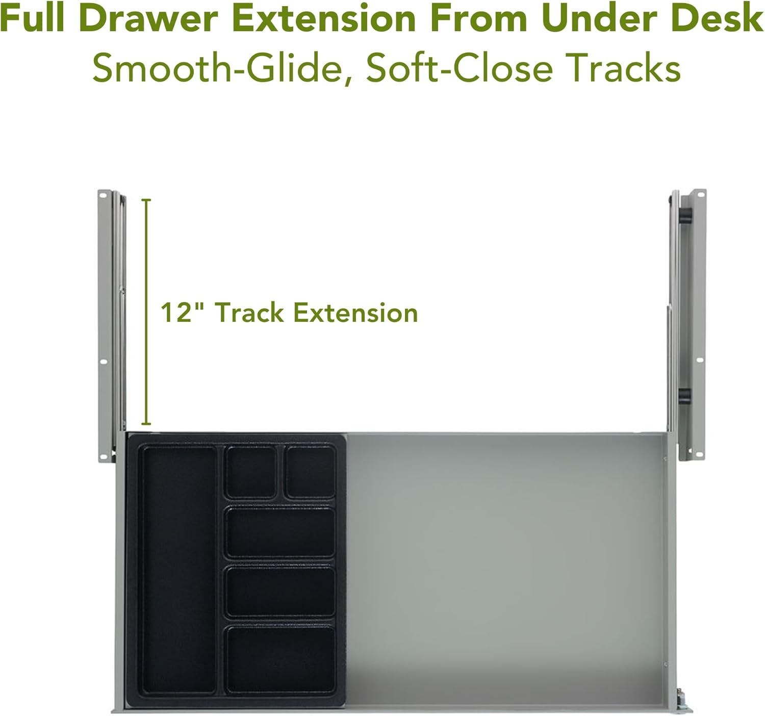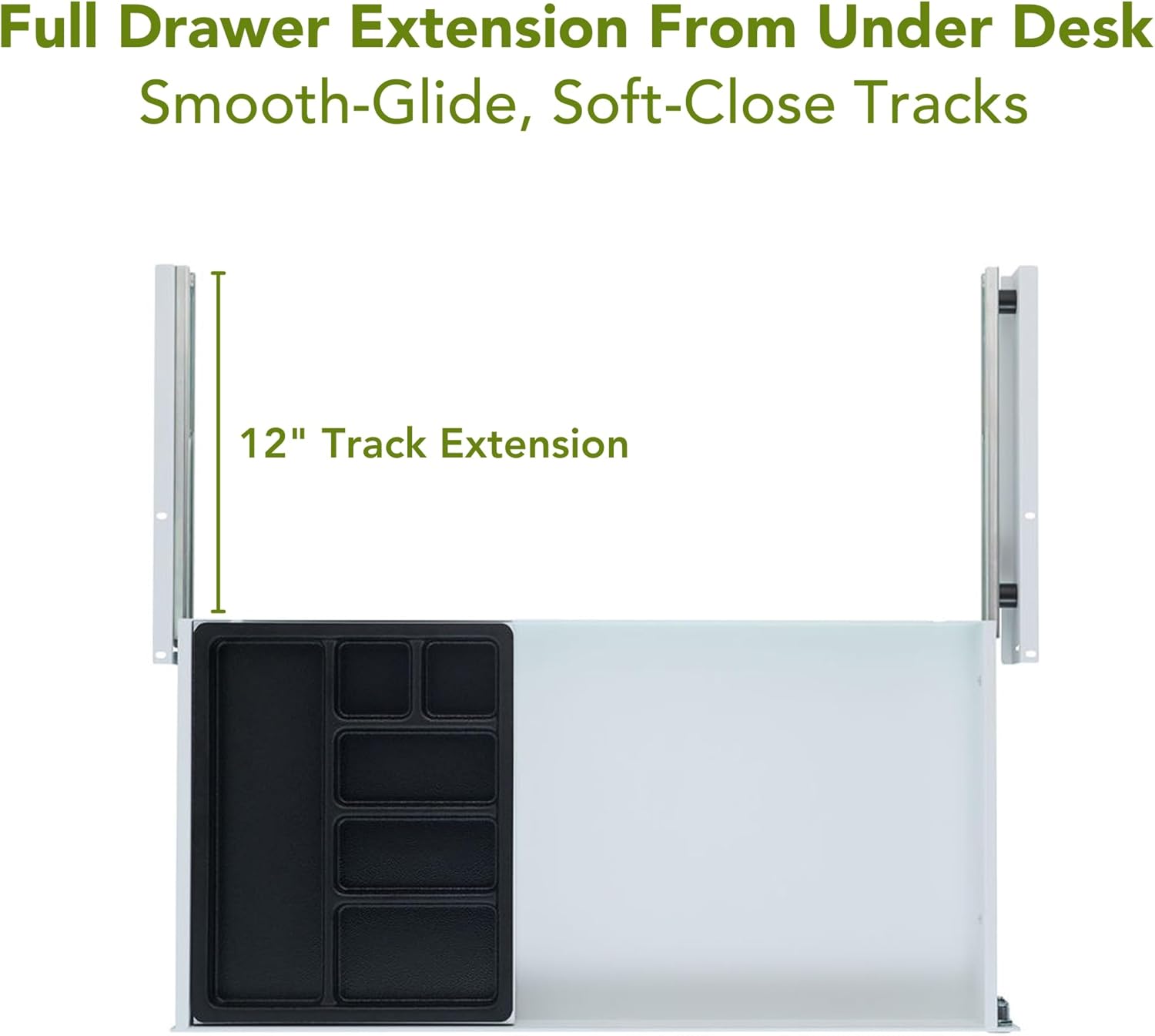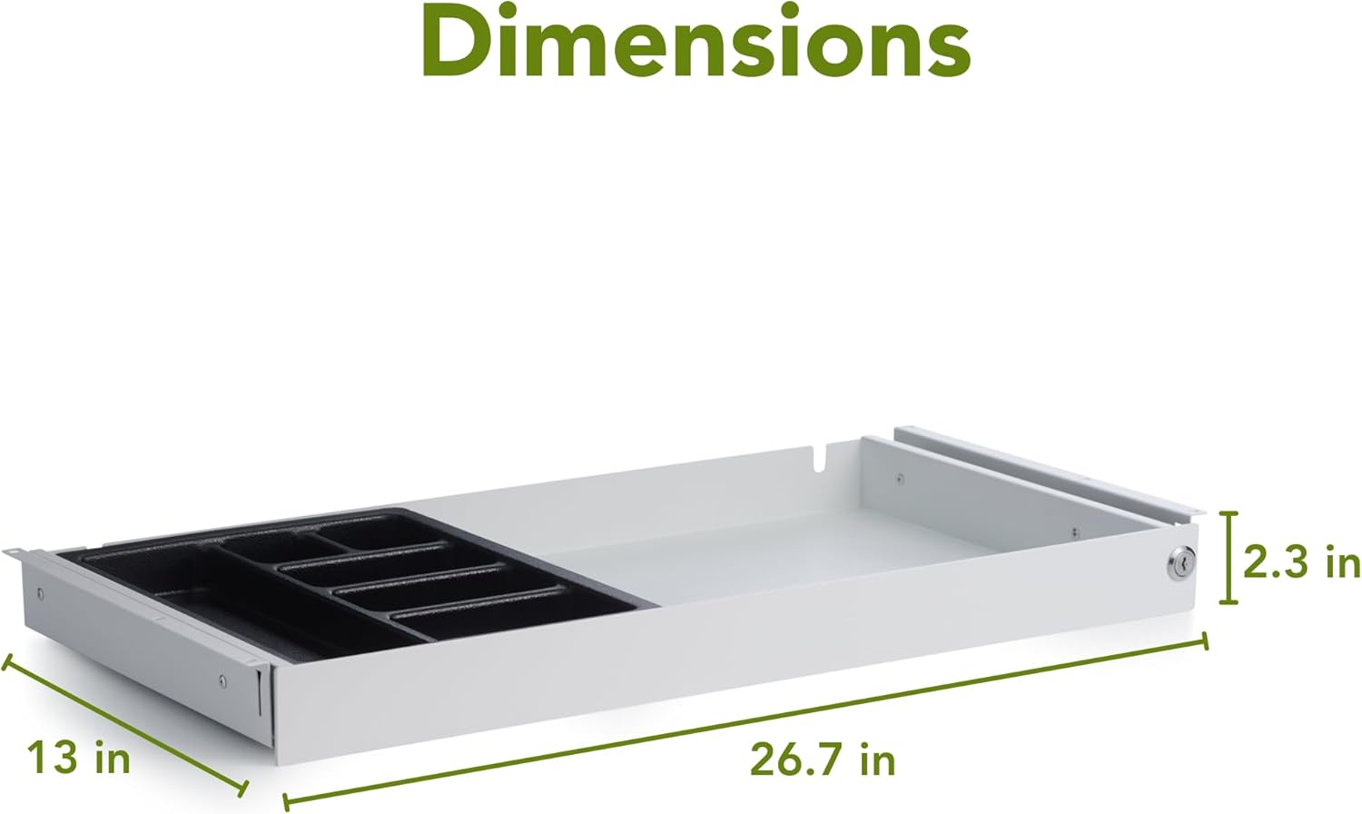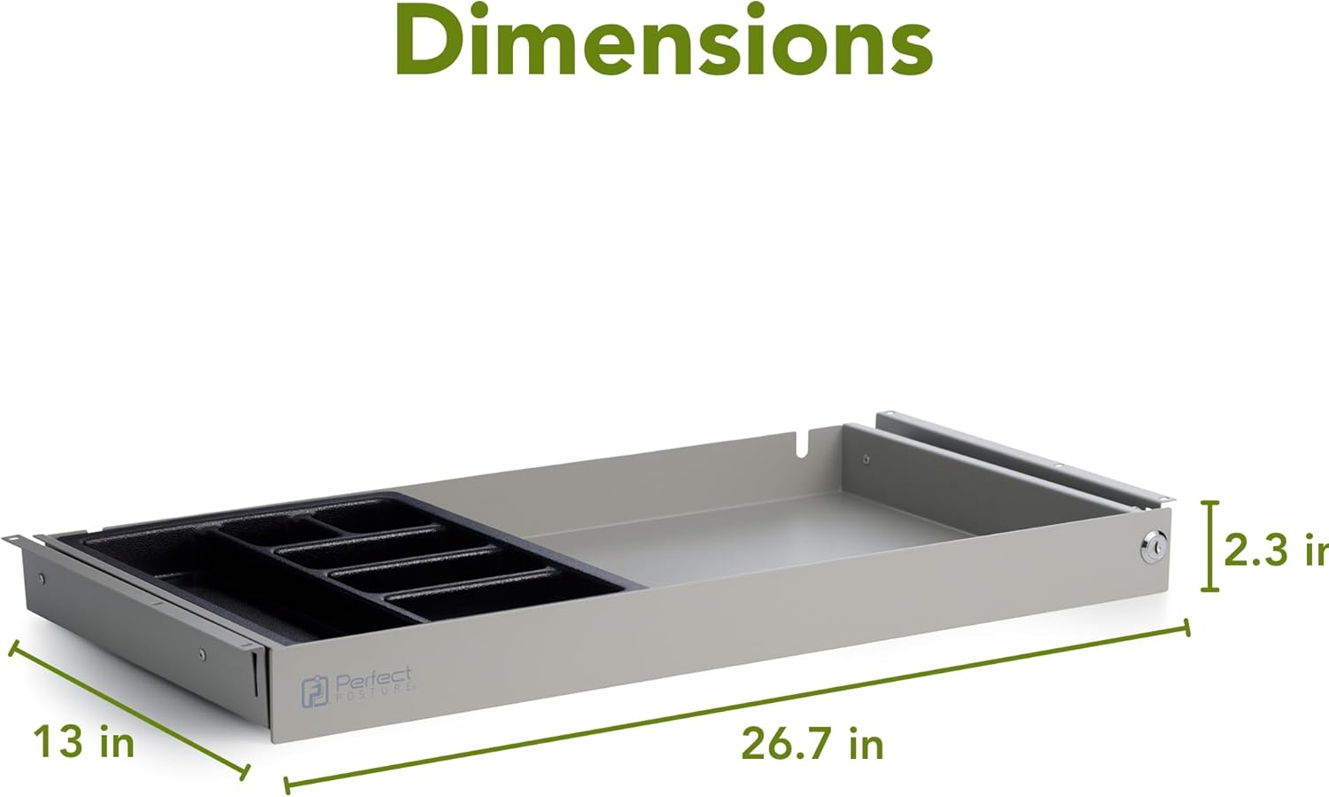 Perfect Posture Max Under Desk Storage Drawer – Large Desk Drawer with Lock for Regular & Sit-Stand Standing Desks, White (25” x 13”)