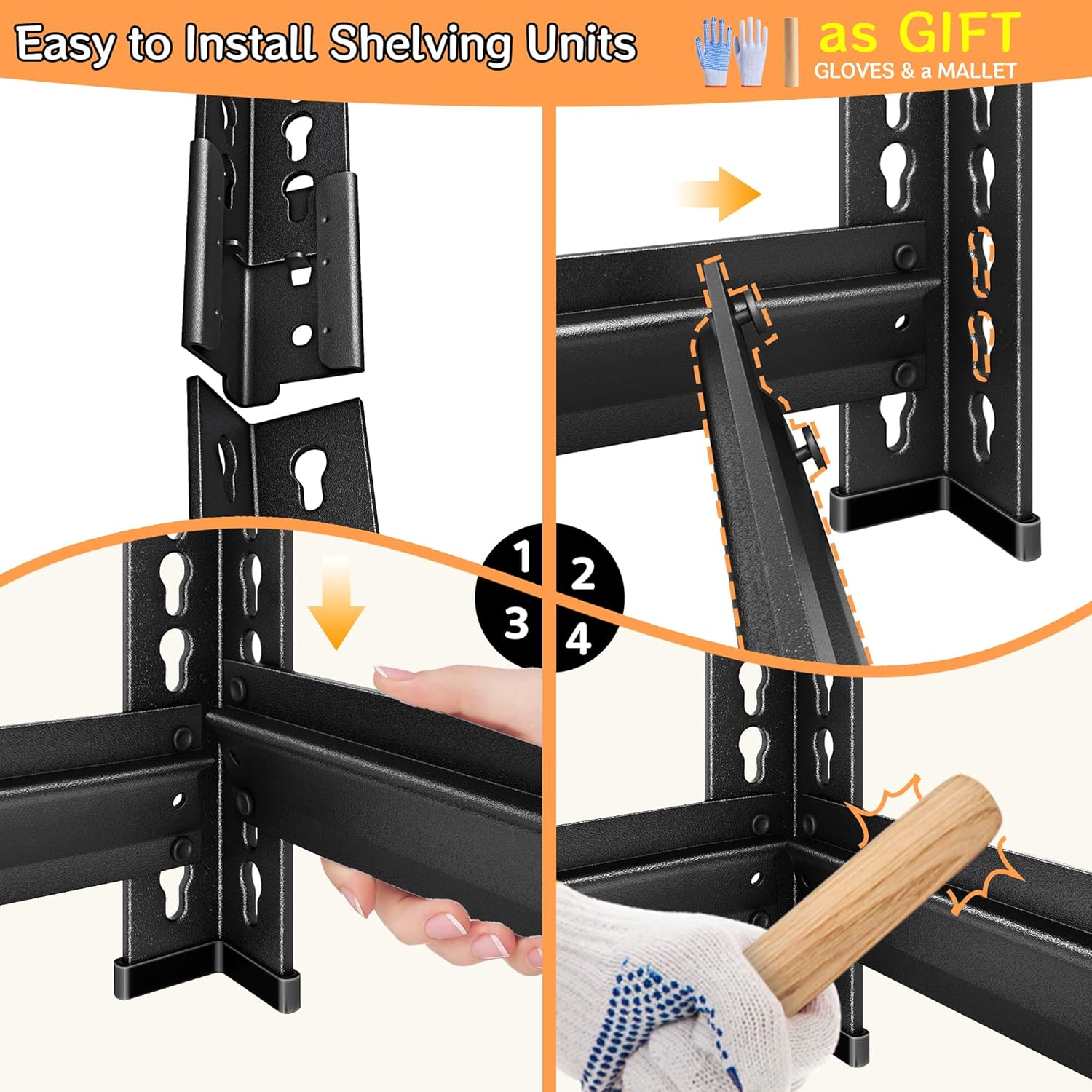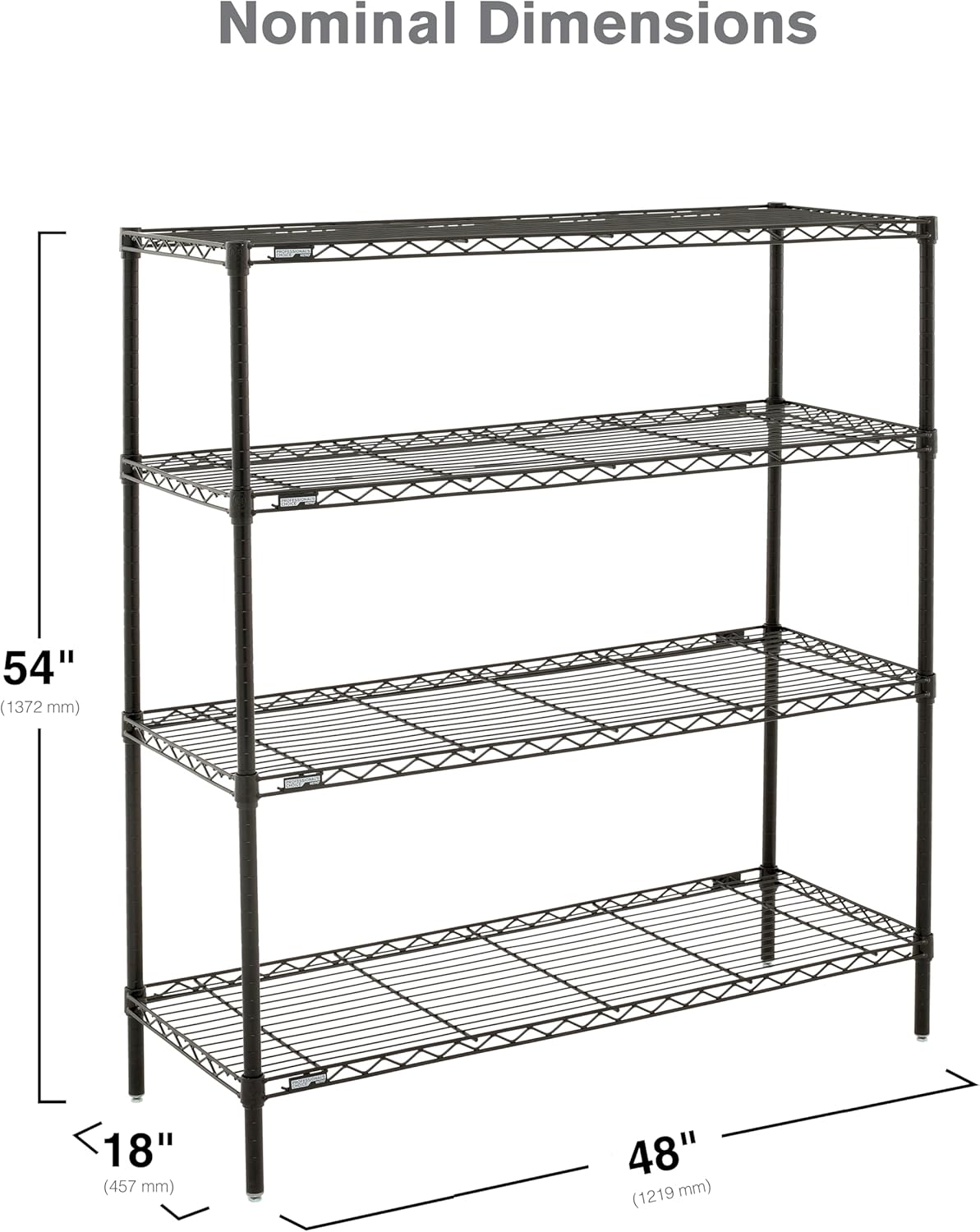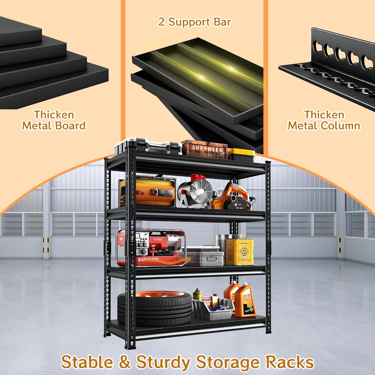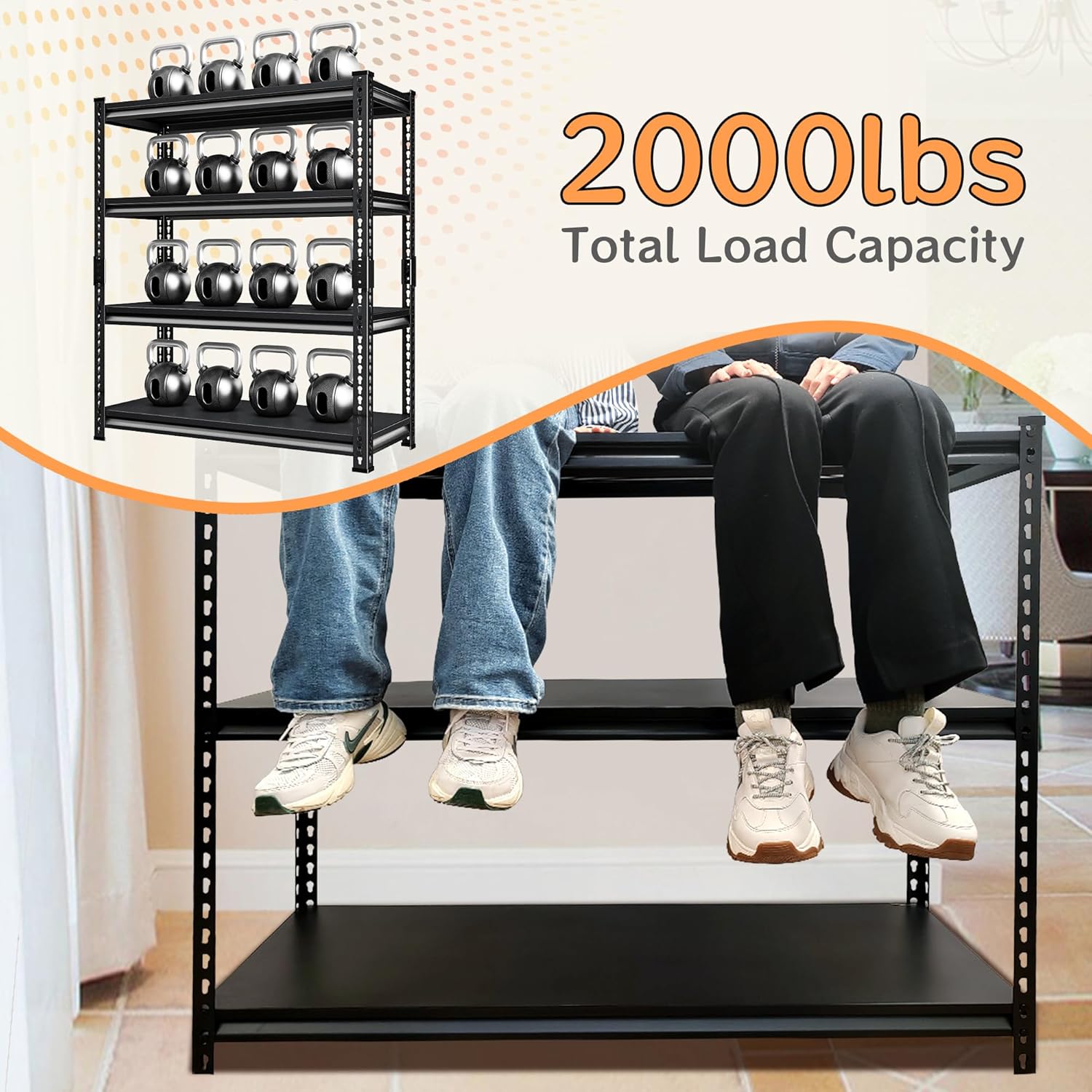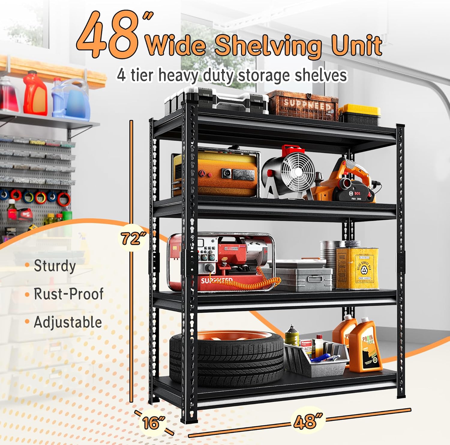 Adjustable Shelving Units and Storage, 48”W Garage Shelving Heavy Duty,2000LBS Loads 4-Tier Garage Storage Shelves, Metal Shelves for Living Room,Pantry,48”W×16”D×72”W,Black