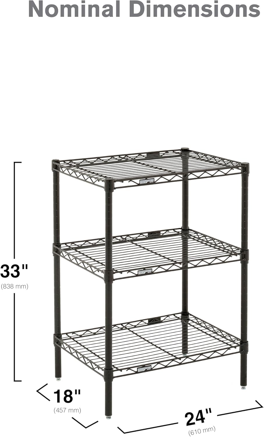 METRO Professional's Choice Commercial-Grade NSF Shelving Unit - Multipurpose Adjustable Wire Shelf for Home, Garage, Kitchen and More - 3 Shelves, 18" W x 24" L x 33" H - Black