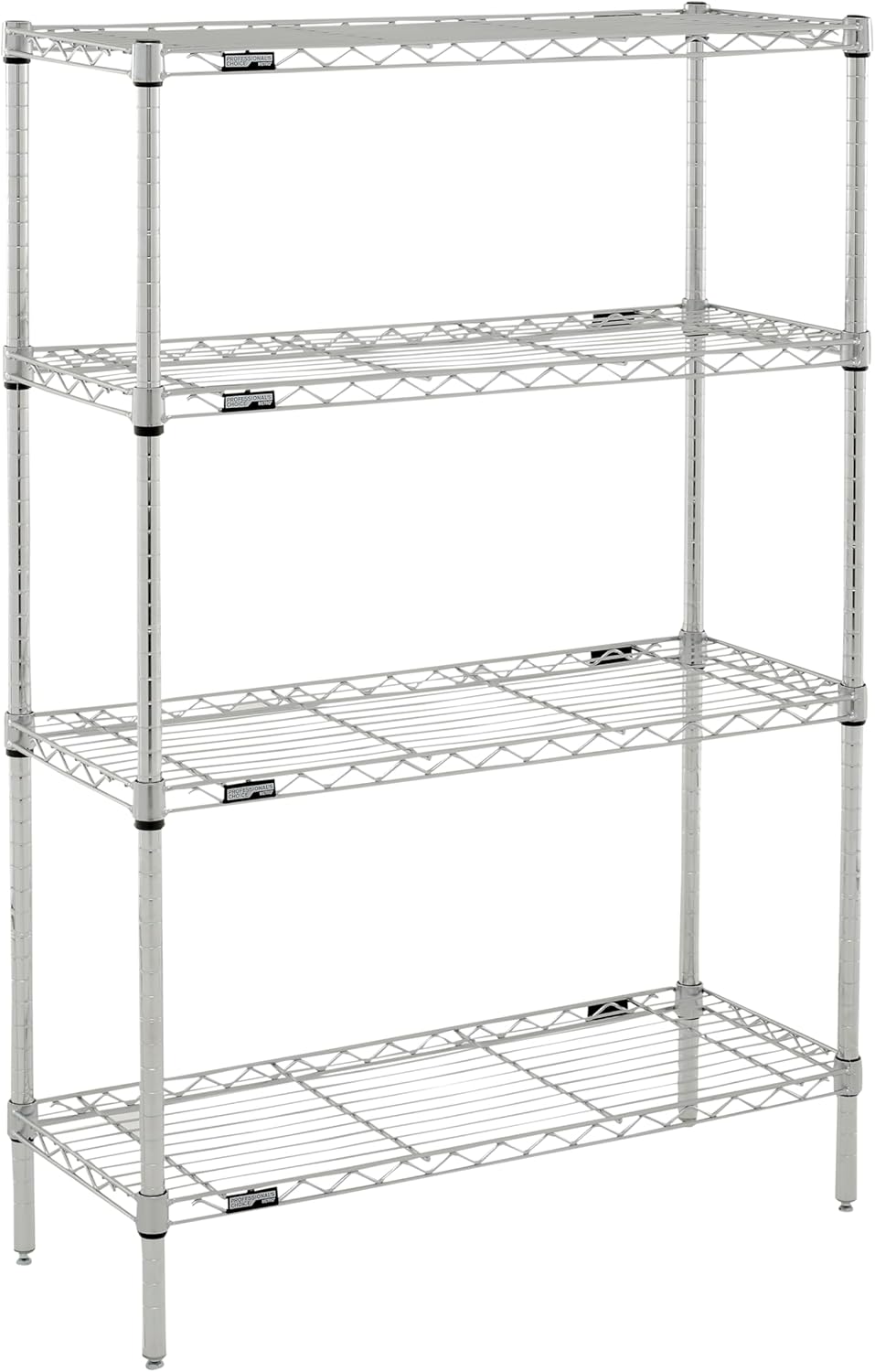 Nexel 18" x 24" x 54", 4 Tier, Poly-Z-Brite Adjustable Wire Shelving Unit, NEXGuard Anti-Microbial Agent, NSF Listed Commercial Storage Rack, Silver, Leveling feet