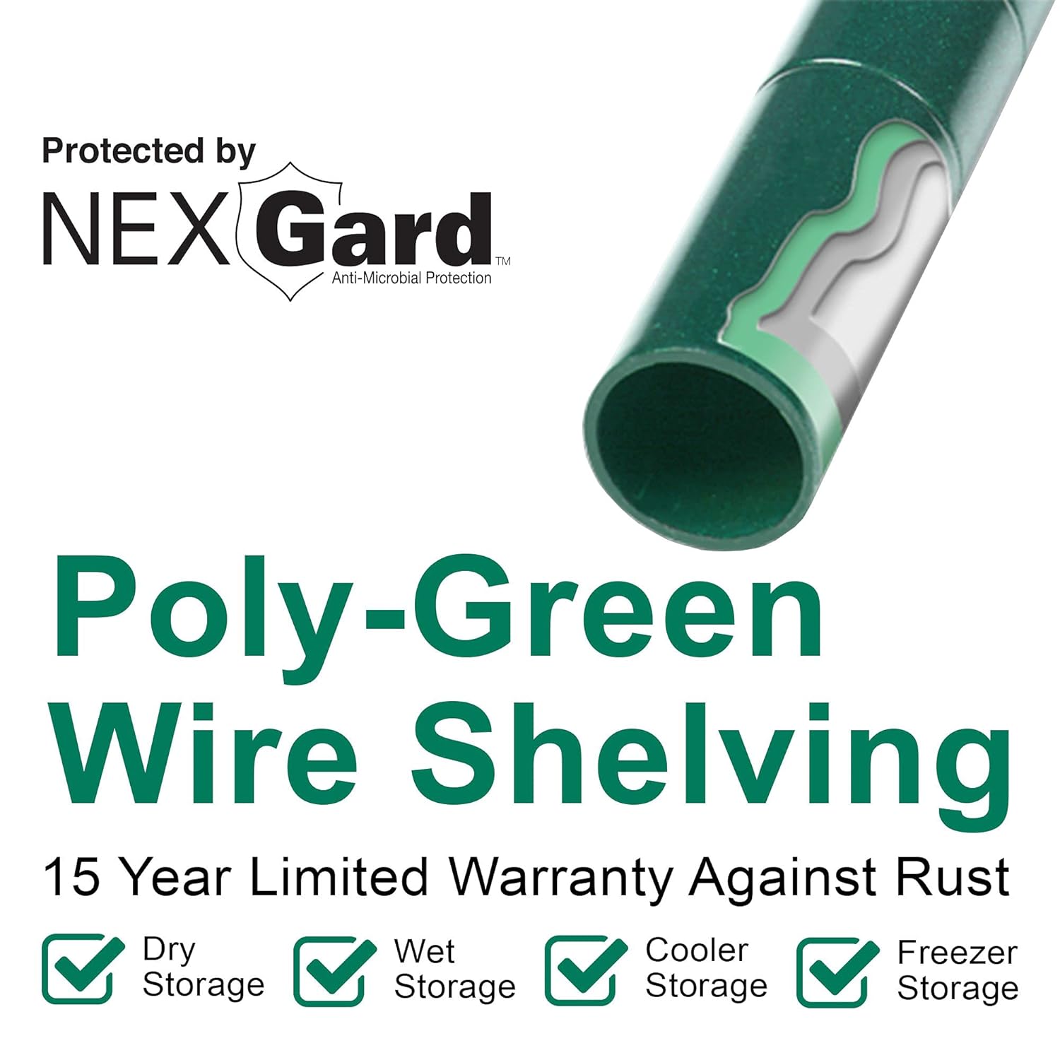 Nexel 24" x 36" x 54", 4 Tier Adjustable Wire Shelving Unit, NEXGuard Anti-Microbial Agent, NSF Listed Commercial Storage Rack, Poly-Green, Leveling feet