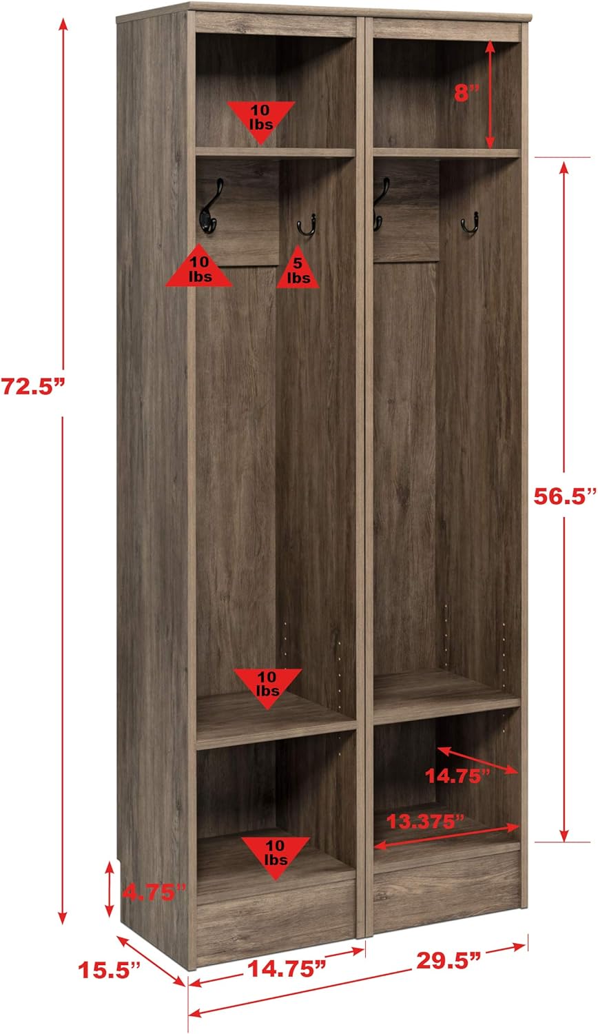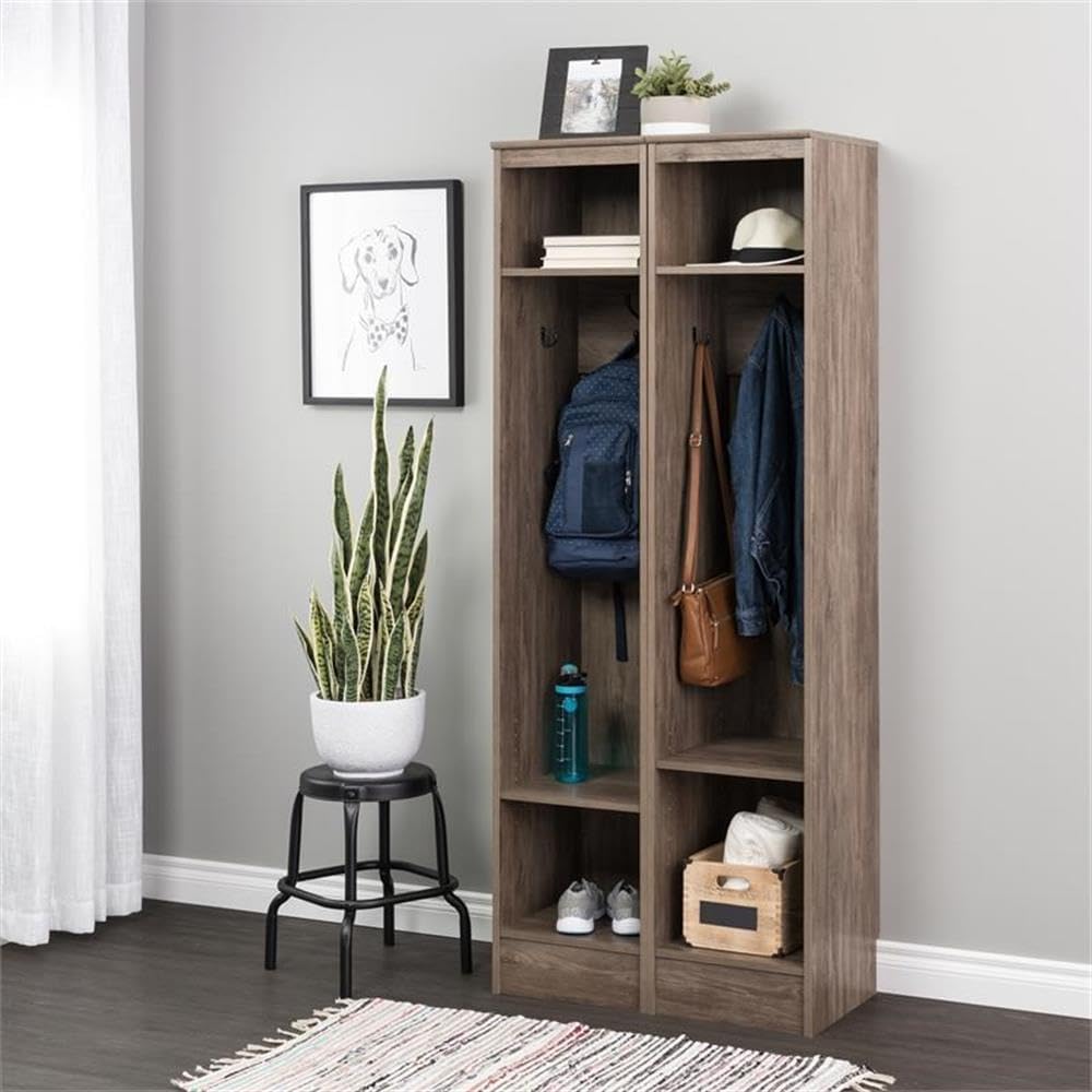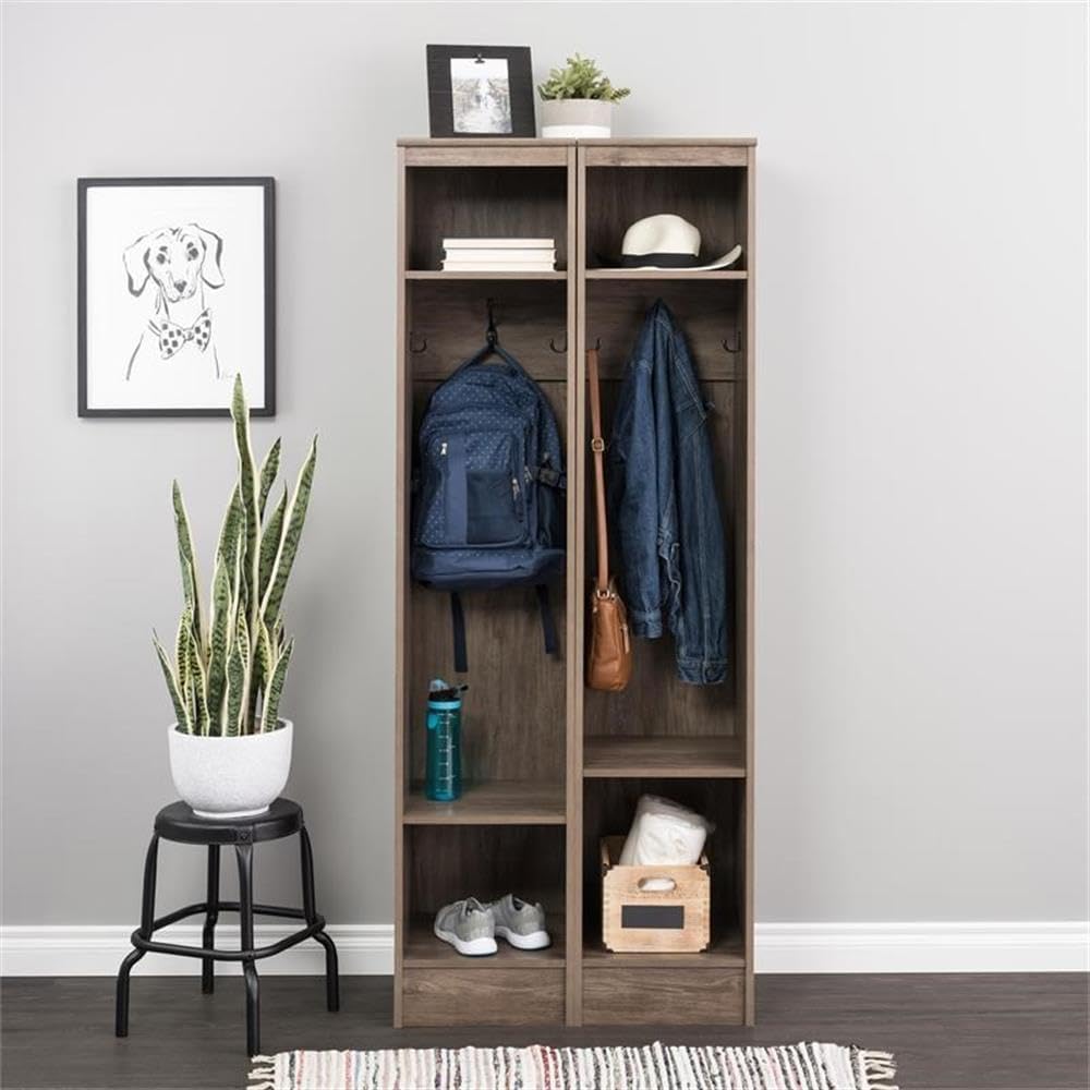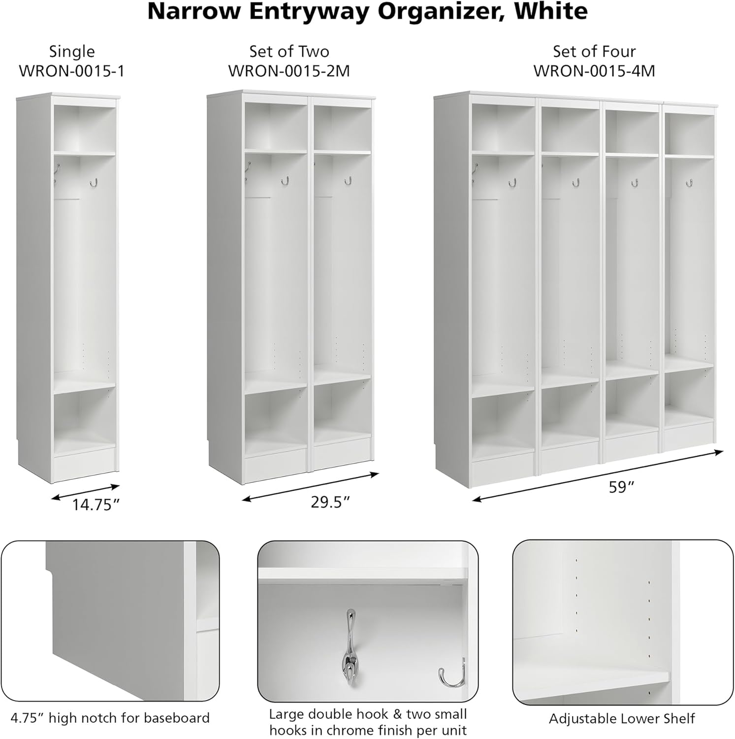 Prepac Narrow Coat Rack Freestanding Hall Tree with 3 Hooks, Entryway Furniture for Coat and Shoe Storage, Entryway Organization with an Adjustable Shelf, 14.75"W x 72.5"H x 15.5"D, White