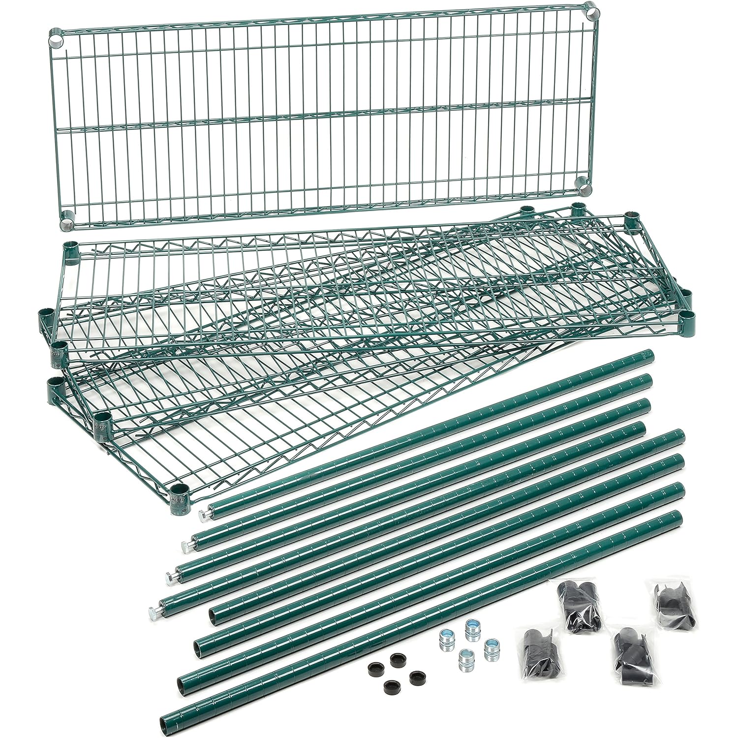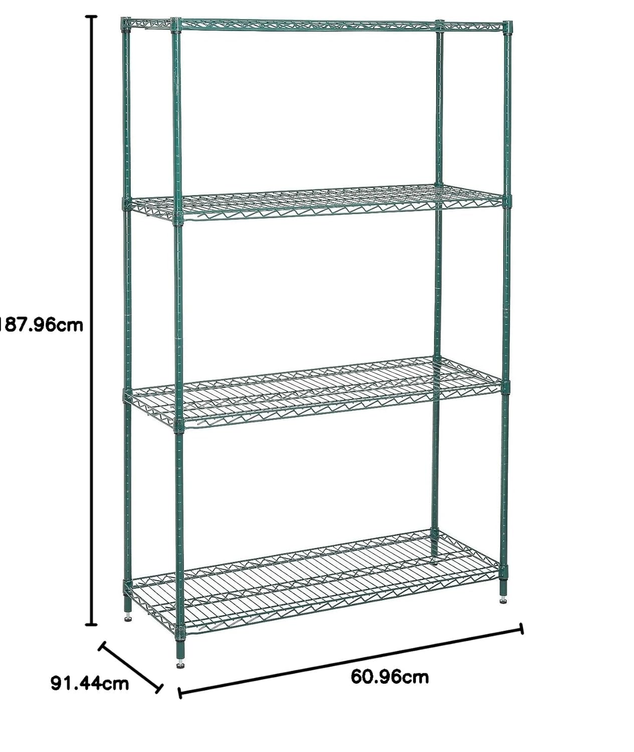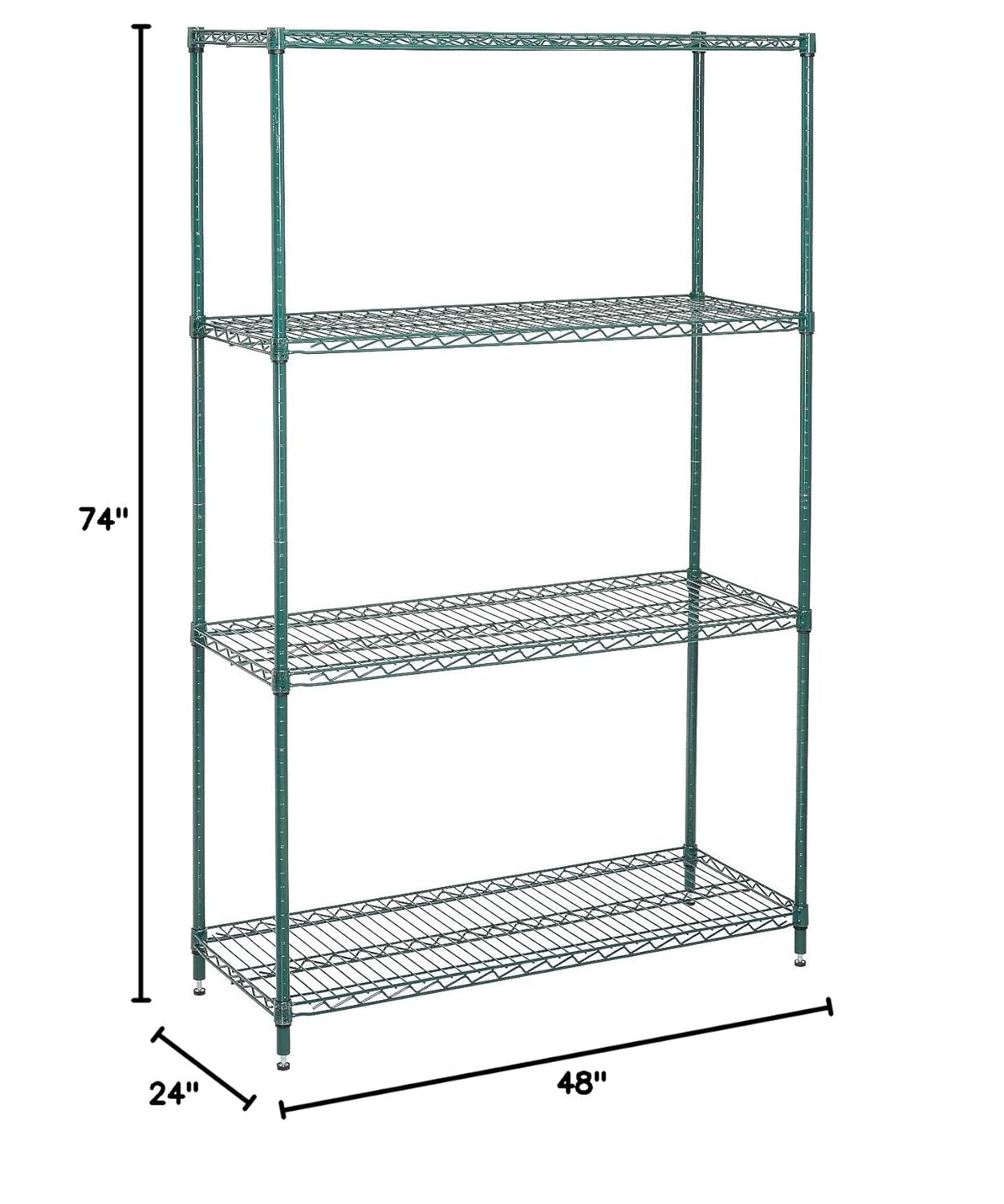 Nexel Economy Wire Shelving Starter Unit, 4 Tier, Green Epoxy, 24"W, x 48"L, x 74"H (VP24487G)