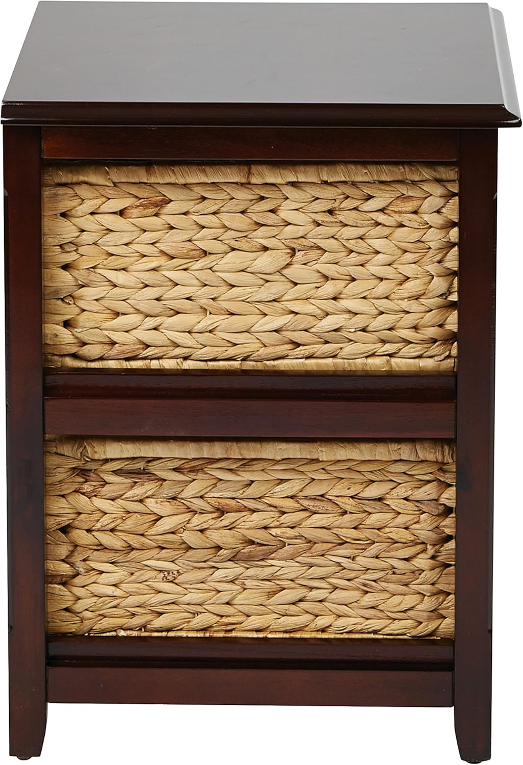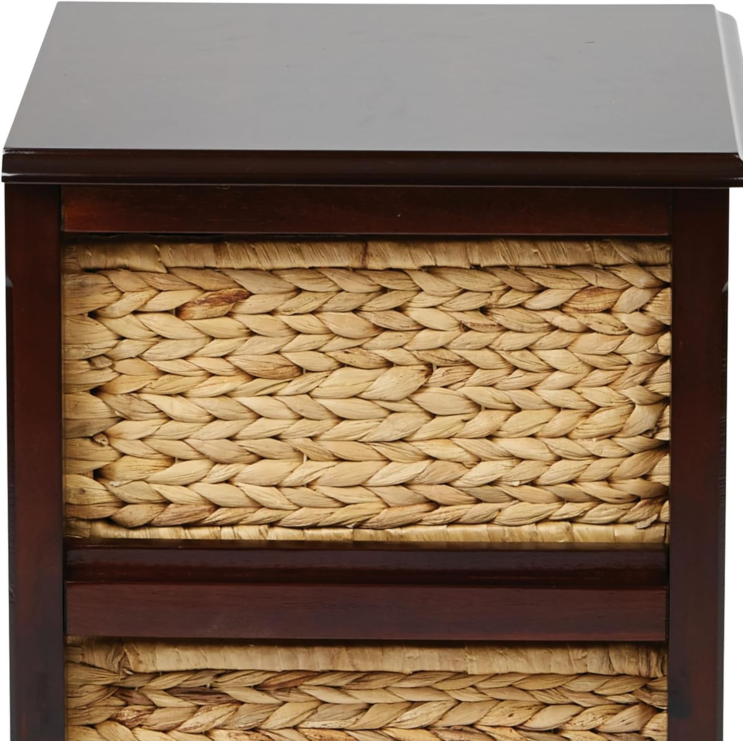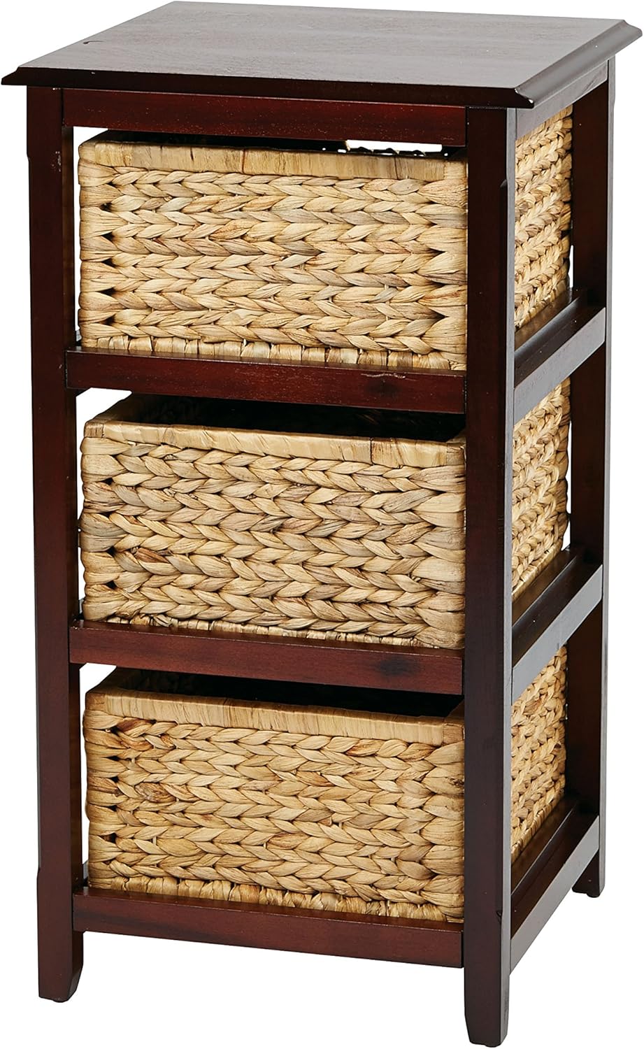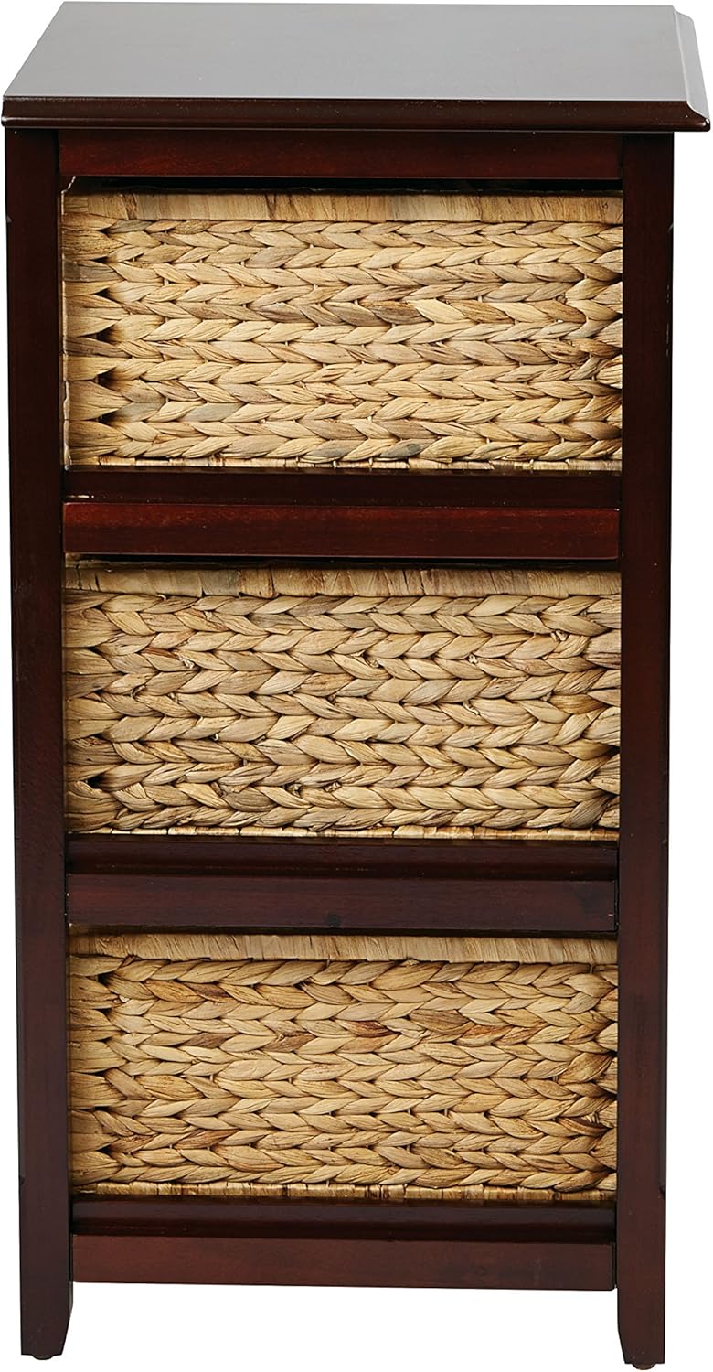 OSP Home Furnishings Seabrook Storage Tower with Solid Wood Frame and Natural Baskets, 3-Drawer, Espresso Finish