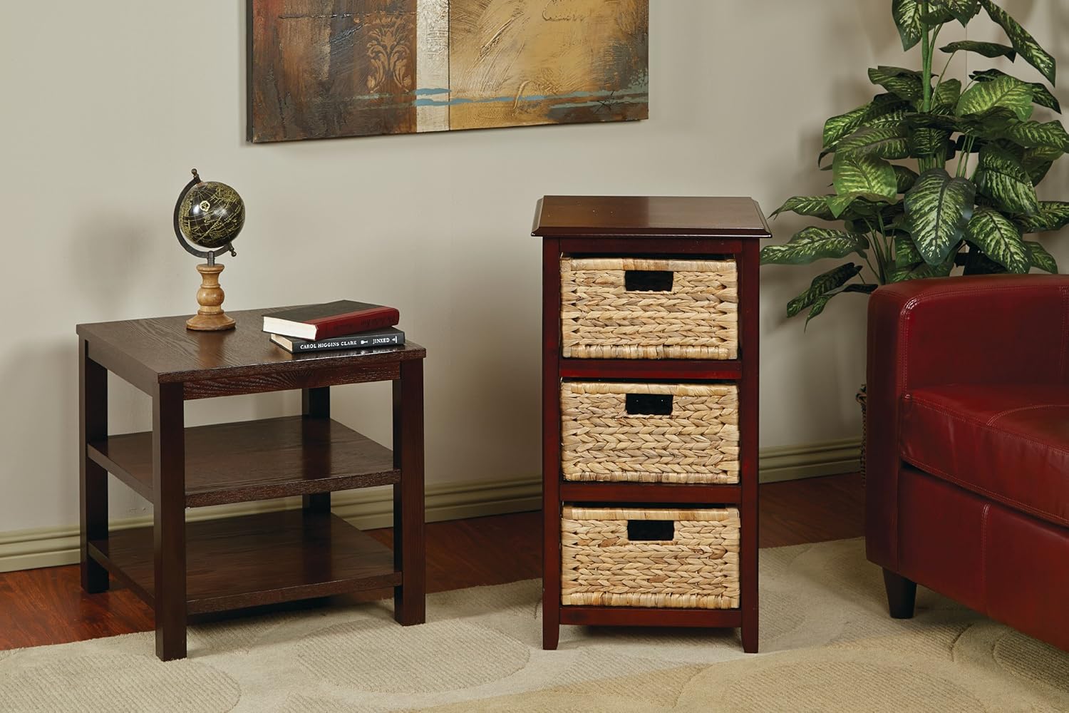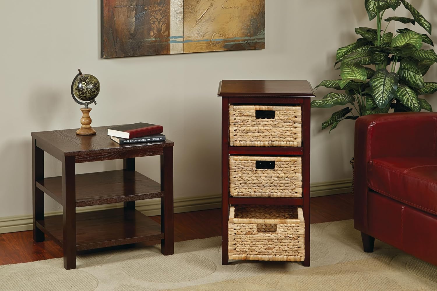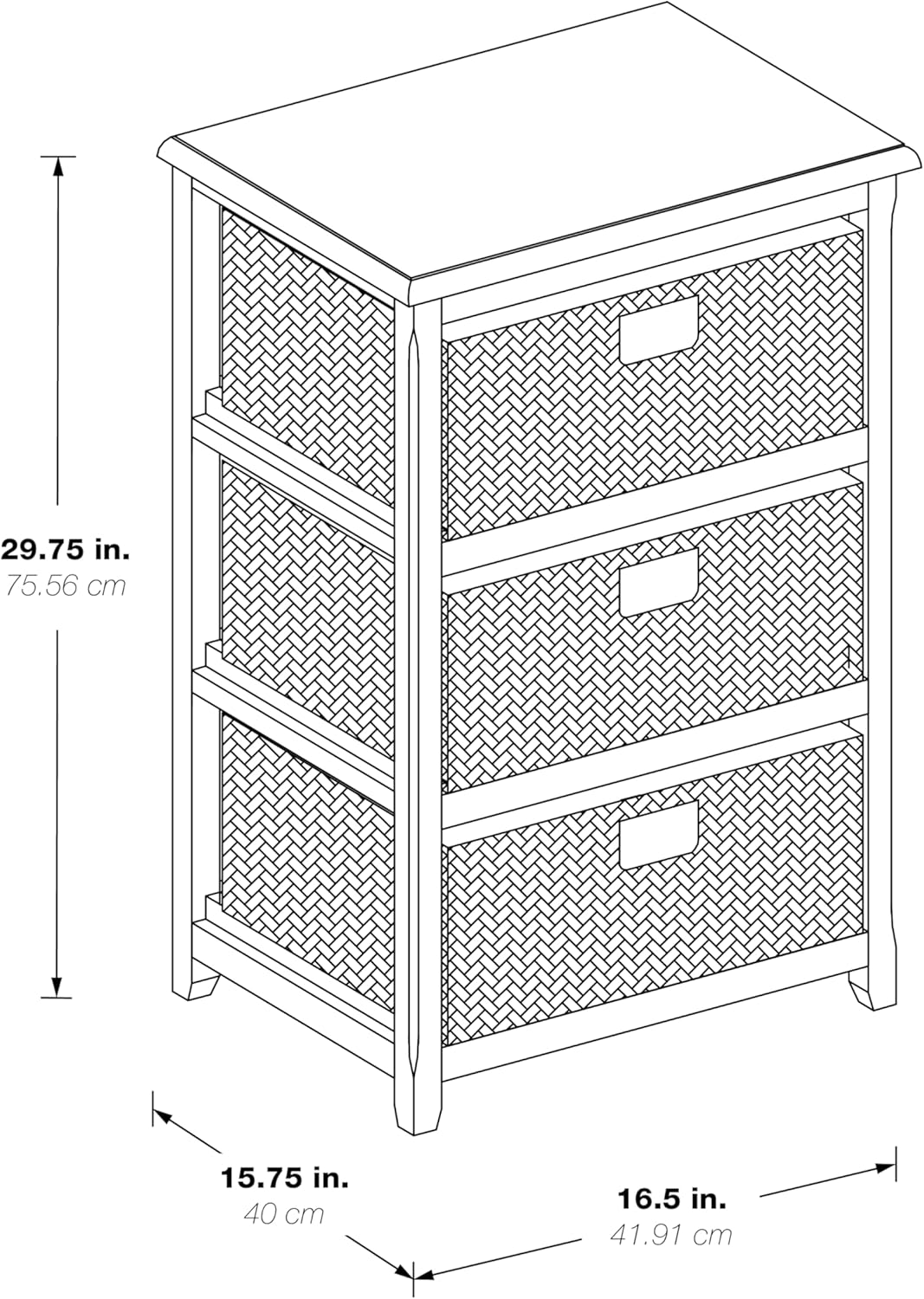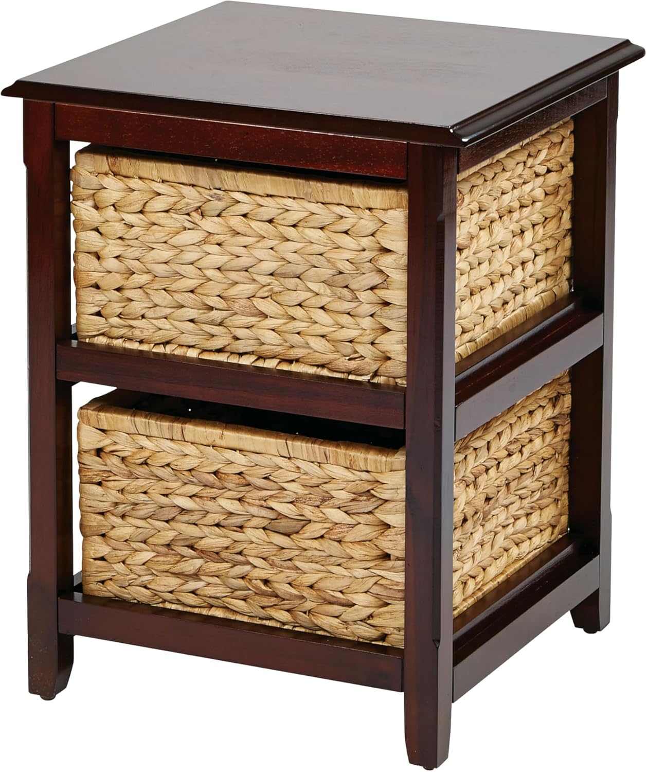 OSP Home Furnishings Seabrook Storage Tower with Solid Wood Frame and Natural Baskets, 3-Drawer, Espresso Finish
