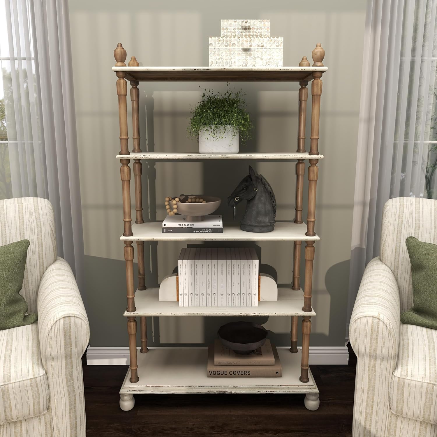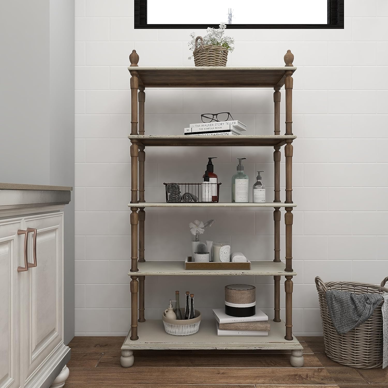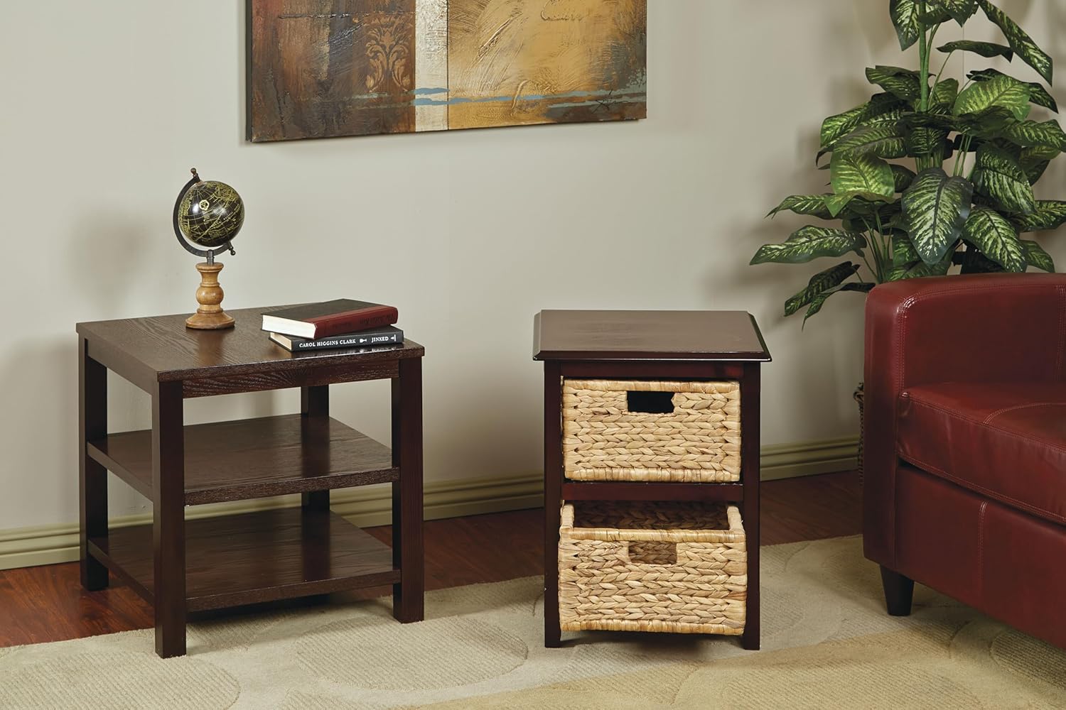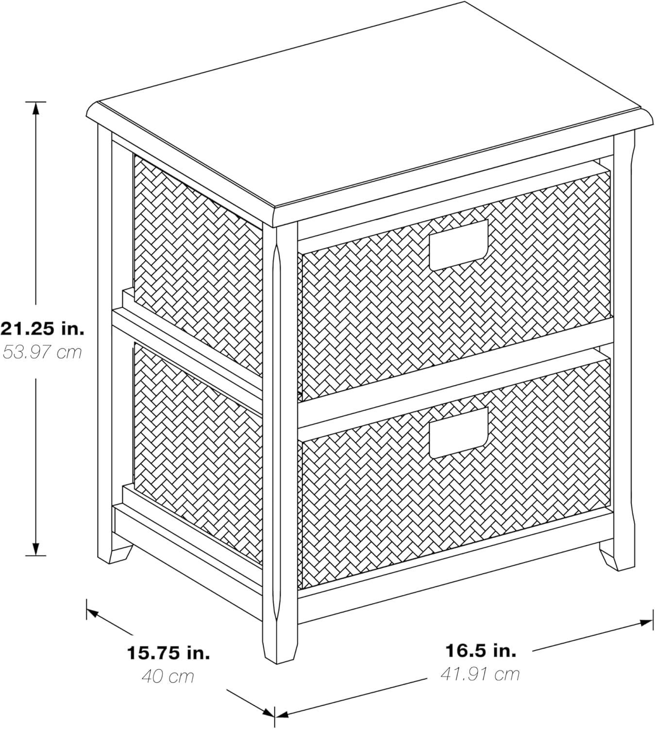 OSP Home Furnishings Seabrook Storage Tower with Solid Wood Frame and Natural Baskets, 3-Drawer, Espresso Finish