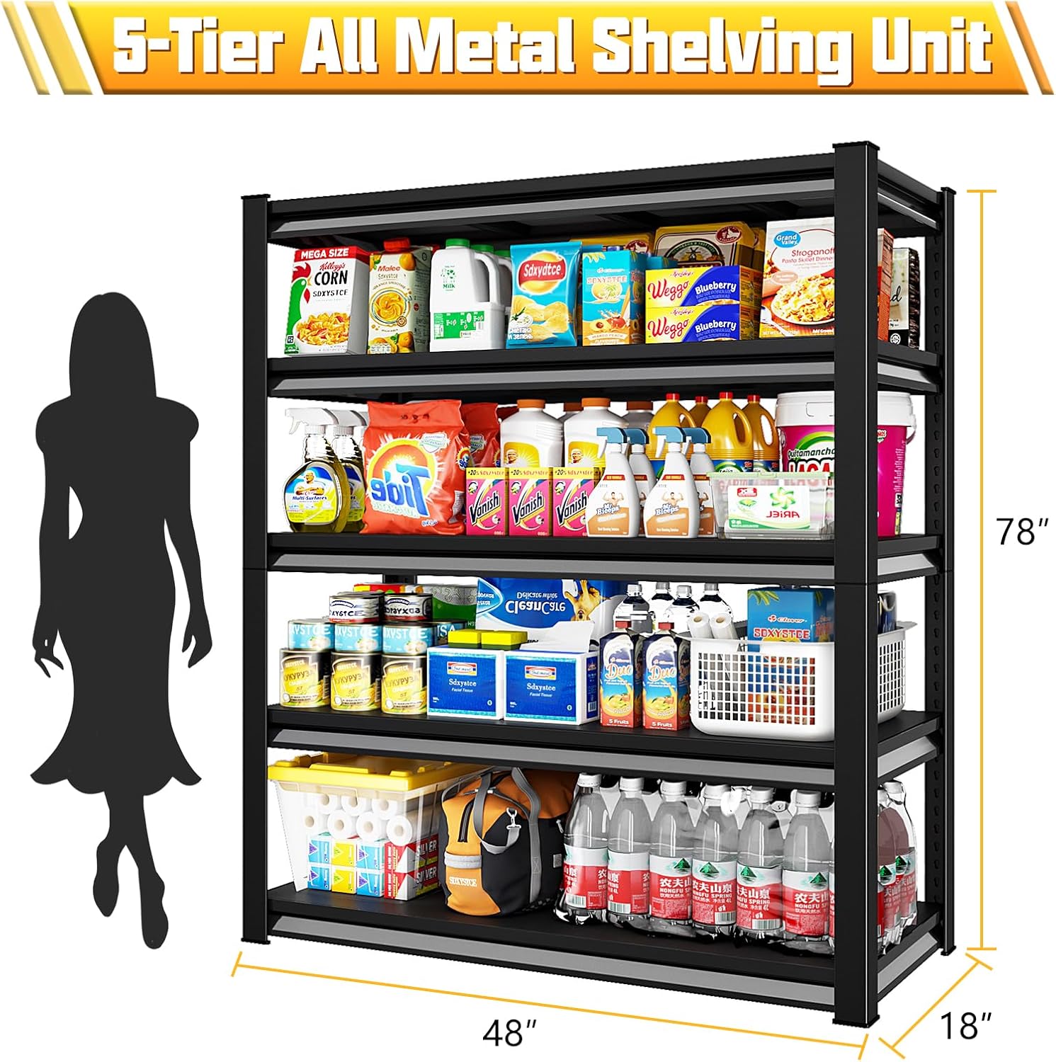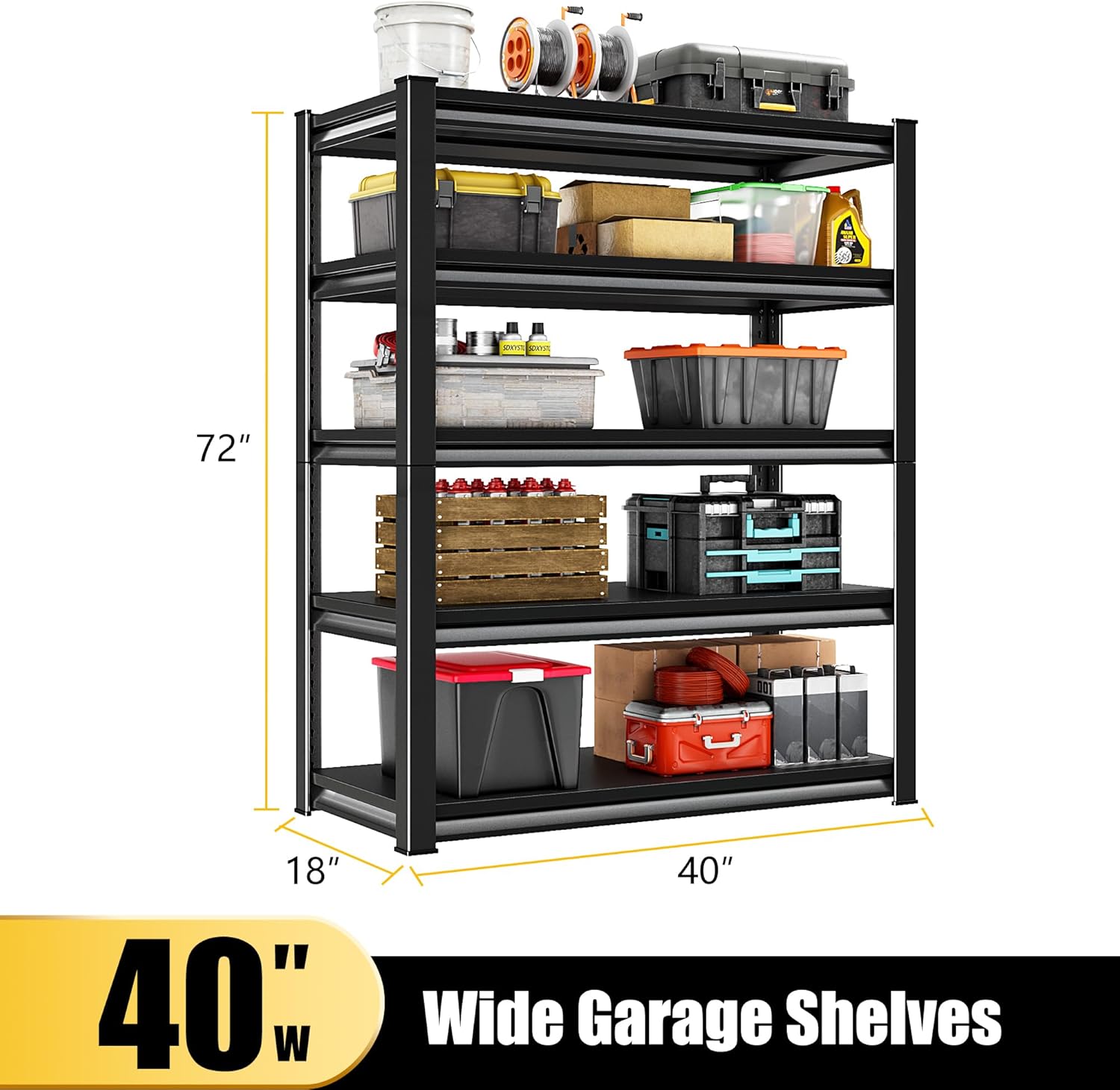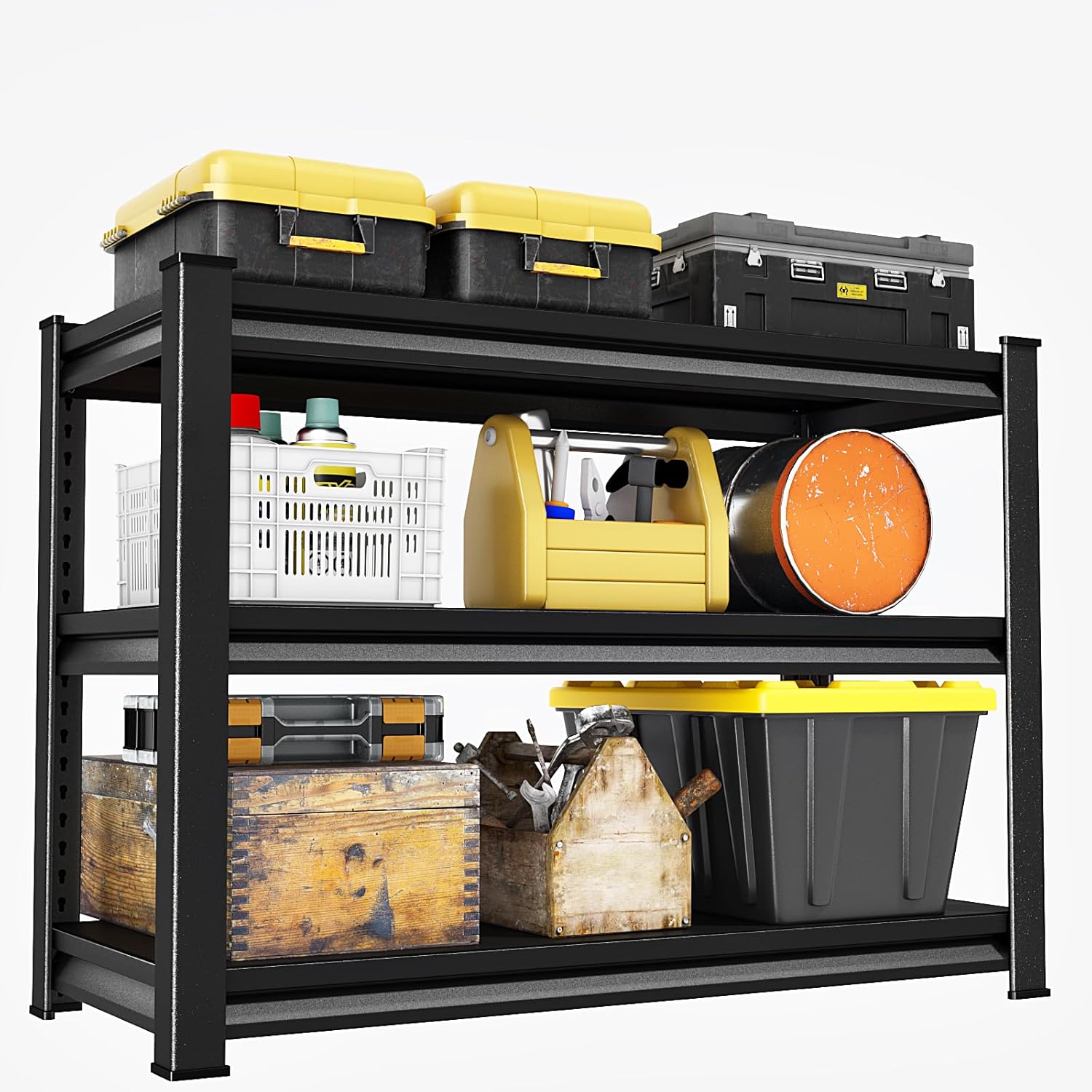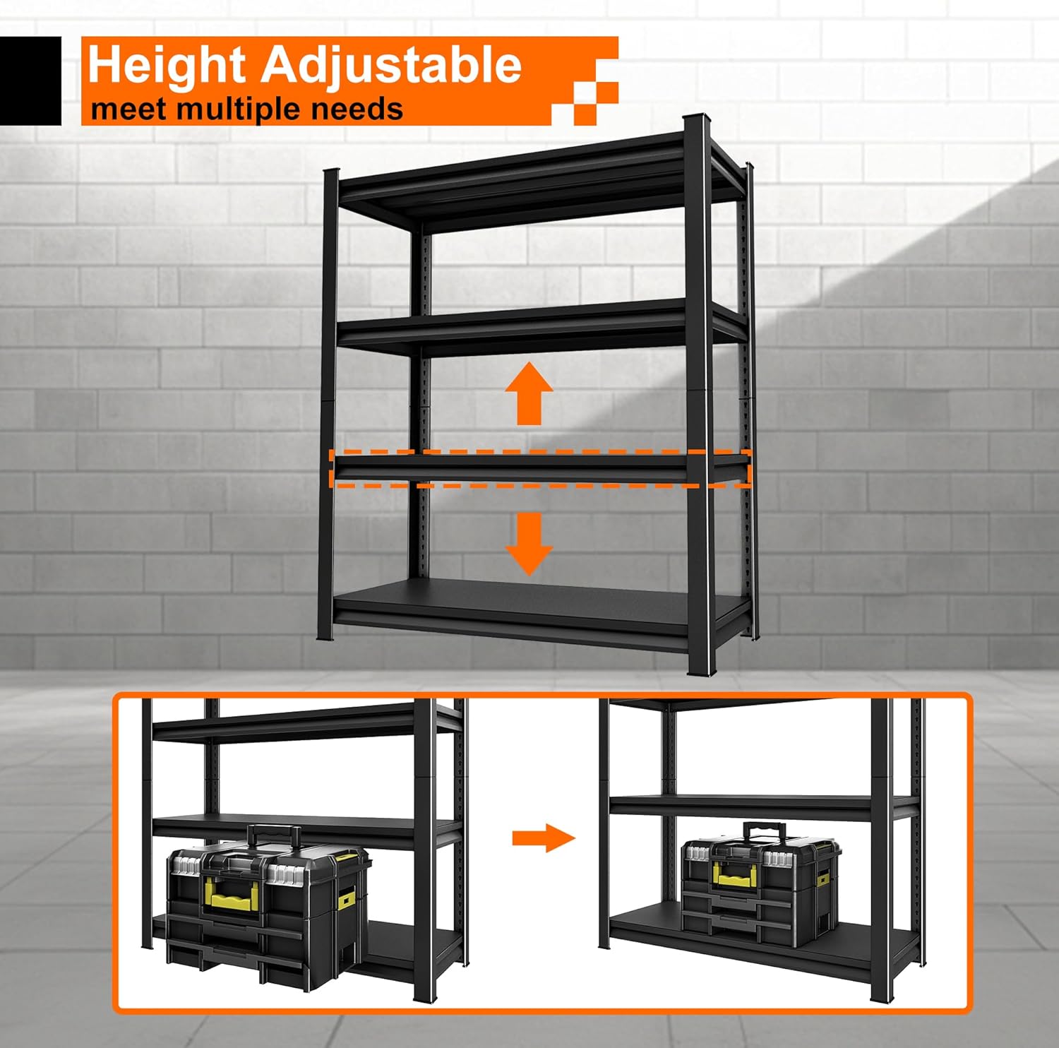 Storage Garage Shelves Heavy Duty - 48”W 2200Lbs Metal Adjustable Shelving Rack Units for Warehouse Basement 48”W × 16”D × 63”H 4 Tier Black