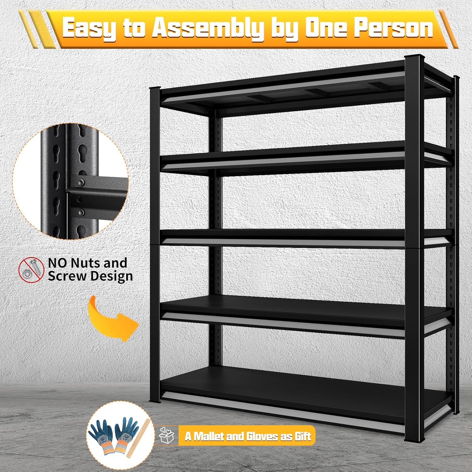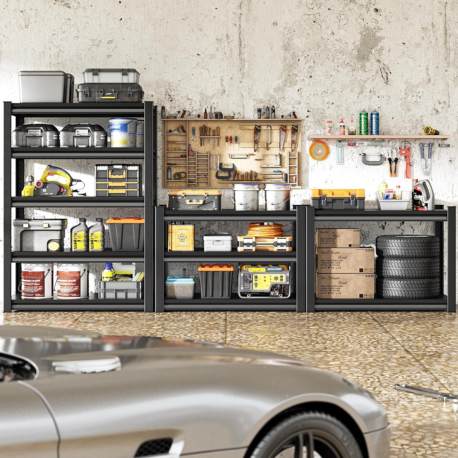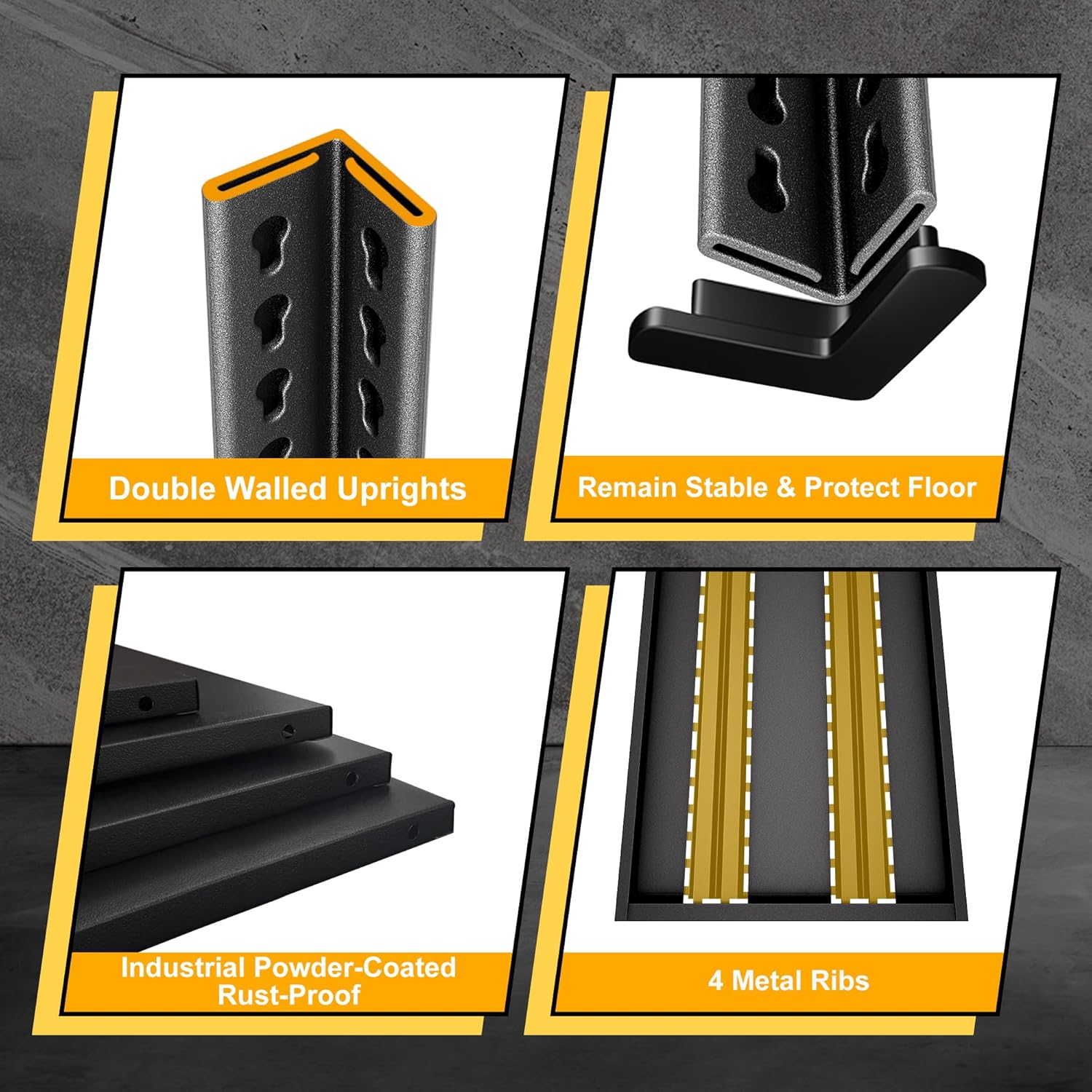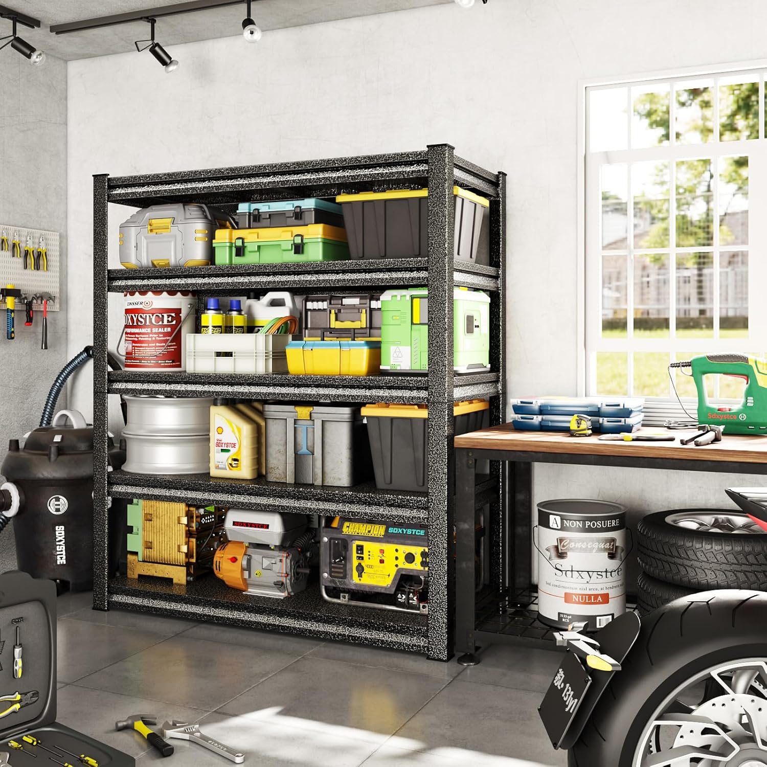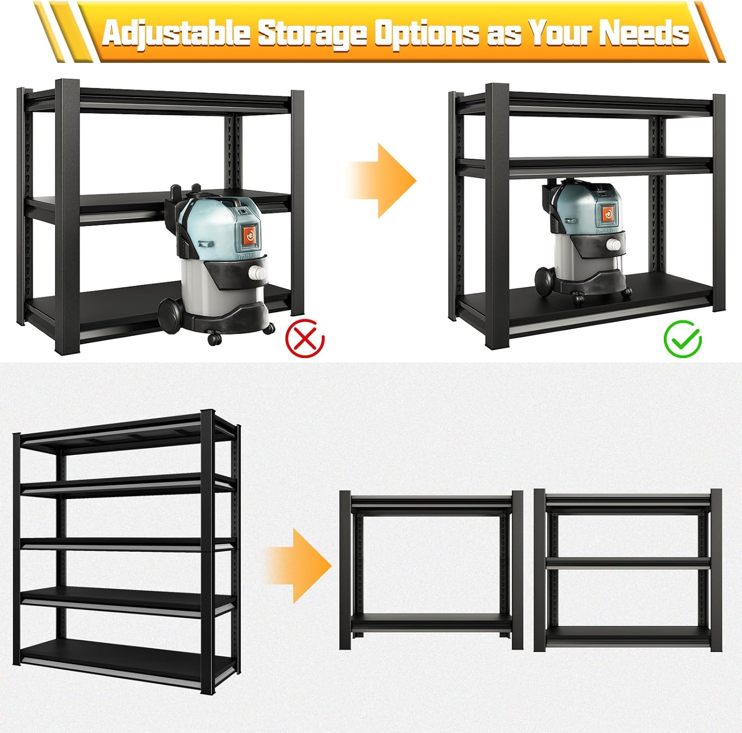 Storage Garage Shelves Heavy Duty - 48”W 2200Lbs Metal Adjustable Shelving Rack Units for Warehouse Basement 48”W × 16”D × 63”H 4 Tier Black
