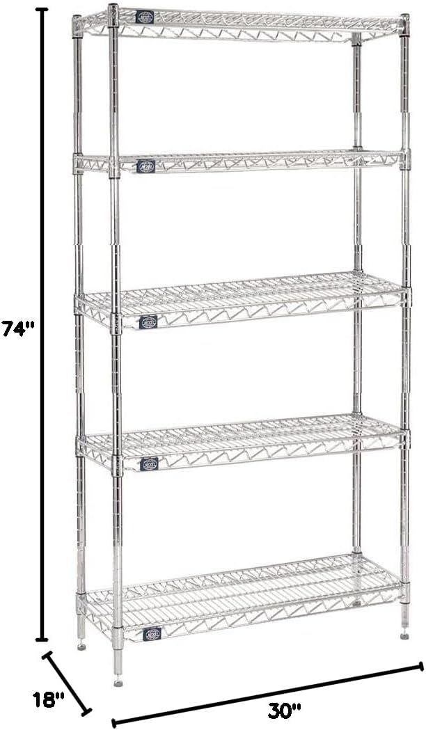 Nexel - 18" x 30" x 74", 5 Tier, NSF Listed Adjustable Wire Shelving, Unit Commercial Storage Rack, Chrome, Leveling feet