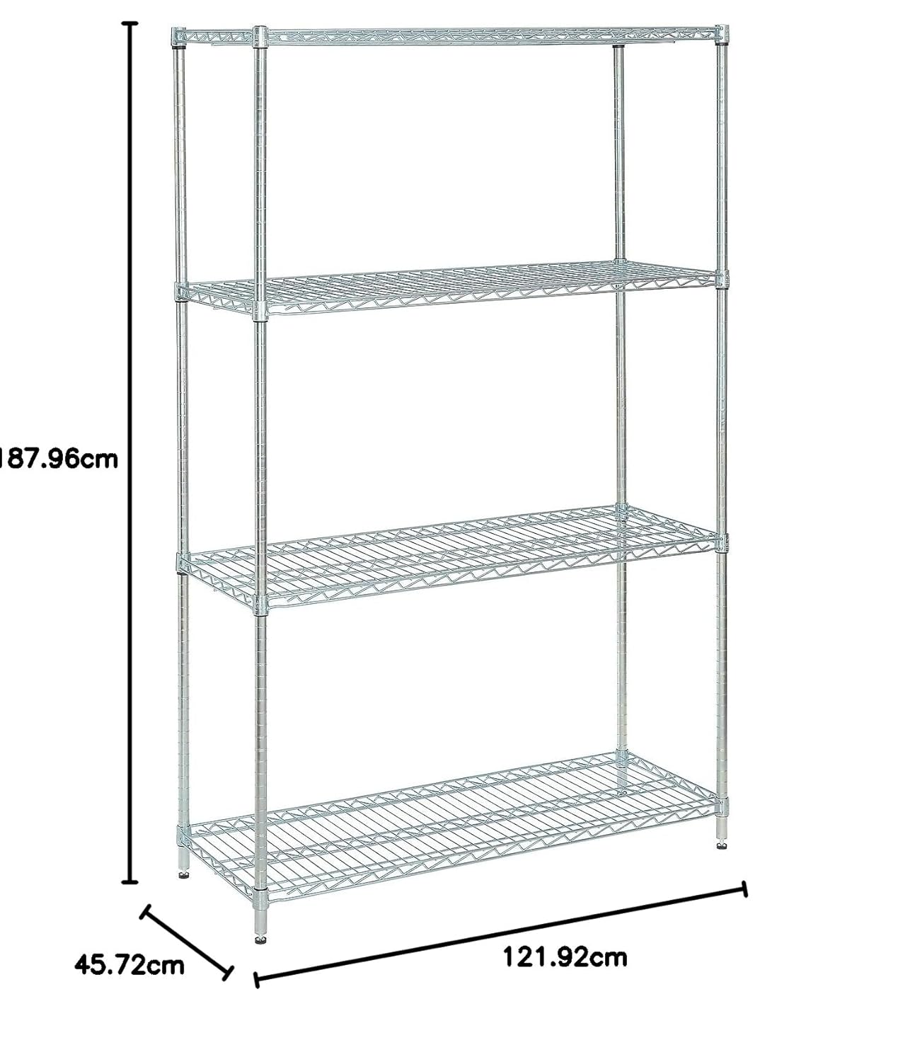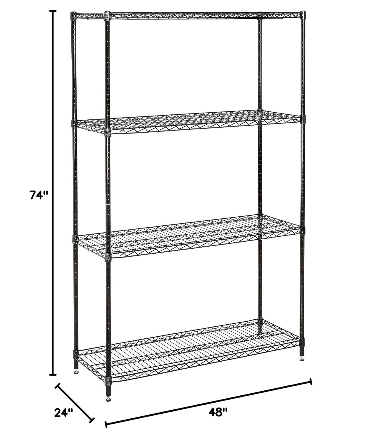 Nexel 24" x 24" x 63", 4 Tier, NSF Listed Adjustable Wire Shelving, Unit Commercial Storage Rack, Silver Epoxy, Leveling feet