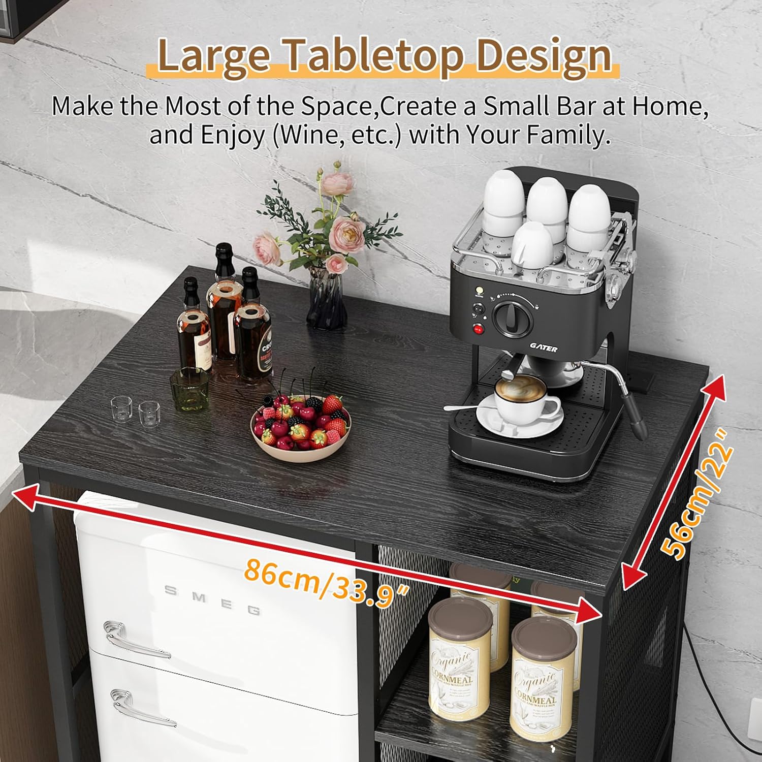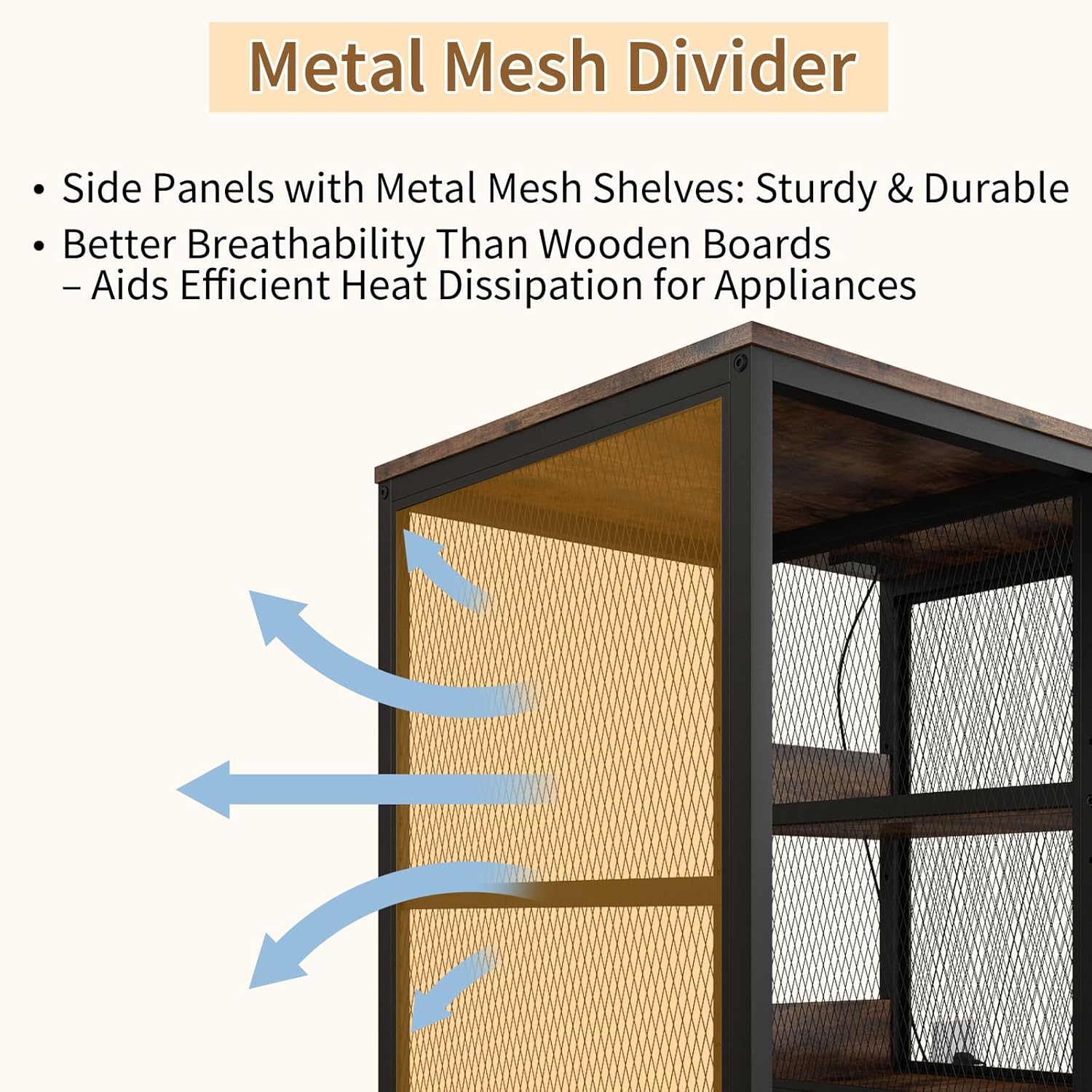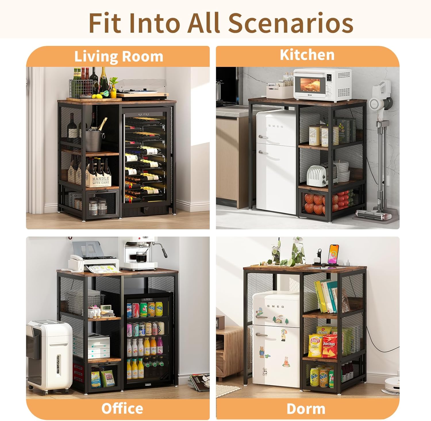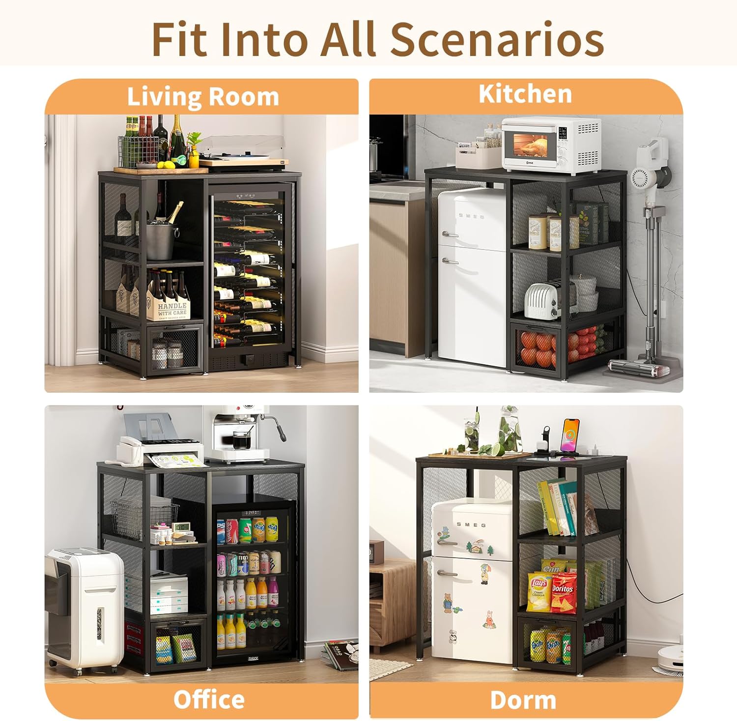 Multifunctional 6-Tier Mini Fridge & Microwave Stand with 2 AC/2 USB Outlets - Coffee Bar & Bakers Rack Storage Shelf, Mini Fridge Cabinet for Kitchen, Dorm, Living Room