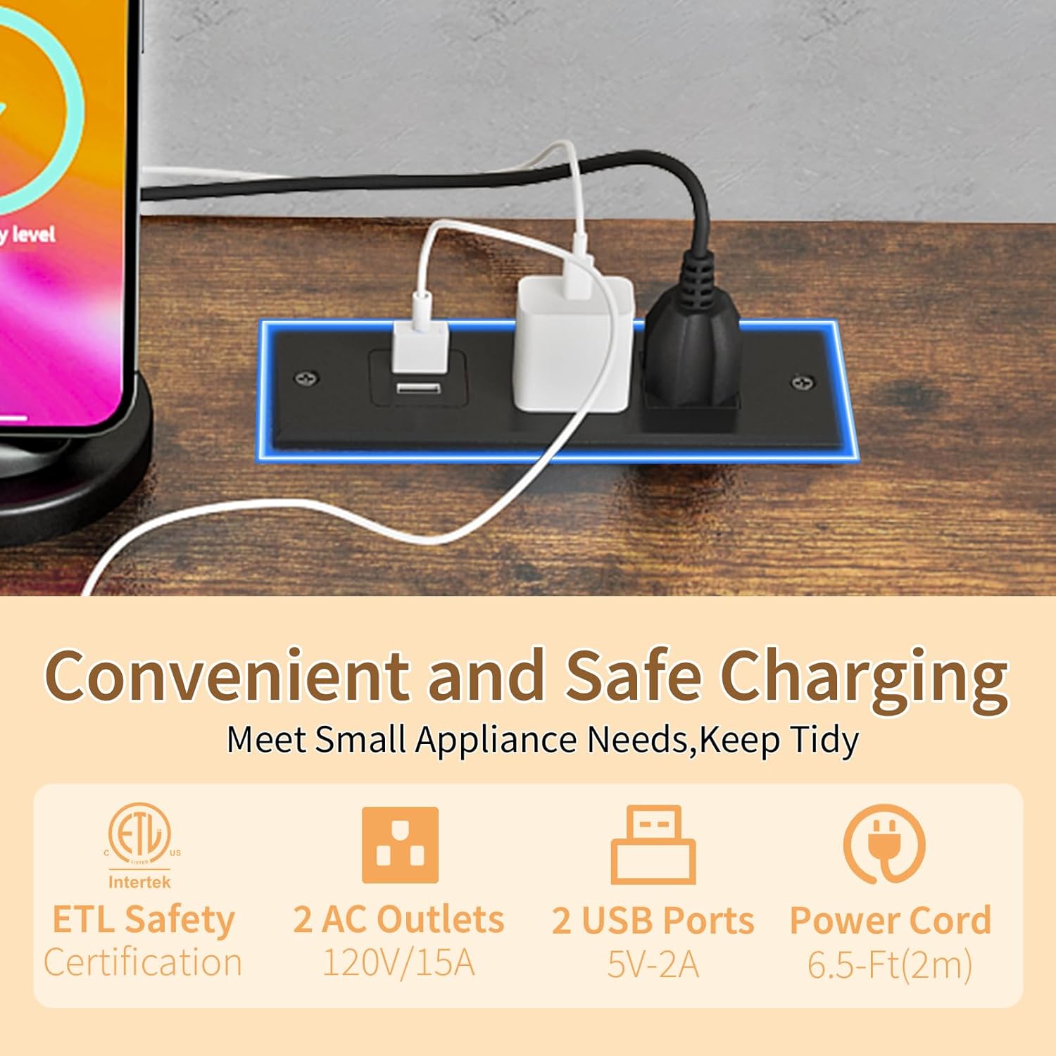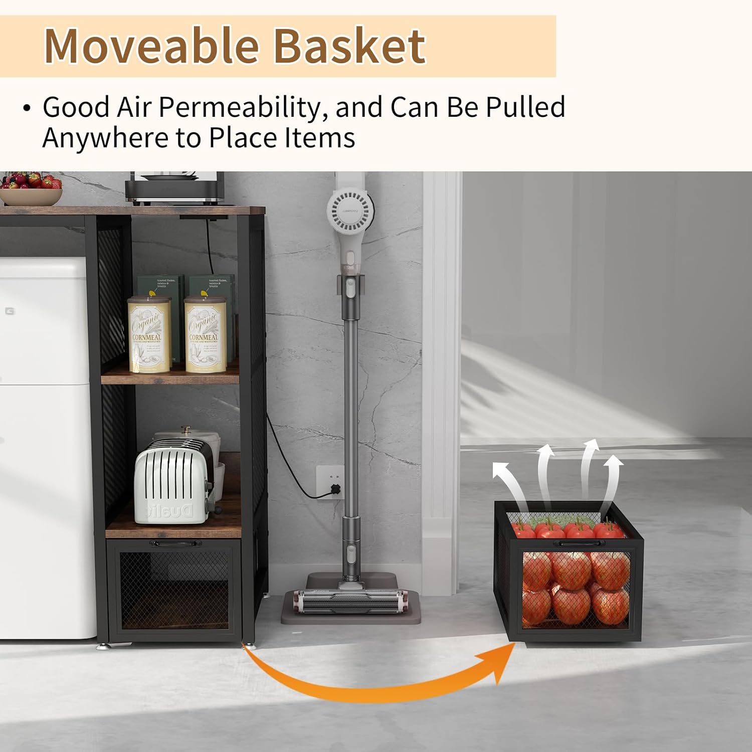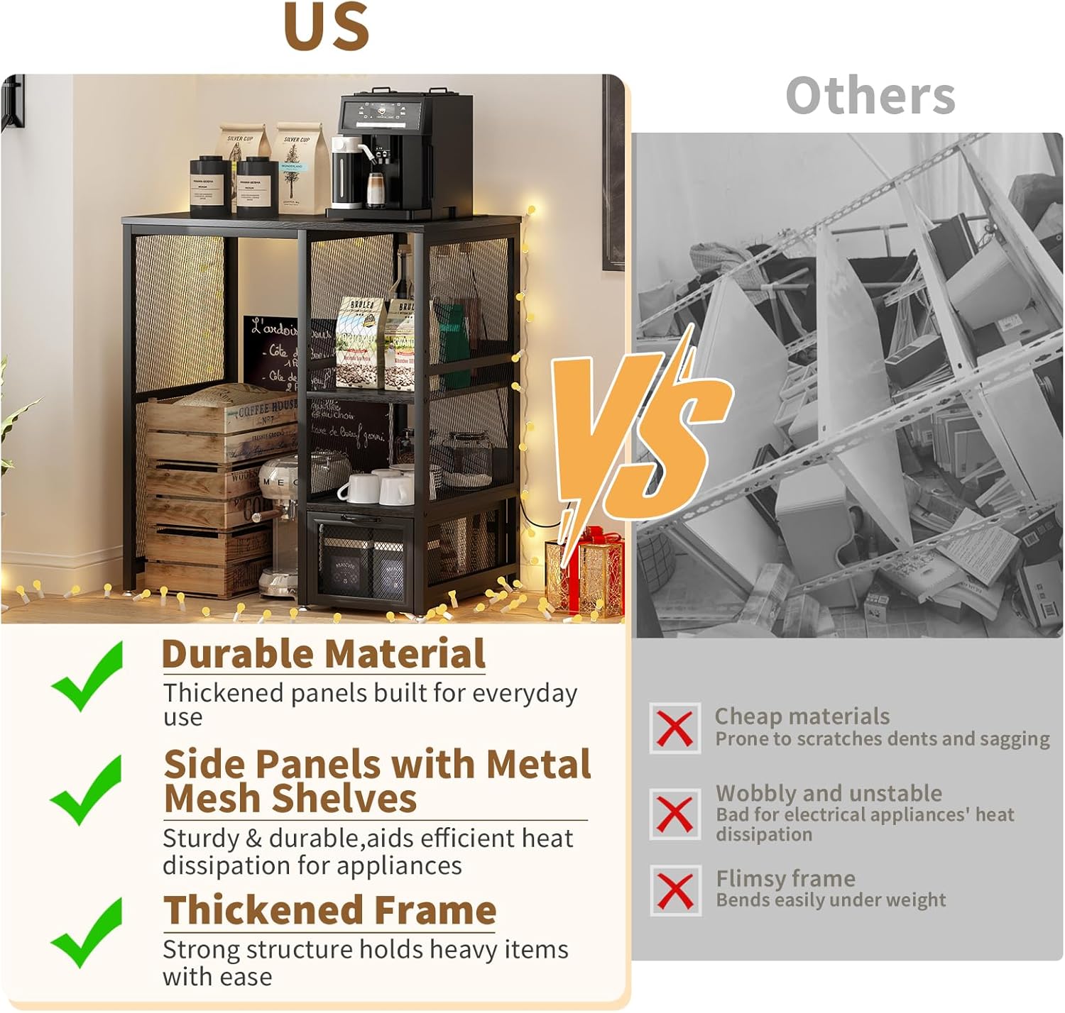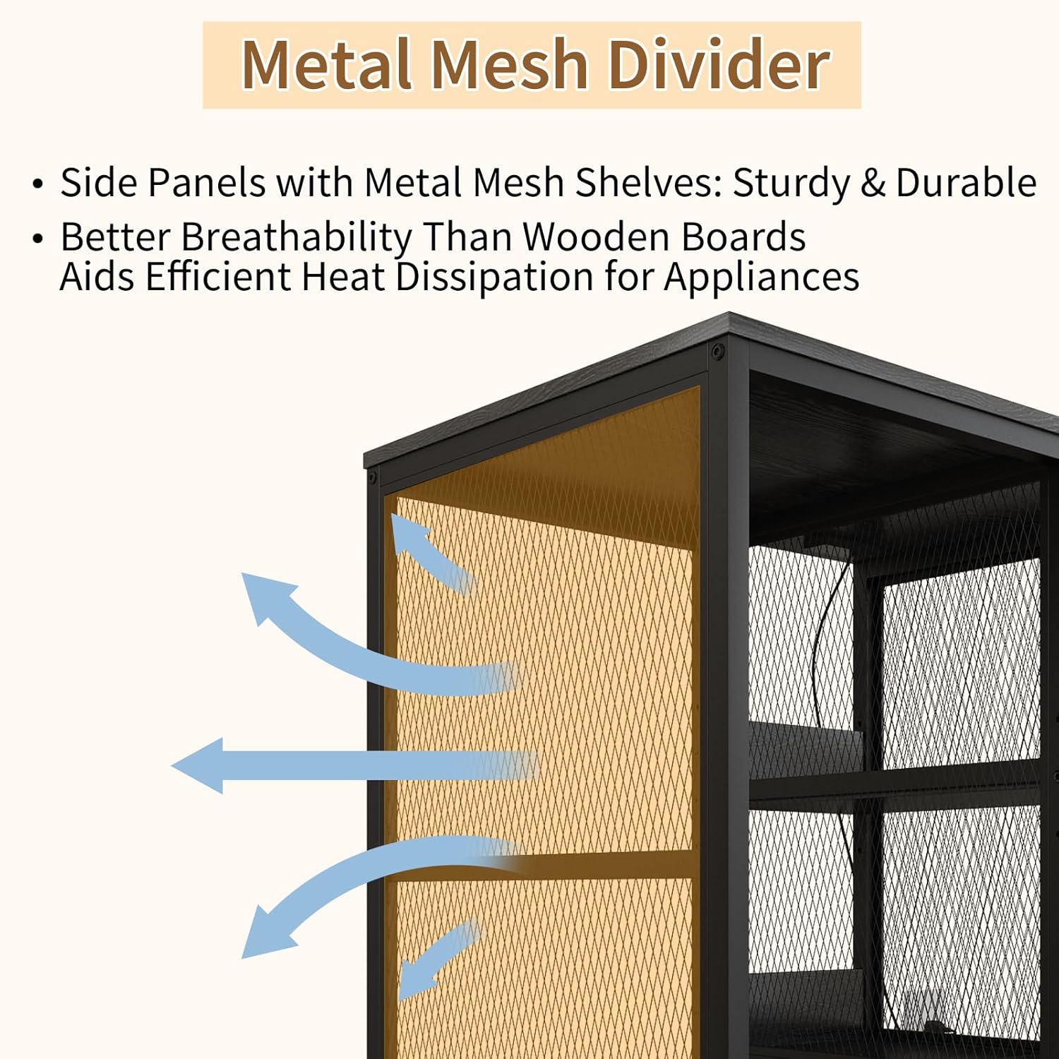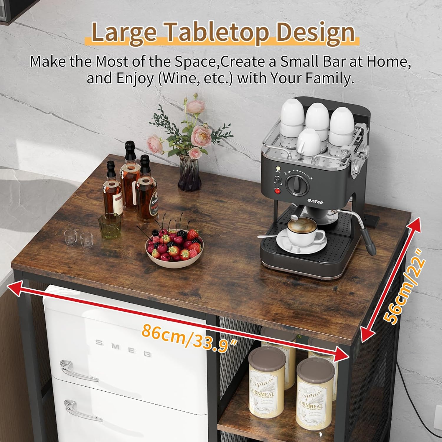 Multifunctional 6-Tier Mini Fridge & Microwave Stand with 2 AC/2 USB Outlets - Coffee Bar & Bakers Rack Storage Shelf, Mini Fridge Cabinet for Kitchen, Dorm, Living Room