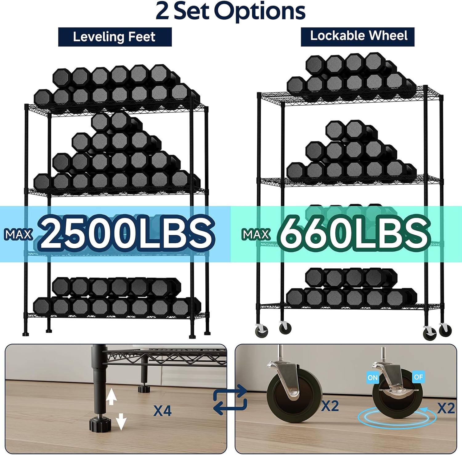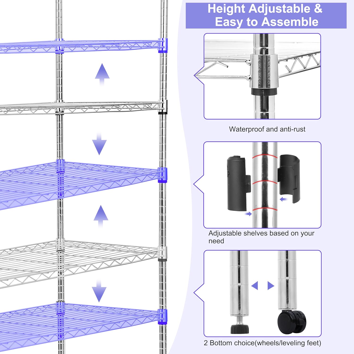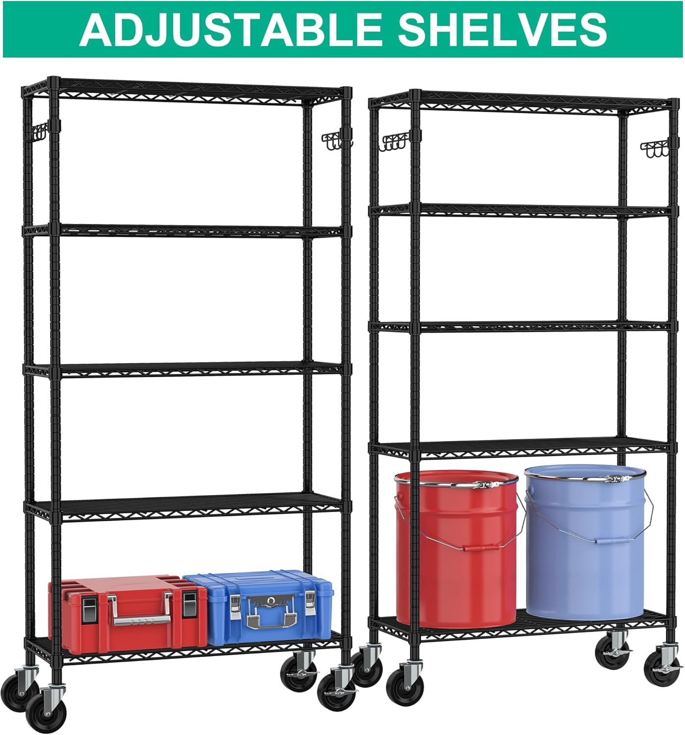 Heavy Duty Storage Shelves 5-Tier, Wire Shelving Unit with Wheels & Adjustable Feet Metal Shelf Rack for Garage, Kitchen, Pantry, Laundry Room 400 Lbs Per Shelf - 14x36x75