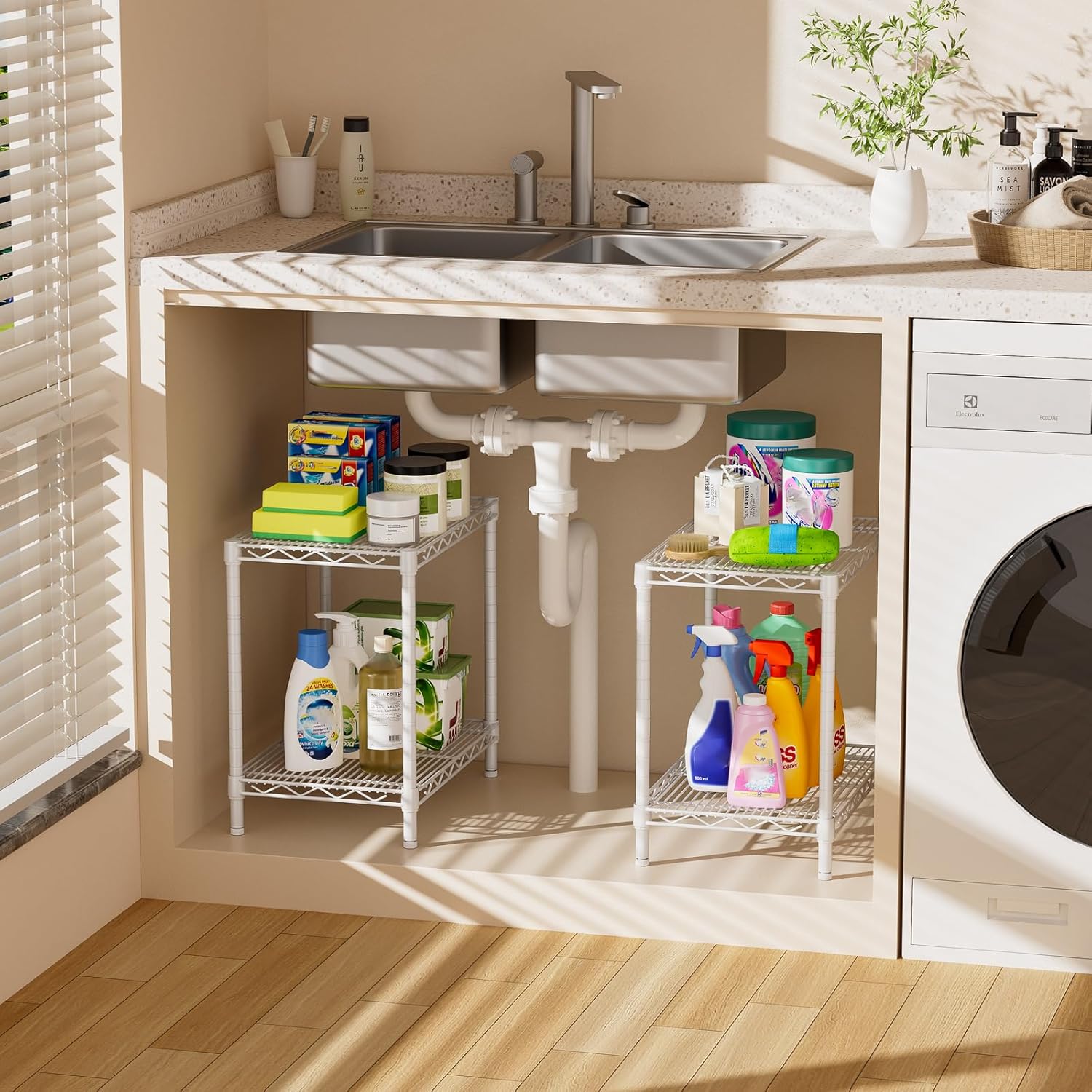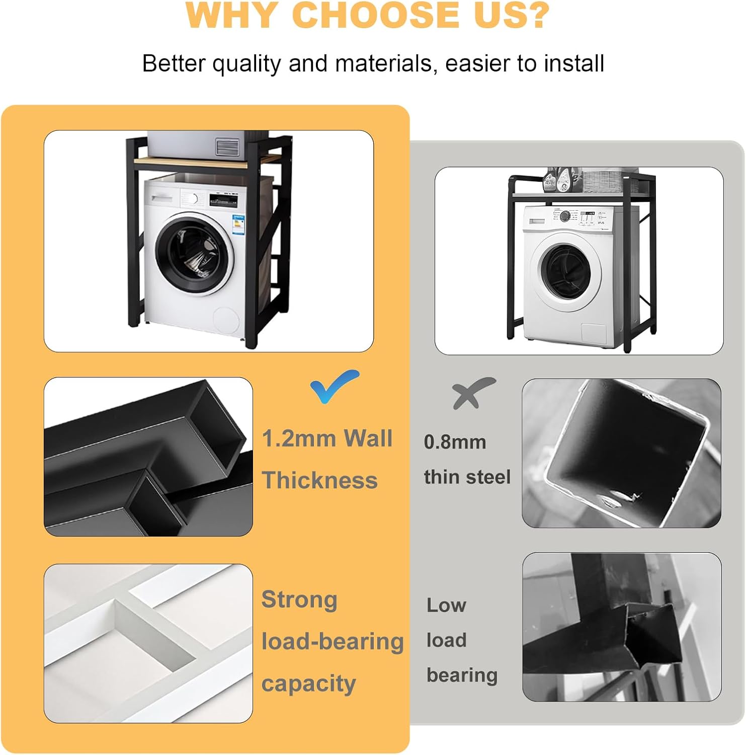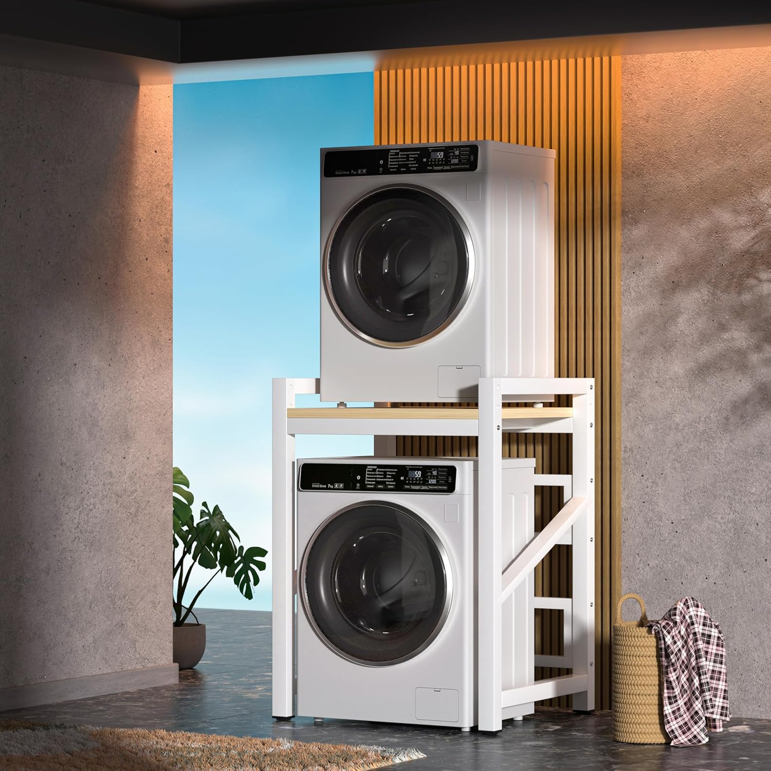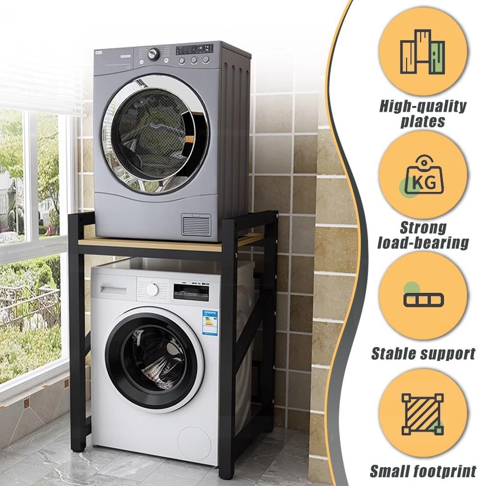 Washer Dryer Stacking Rack, 25.59in Wide Over Washer and Dryer Shelves Kit for Laundry Room, Washer Dryer Stacking Rack Stand for Bathrooms, Balconies, 1.2mm Wall Thickness, 660 lbs Capacity