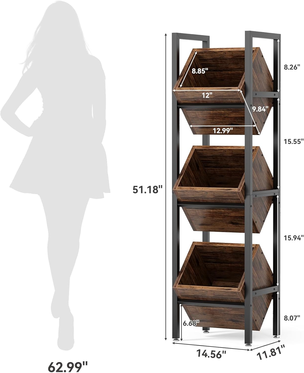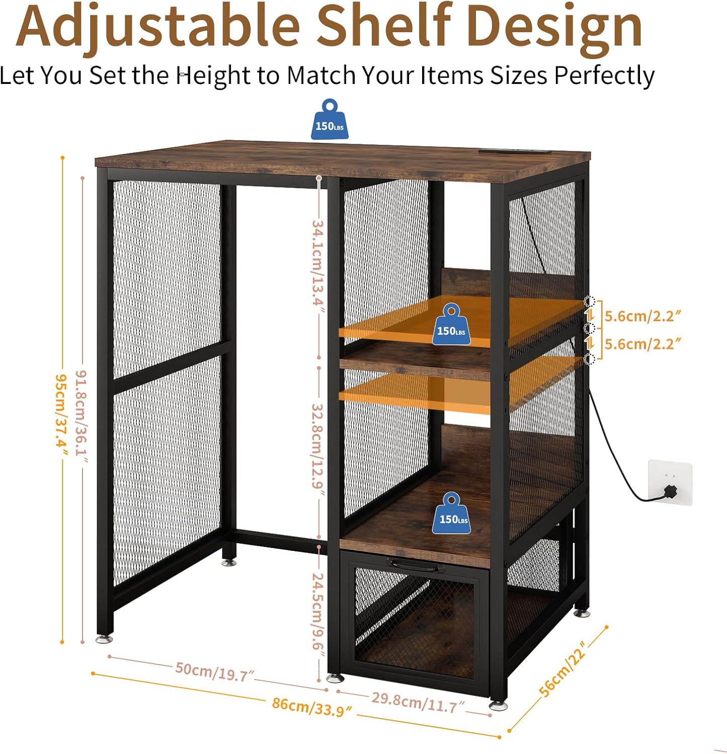 Kitchen Bakers Rack with Power Outlet, Microwave Stand with Drawer, Mini Fridge Stand with Adjustable Shelves,Mini Fridge Cabinet Suitable for Dining Room, Dorm,Home, Rustic Brown