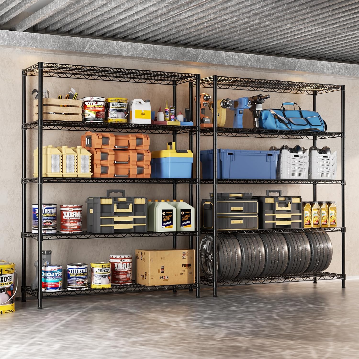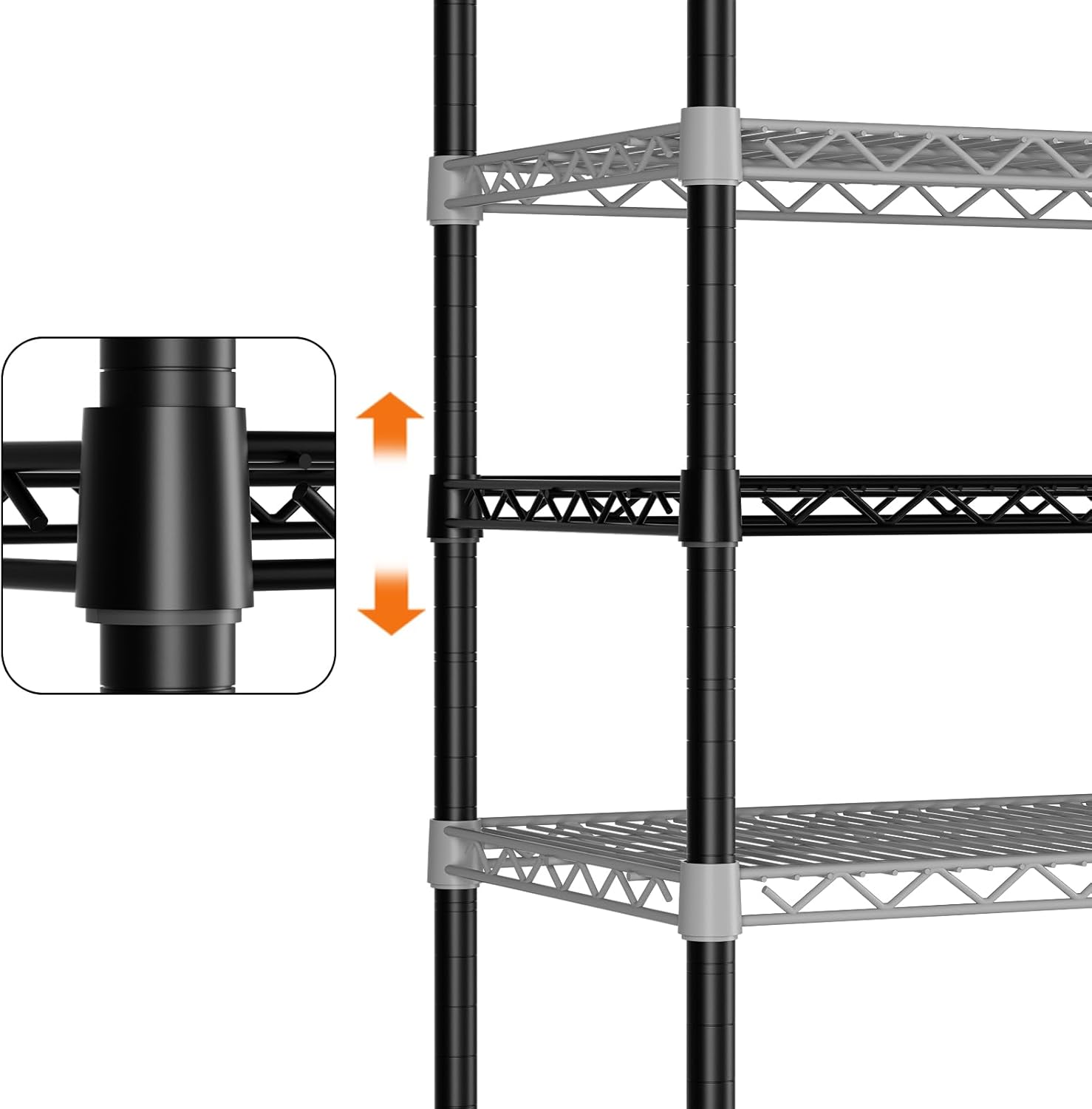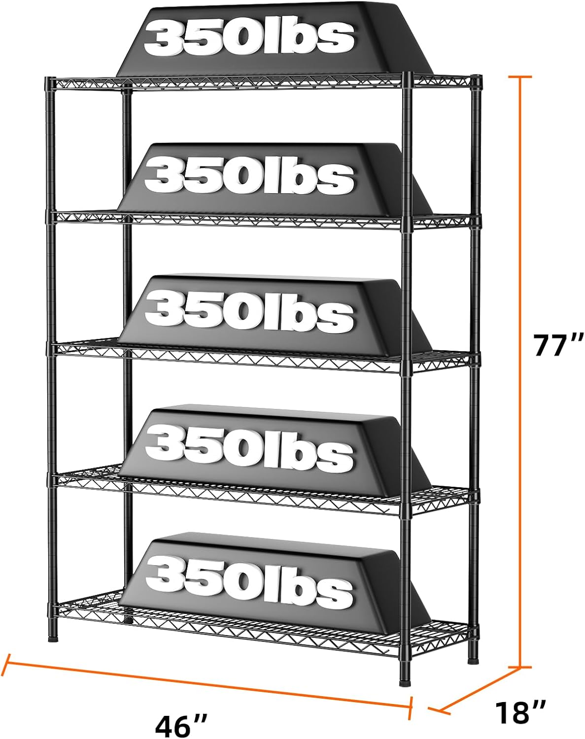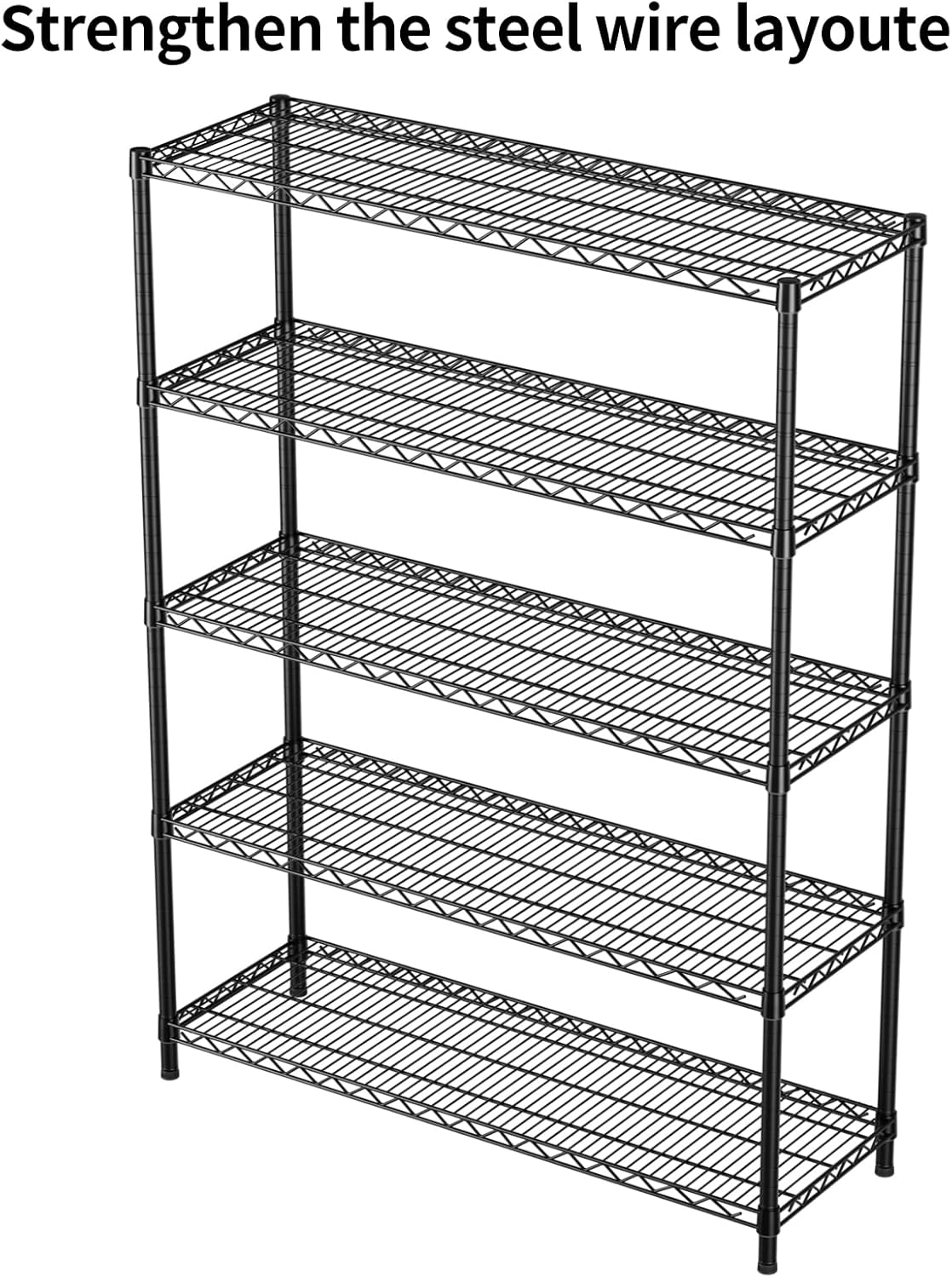 SINGAYE 5 Adjustable Heavy Duty Garage Shelving Wire Shelves Metal Standing Units Bathroom Organizers and Storage Shelf Closet Metal Pantry Kitchen 18" DX46 WX77 H Black