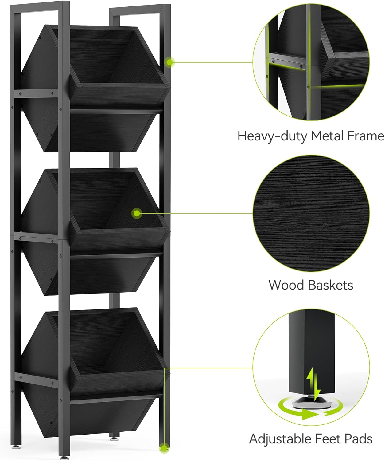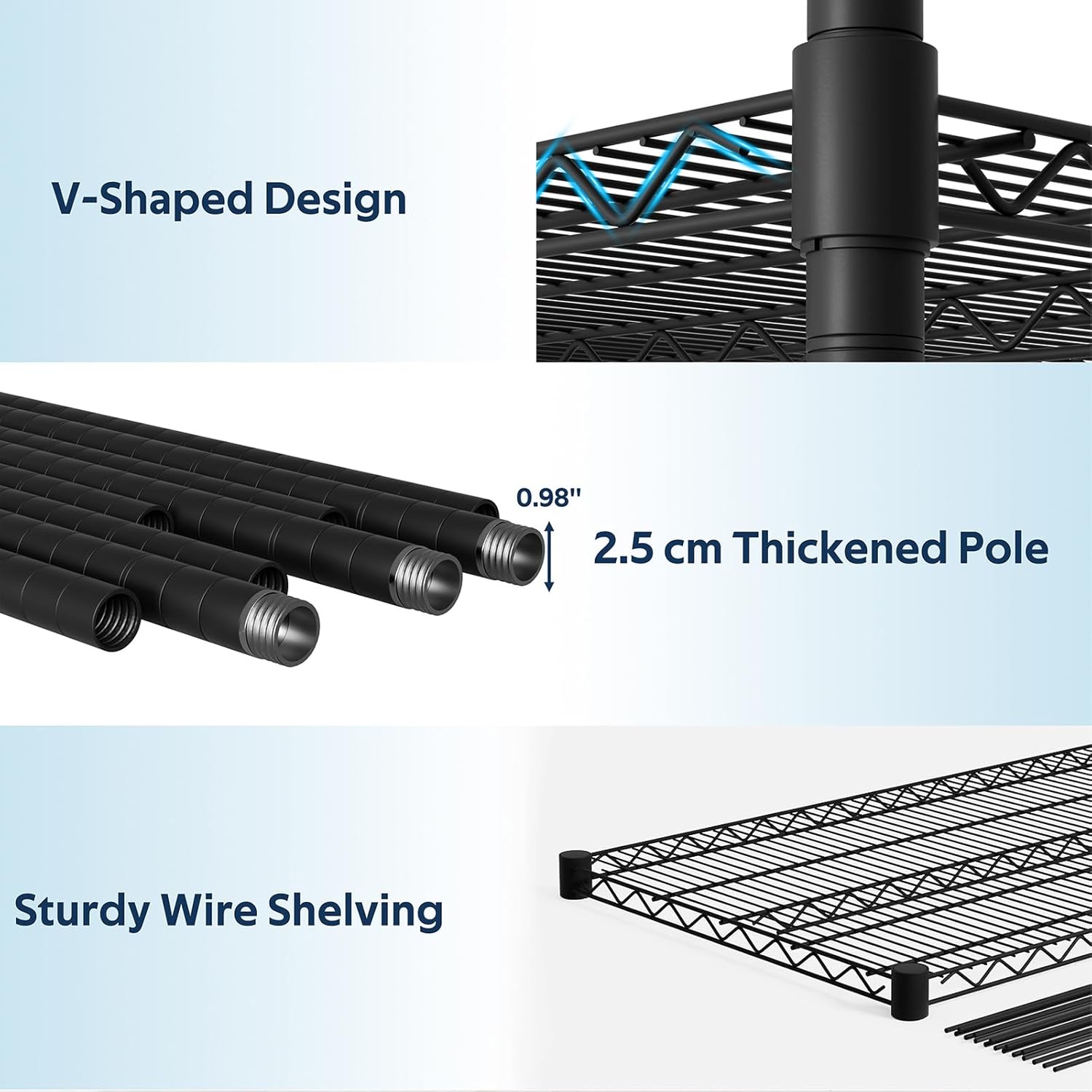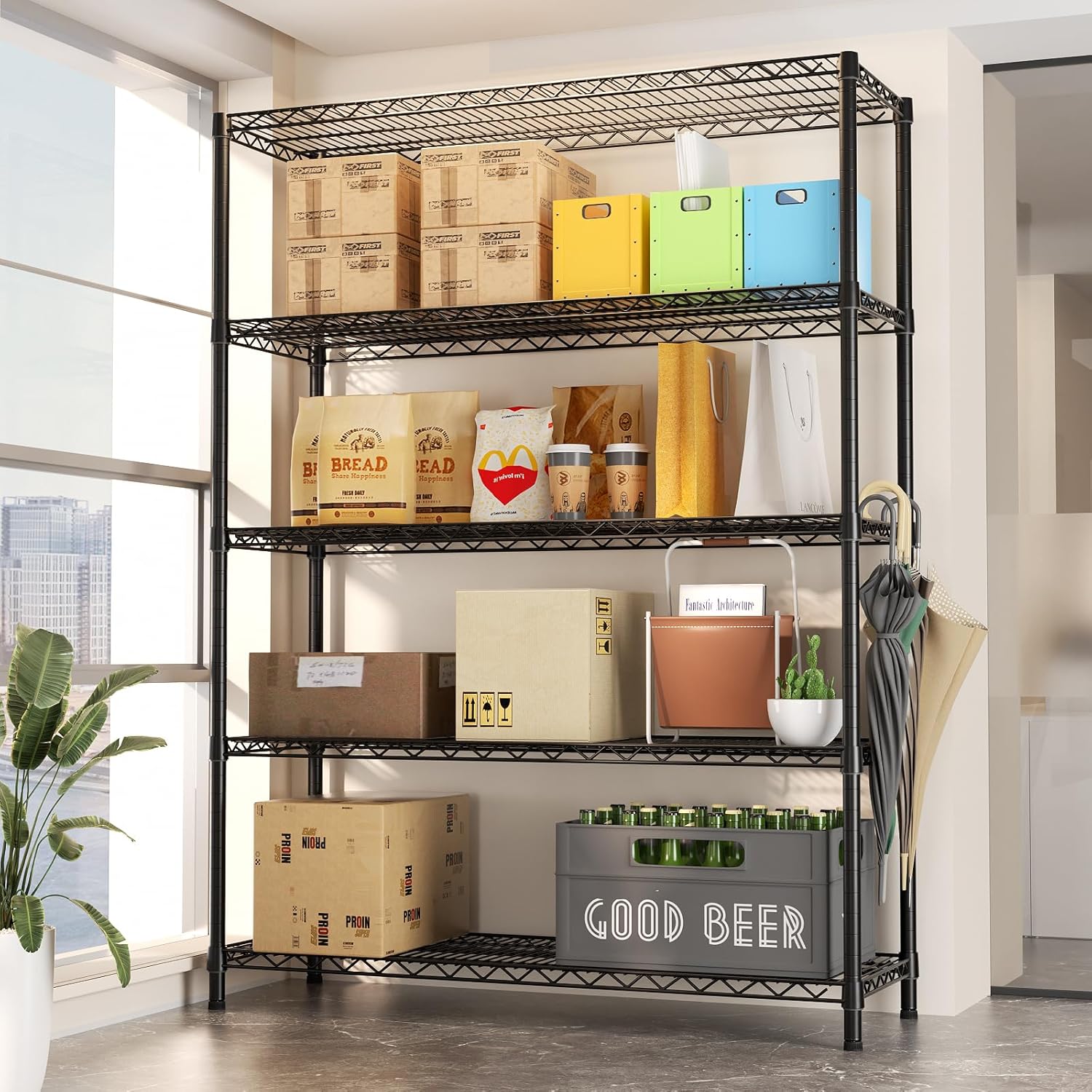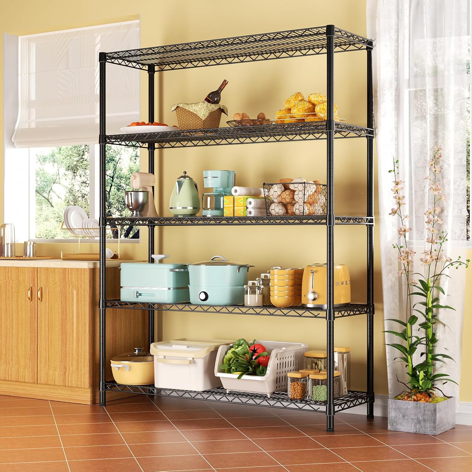 SINGAYE 5 Adjustable Heavy Duty Garage Shelving Wire Shelves Metal Standing Units Bathroom Organizers and Storage Shelf Closet Metal Pantry Kitchen 18" DX46 WX77 H Black