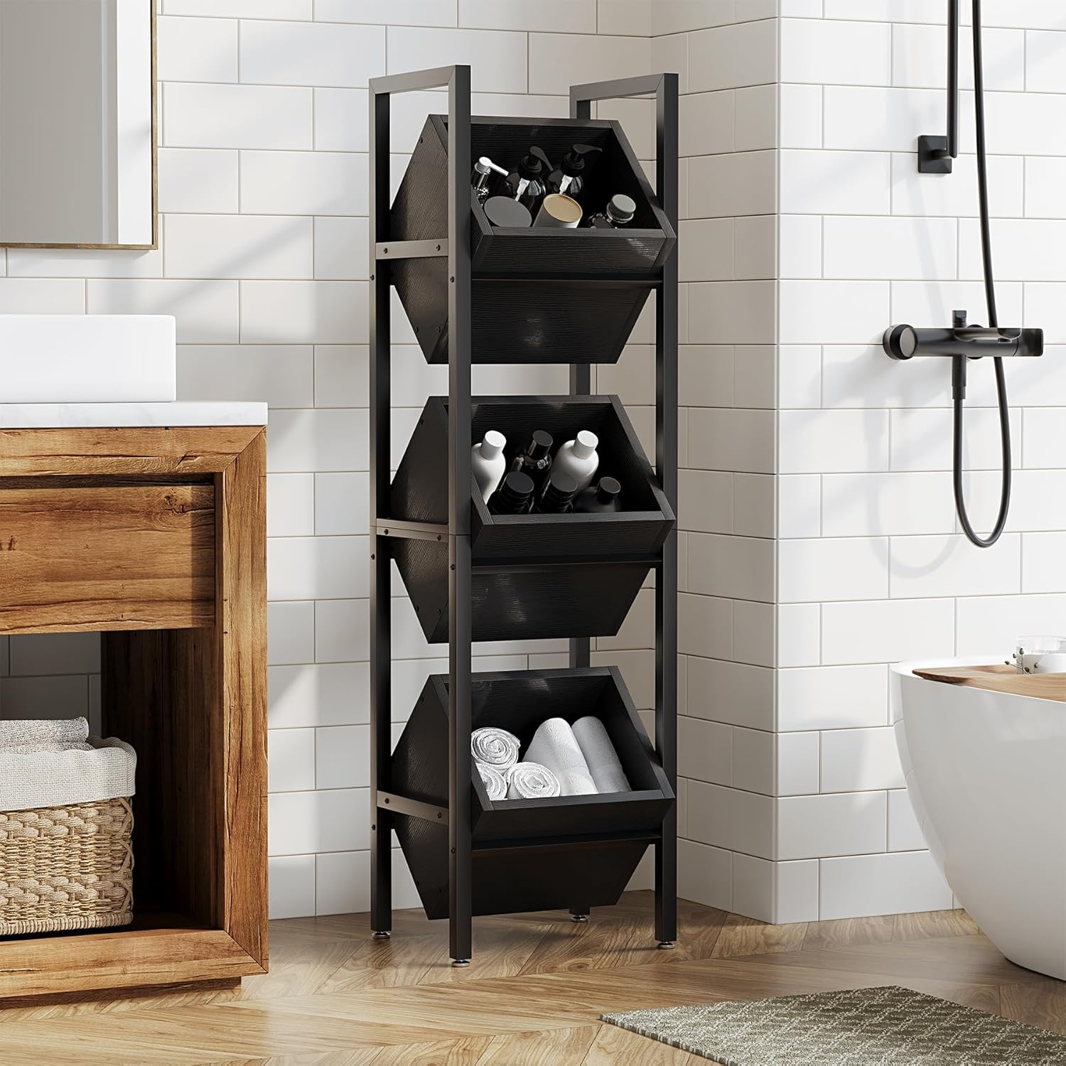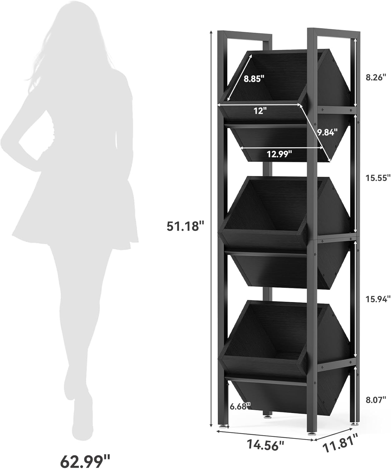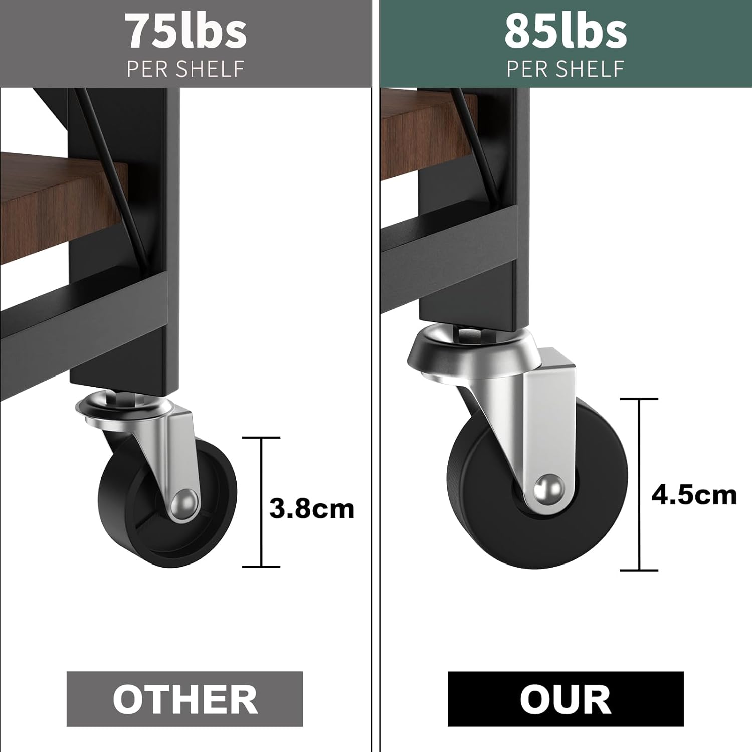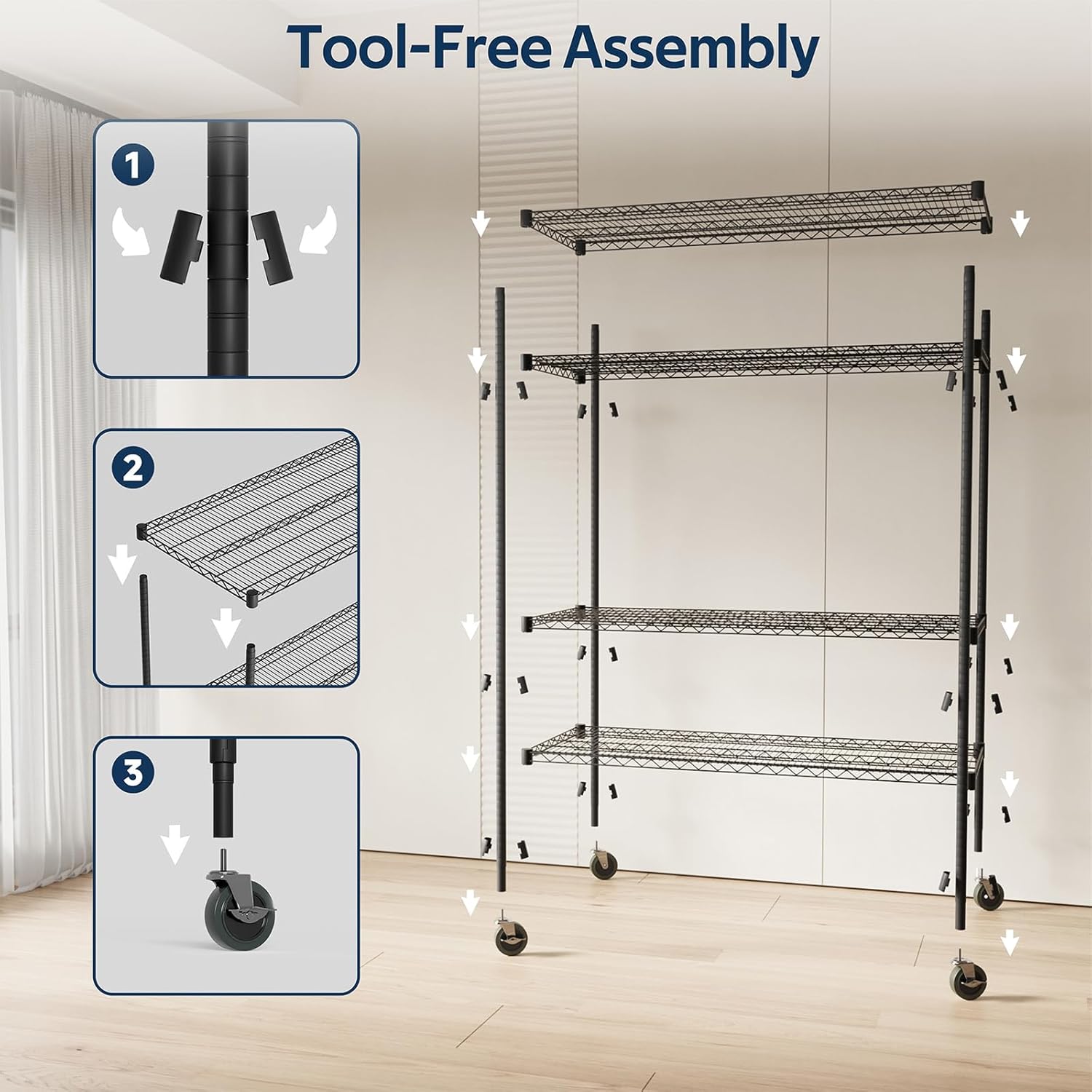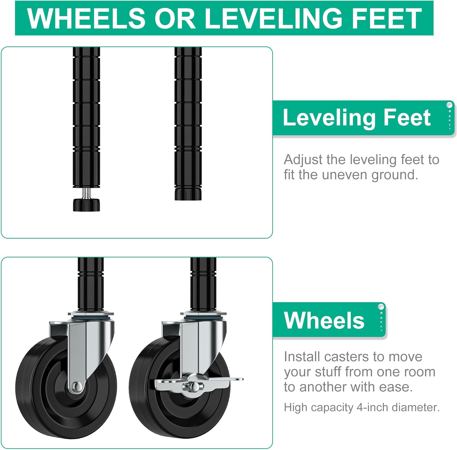 Whitmor 4 Tier Storage Shelves with Wheels, Heavy Duty Metal Shelving Unit, 625 lbs Capacity per Shelf, 2500 lbs Total for Kitchen, Garage, Plant, 55" L x 24" W x 72" H, Black