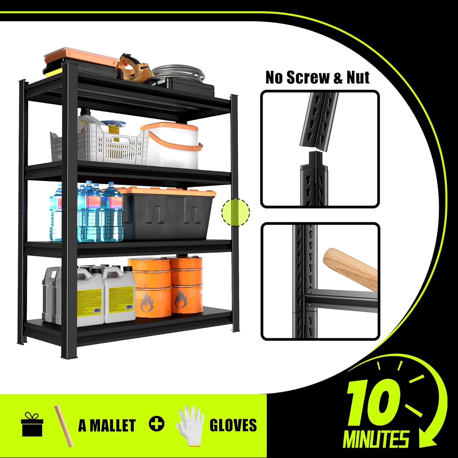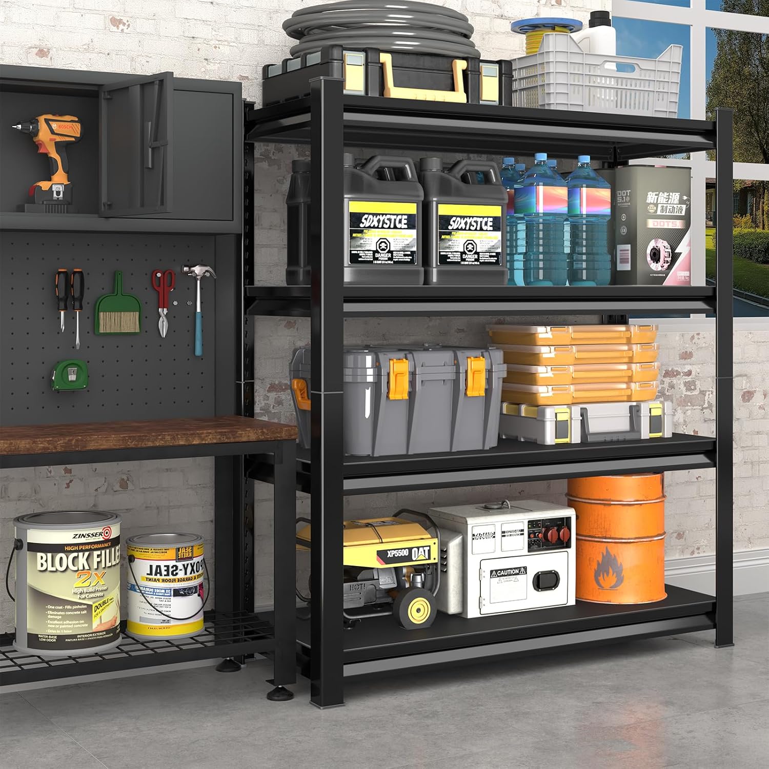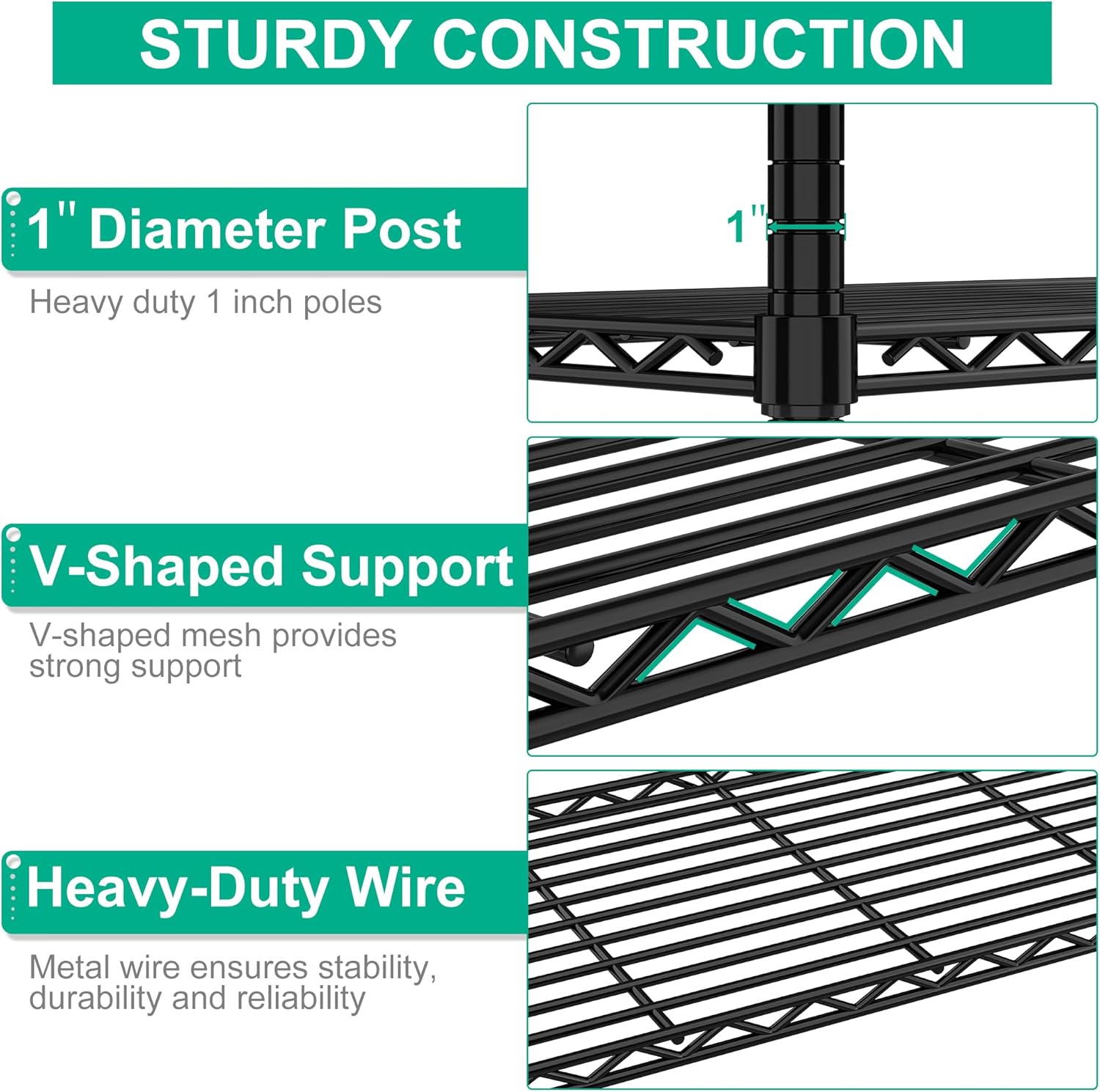 48" W Garage Shelving Heavy Duty, 2800 Lbs Loads Garage Storage Shelves Heavy Duty, Metal Shelving Units and Storage Racks, Industrial Utility Shelf,48" Wx18 Dx78 H, Black