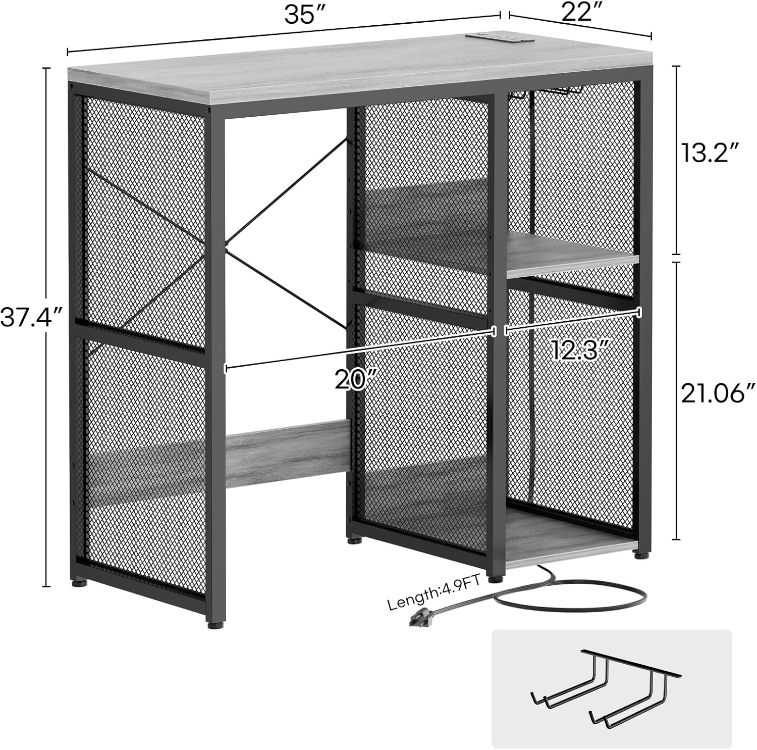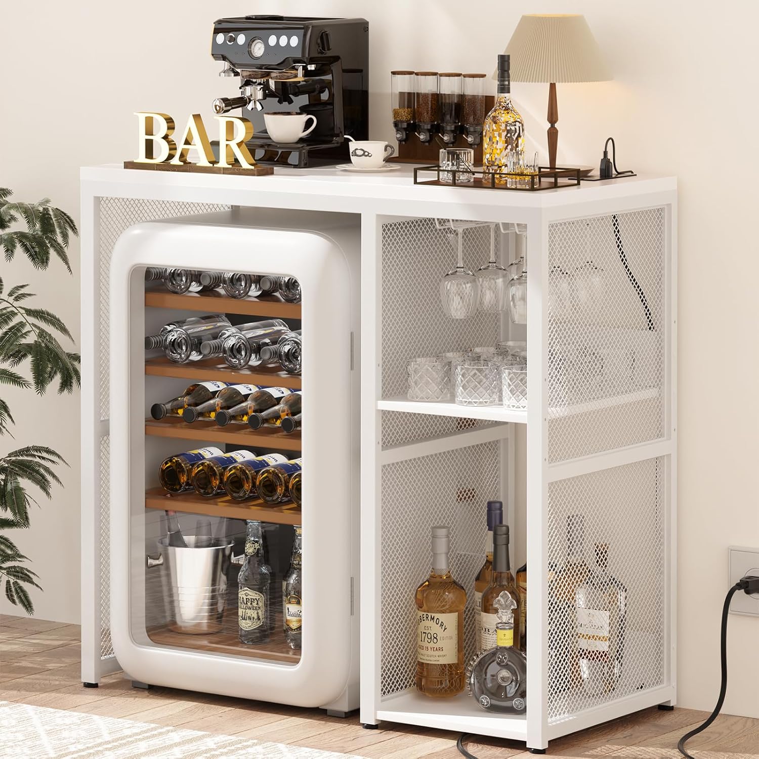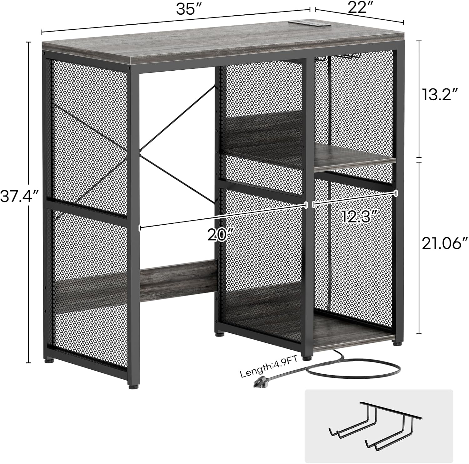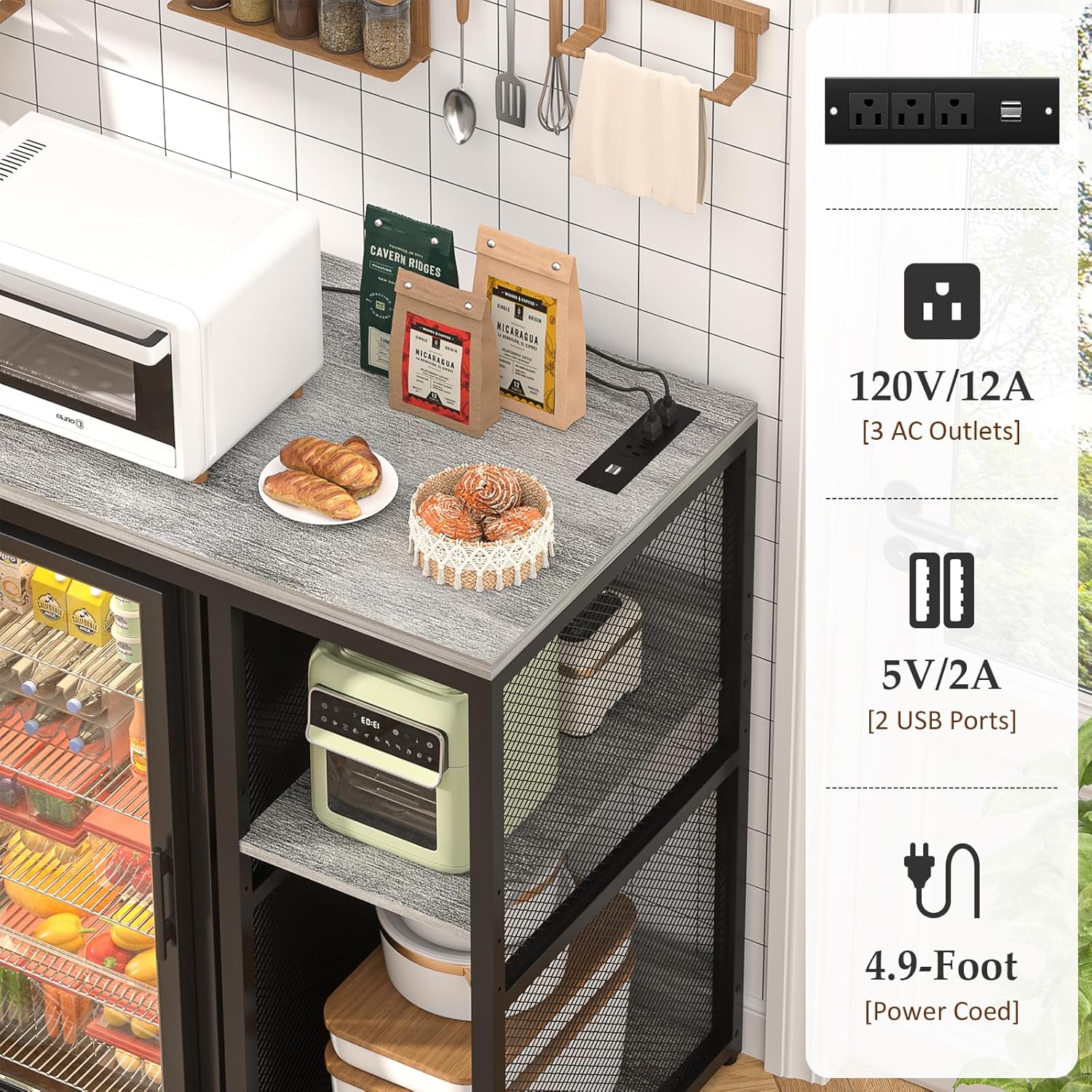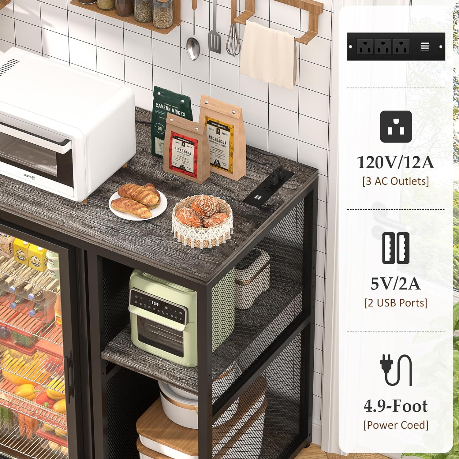 Homieasy Mini Fridge Stand Organizer with Power Outlet, Industrial Microwave Stand with Storage Shelving Unit, Space Saving Over Fridge Storage Cabinet for Home Kitchen Dorm, Black