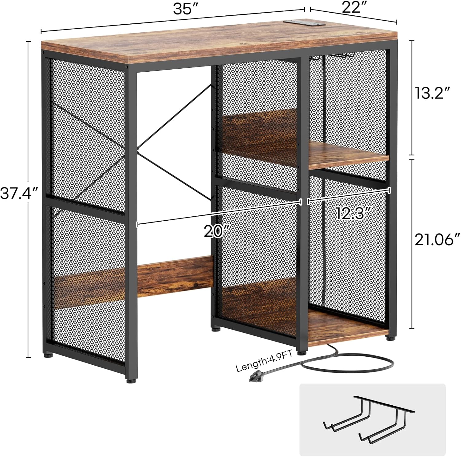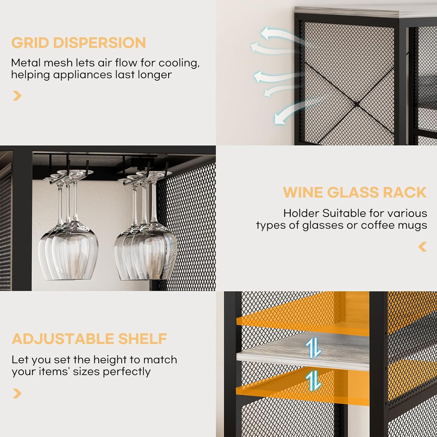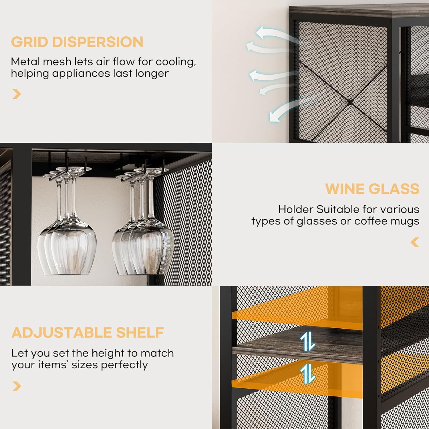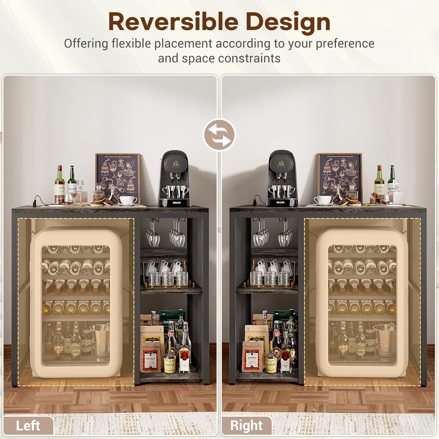 Homieasy Mini Fridge Stand Organizer with Power Outlet, Industrial Microwave Stand with Storage Shelving Unit, Space Saving Over Fridge Storage Cabinet for Home Kitchen Dorm, Black