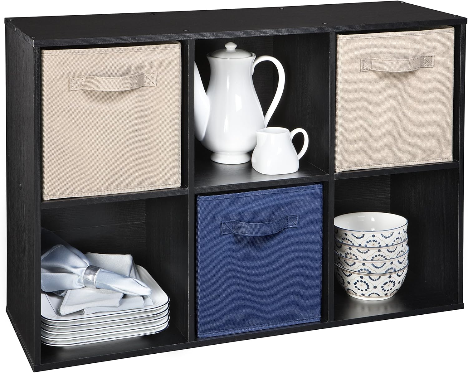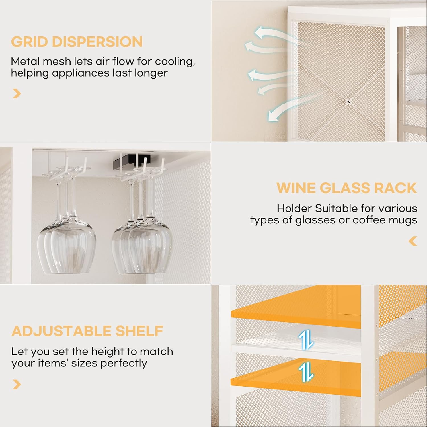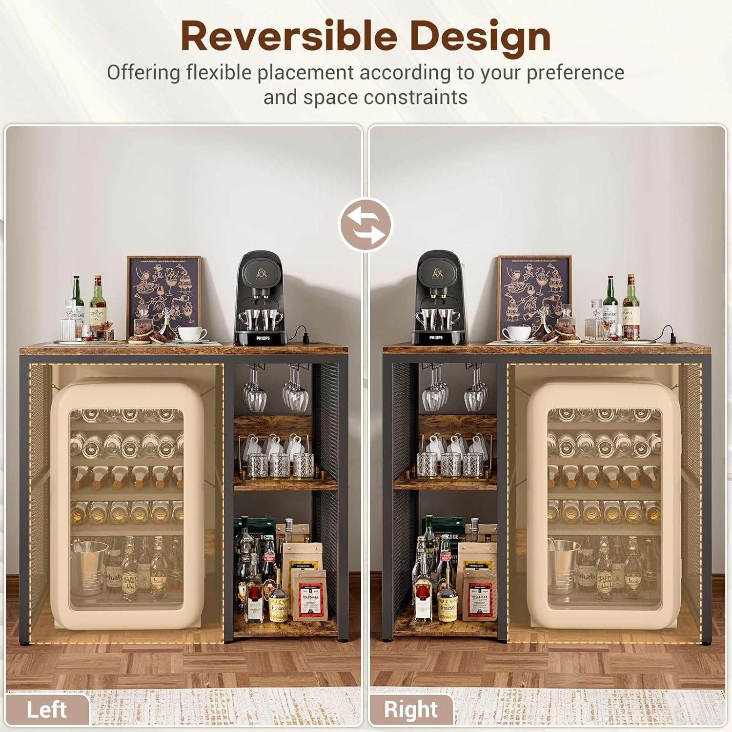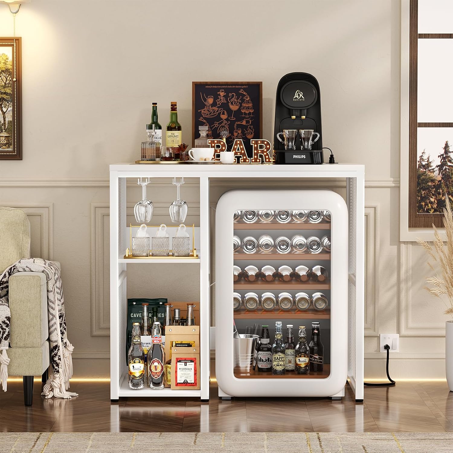 Homieasy Mini Fridge Stand Organizer with Power Outlet, Industrial Microwave Stand with Storage Shelving Unit, Space Saving Over Fridge Storage Cabinet for Home Kitchen Dorm, Black