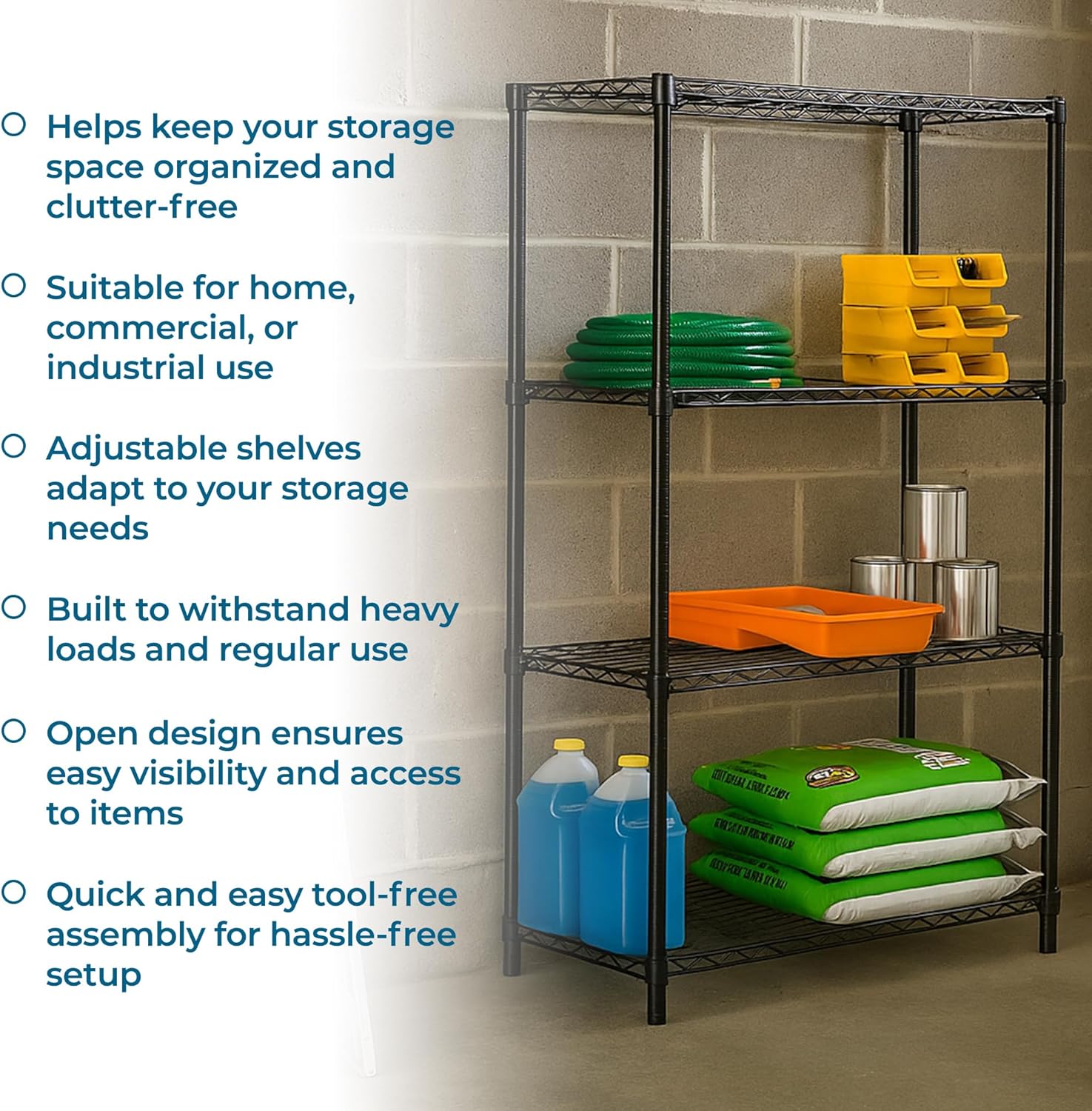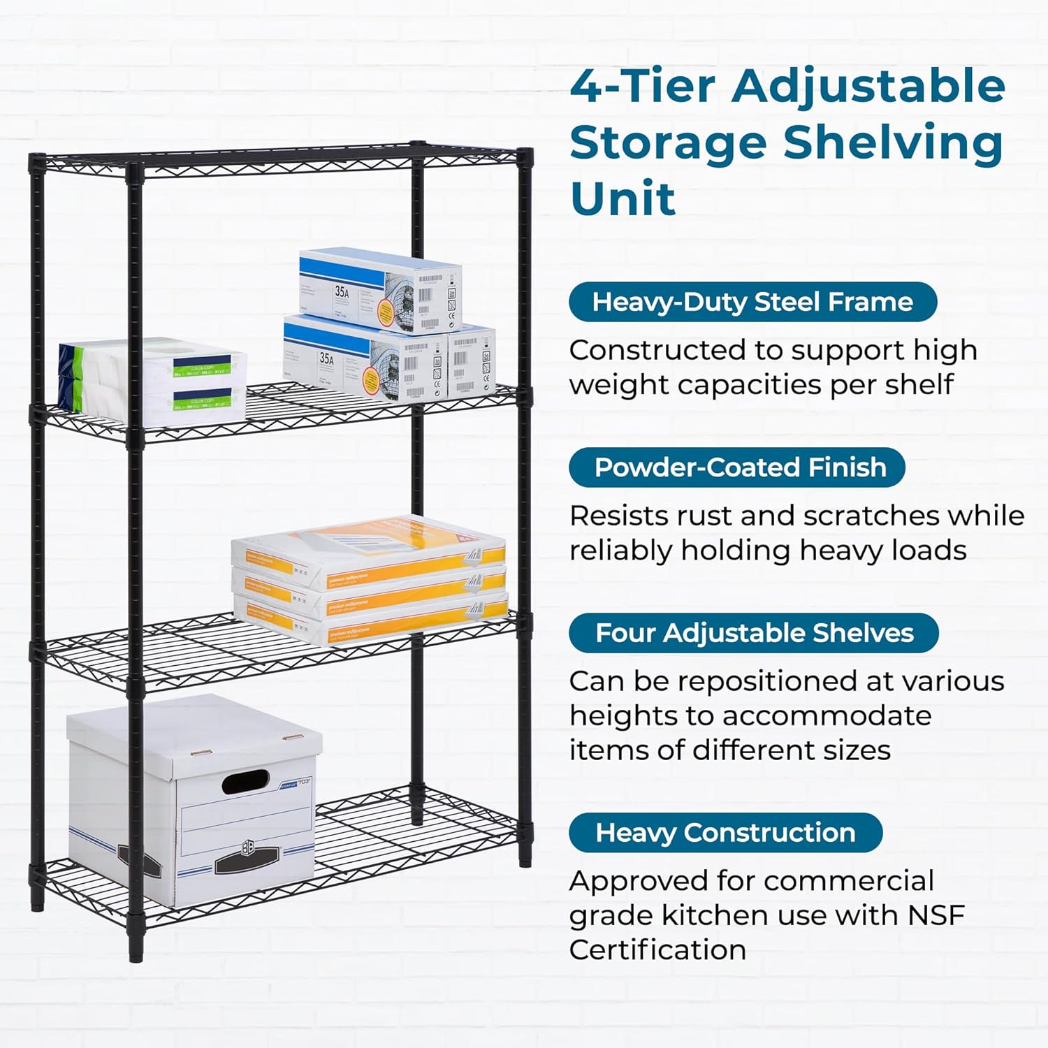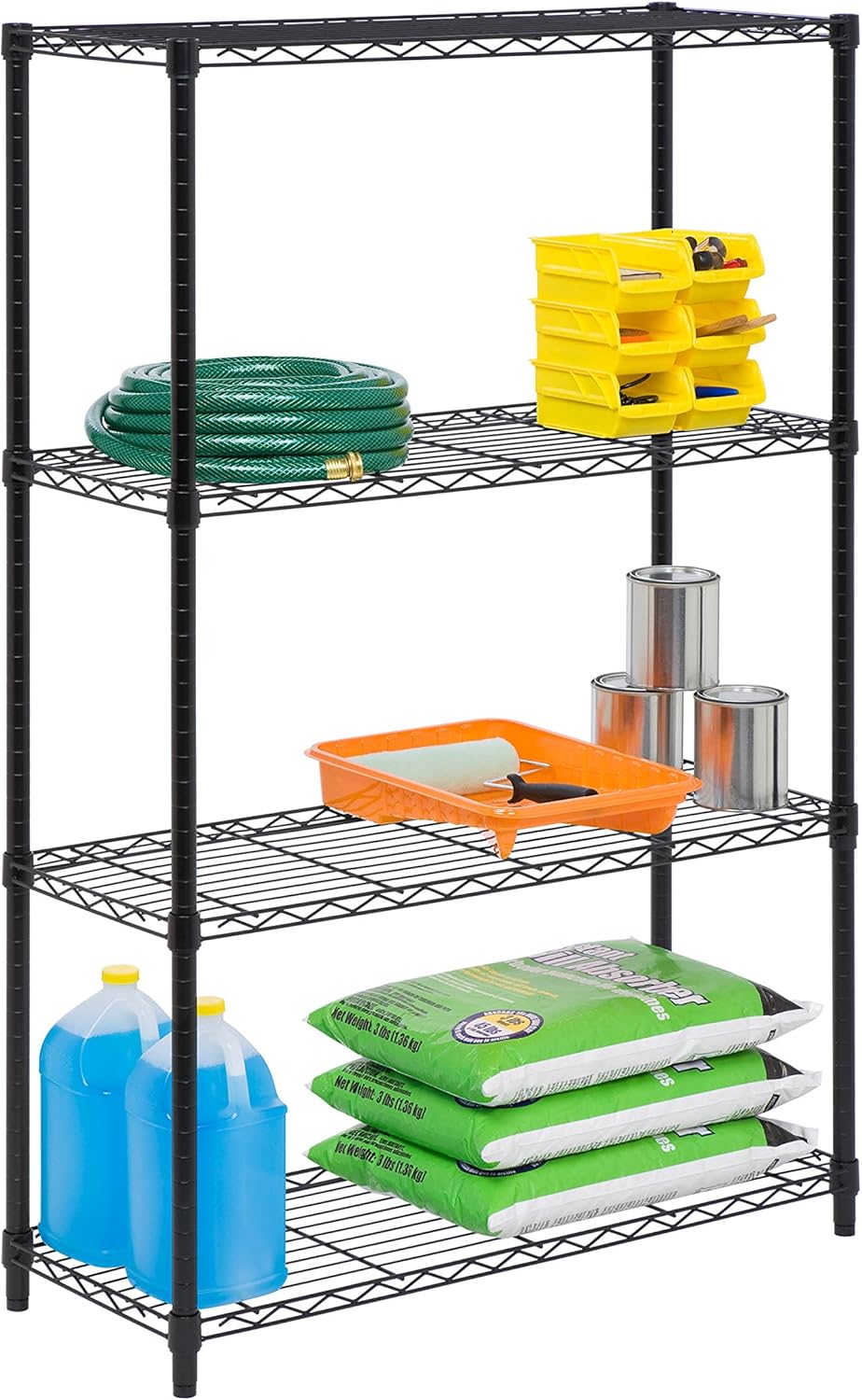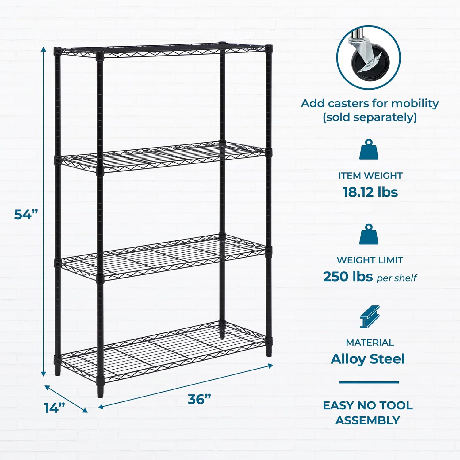 Honey-Can-Do SHF-01908 Adjustable Storage Shelving Unit, 250-Pounds Per Shelf, Black, 4-Tier, 36Lx14Wx54H