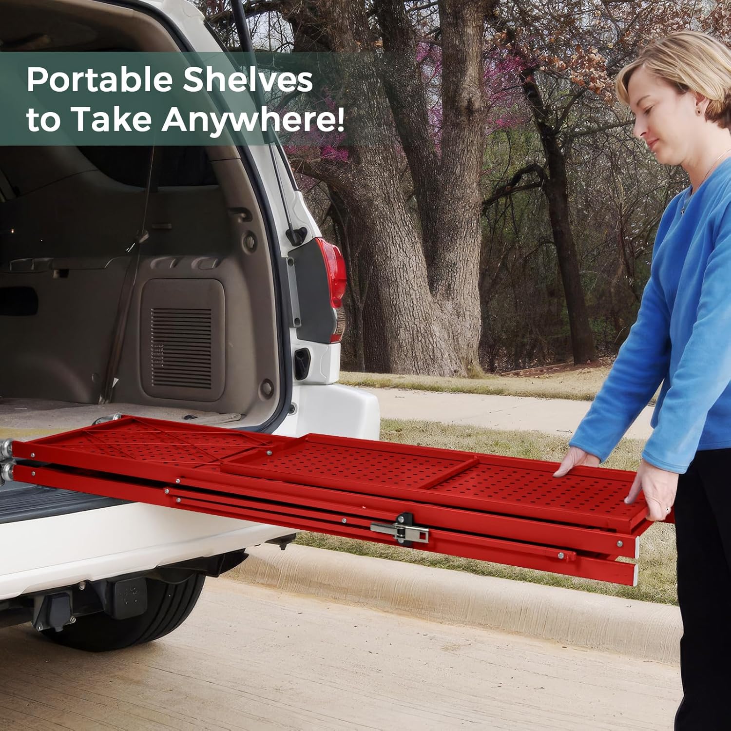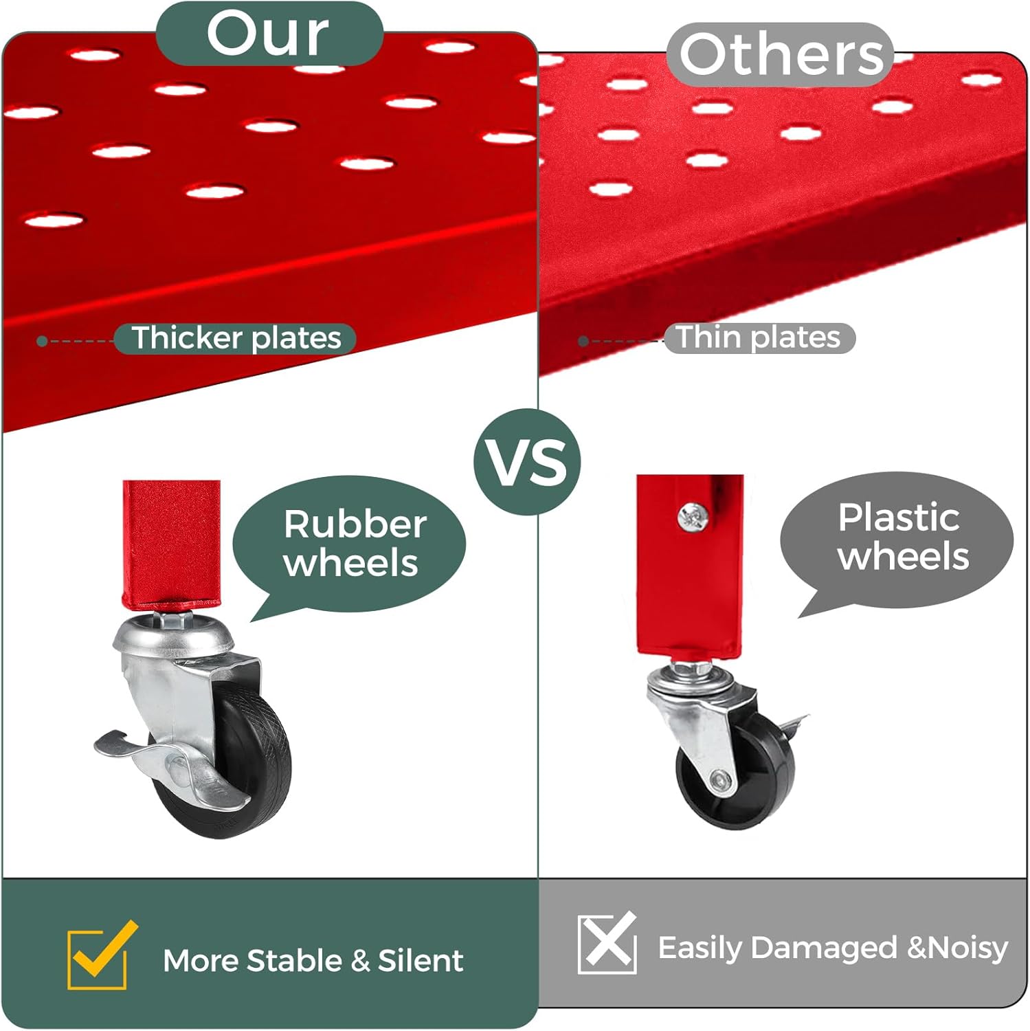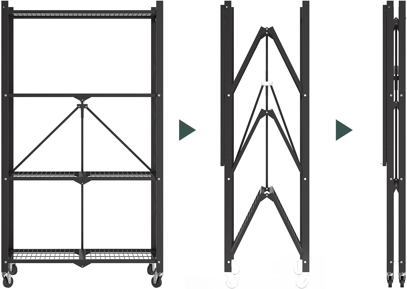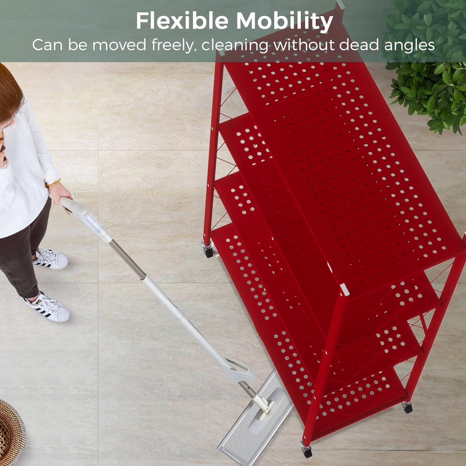 DEANIC 4 Tier Foldable Storage Shelves with Wheels, Large Capacity Shelving Unit, Freestanding Metal Wire Shelf Rack, No Assembly Organizer Rack for Garage Kitchen, Basement, Pantry(Red Pack of 2)