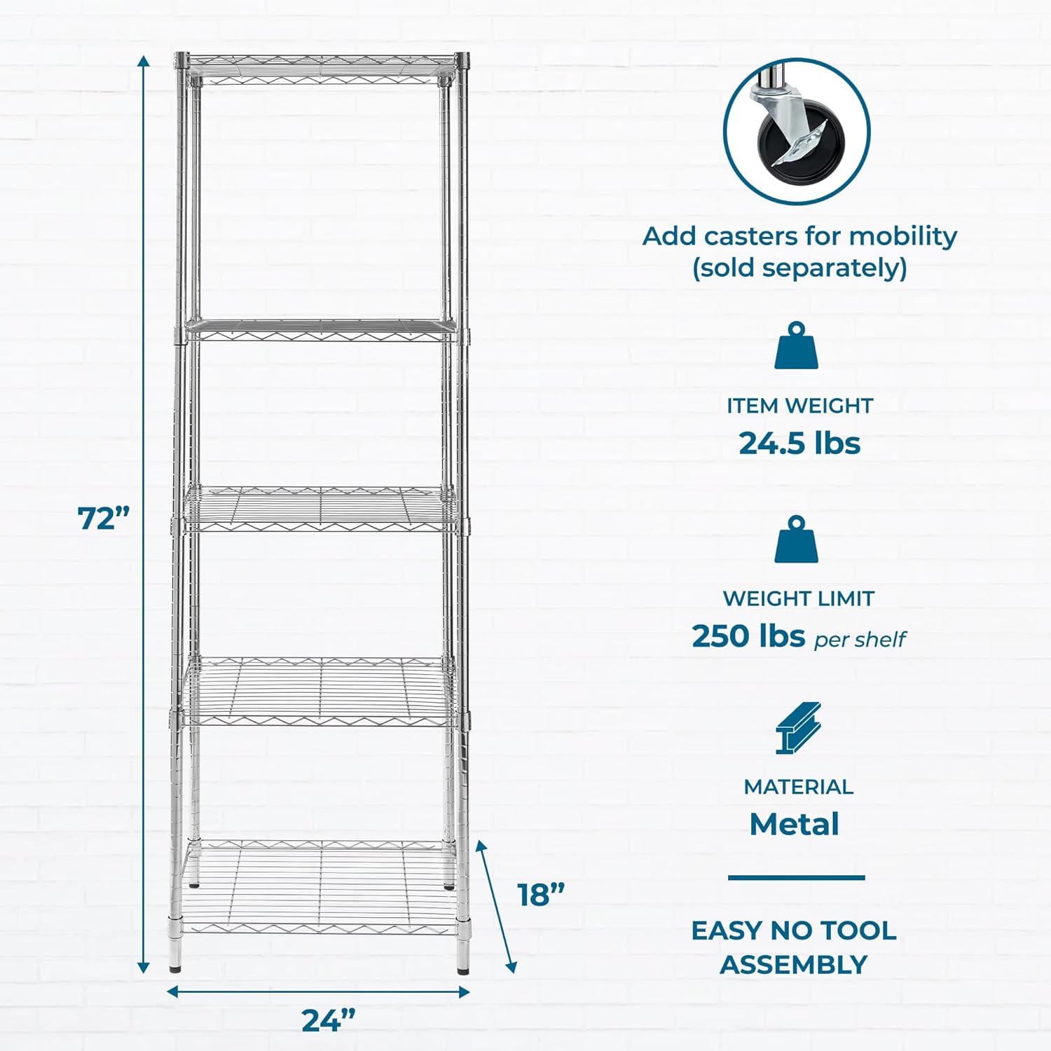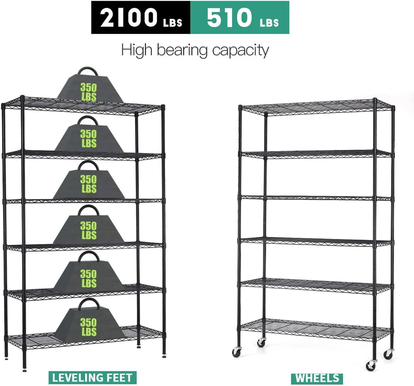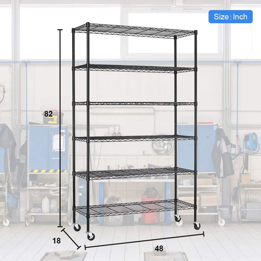 BestMassage 72"x48"x18" 6 Tire Wire Shelving Unit NSF Storage Shelves Large Heavy Duty Metal Shelf Organizer Height Adjustable Commercial Grade Steel Rack 2100 LBS Capacity with Wheels (Chrome)