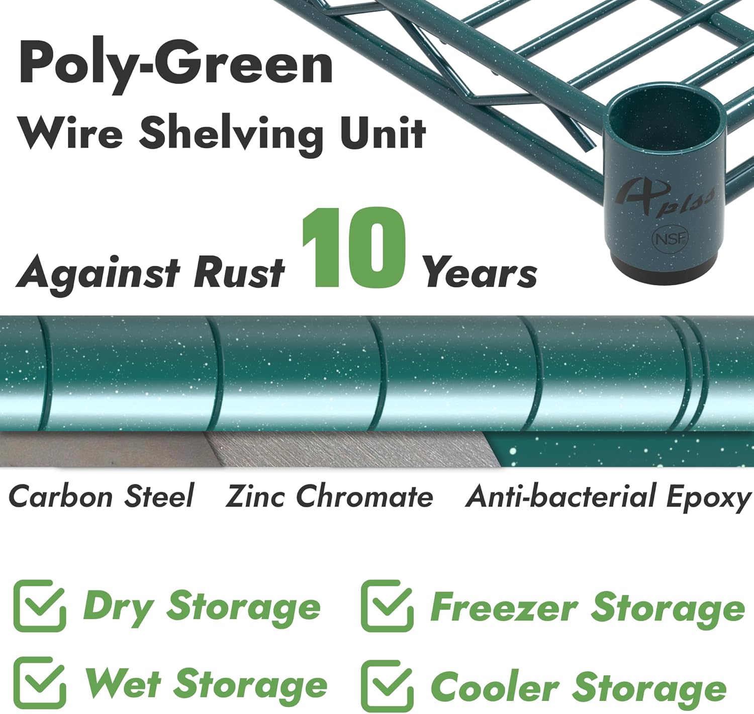 APLSS NSF 4-Tier Green-Epoxy Storage Shelves, 18"x36"x63", Moist&Dry Enviroments, Commercial Heavy Duty Steel Wire Shelving Unit, 800lbs Per Shelf, Walk-in Cooler&Freezer Kitchen