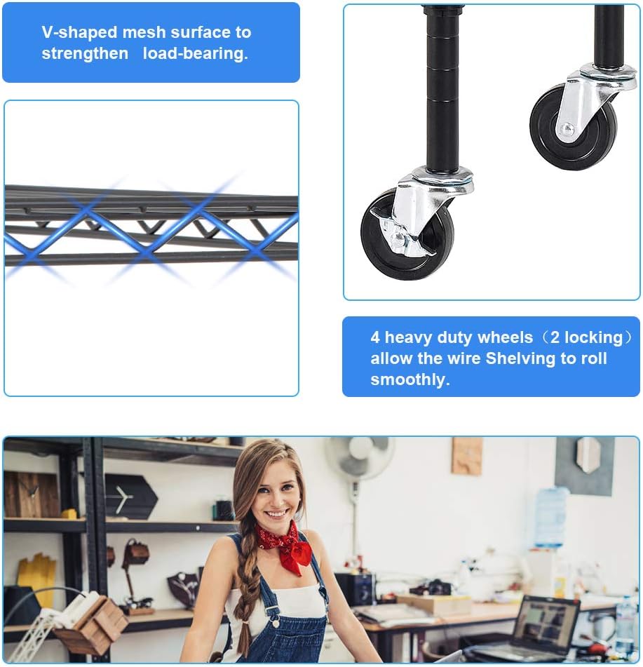 Luxspire Wire Shelving Unit with Wheels, 2400LB Heavy Duty NSF Commercial-Grade Adjustable Storage Shelves, Metal Shelving Utility Rack, Kitchen Garage Organizer Shelf,4-Tier 48x18x72 in, Matte Black