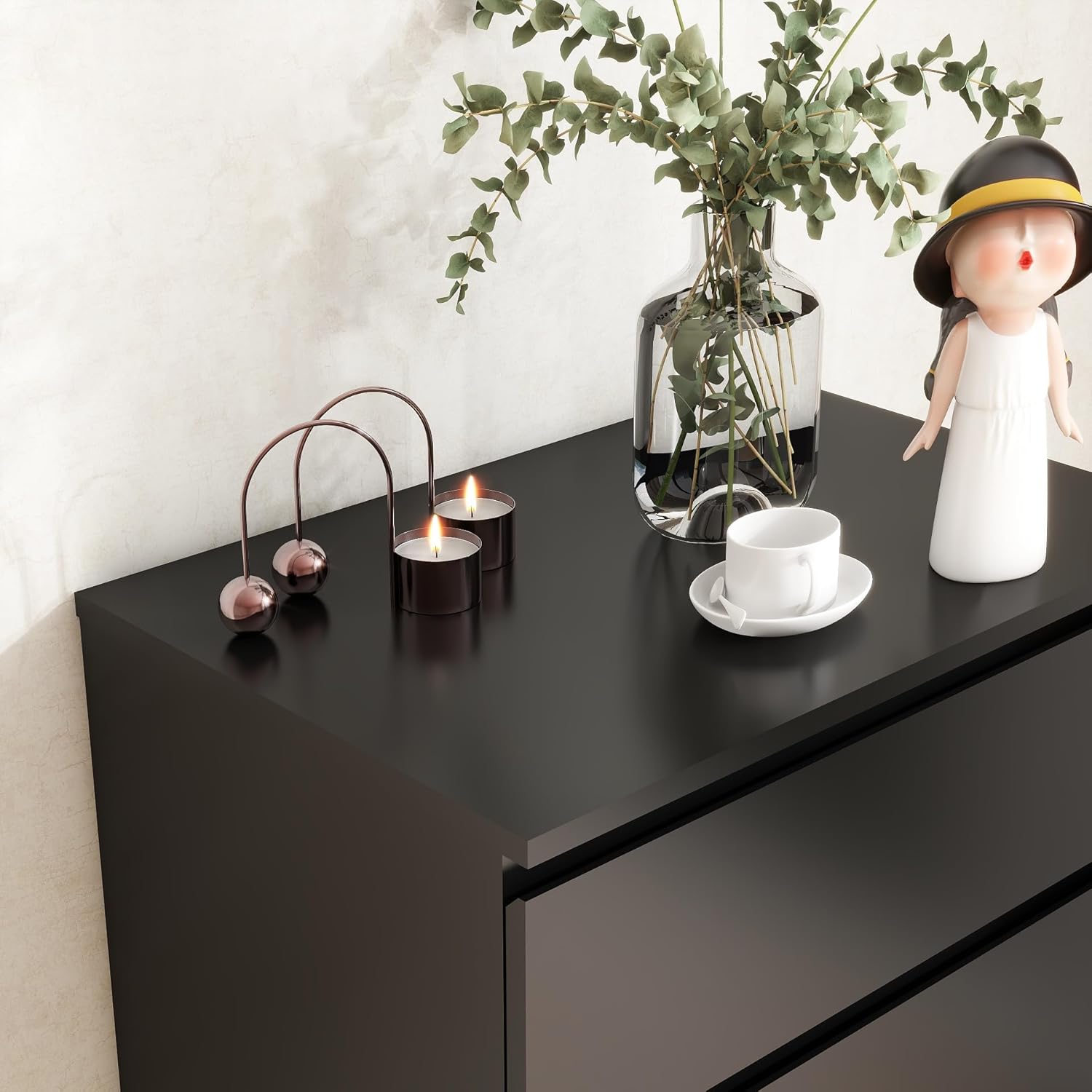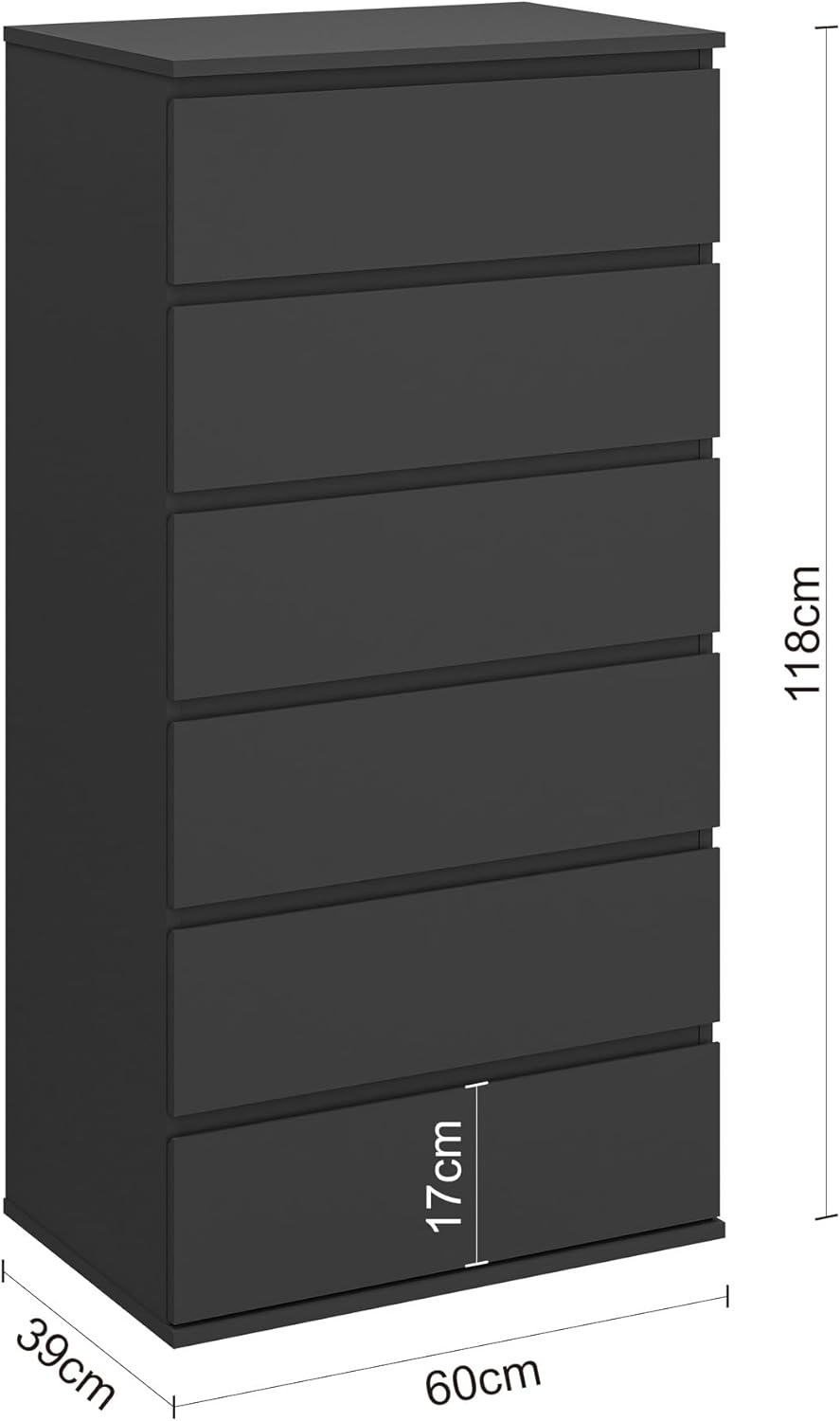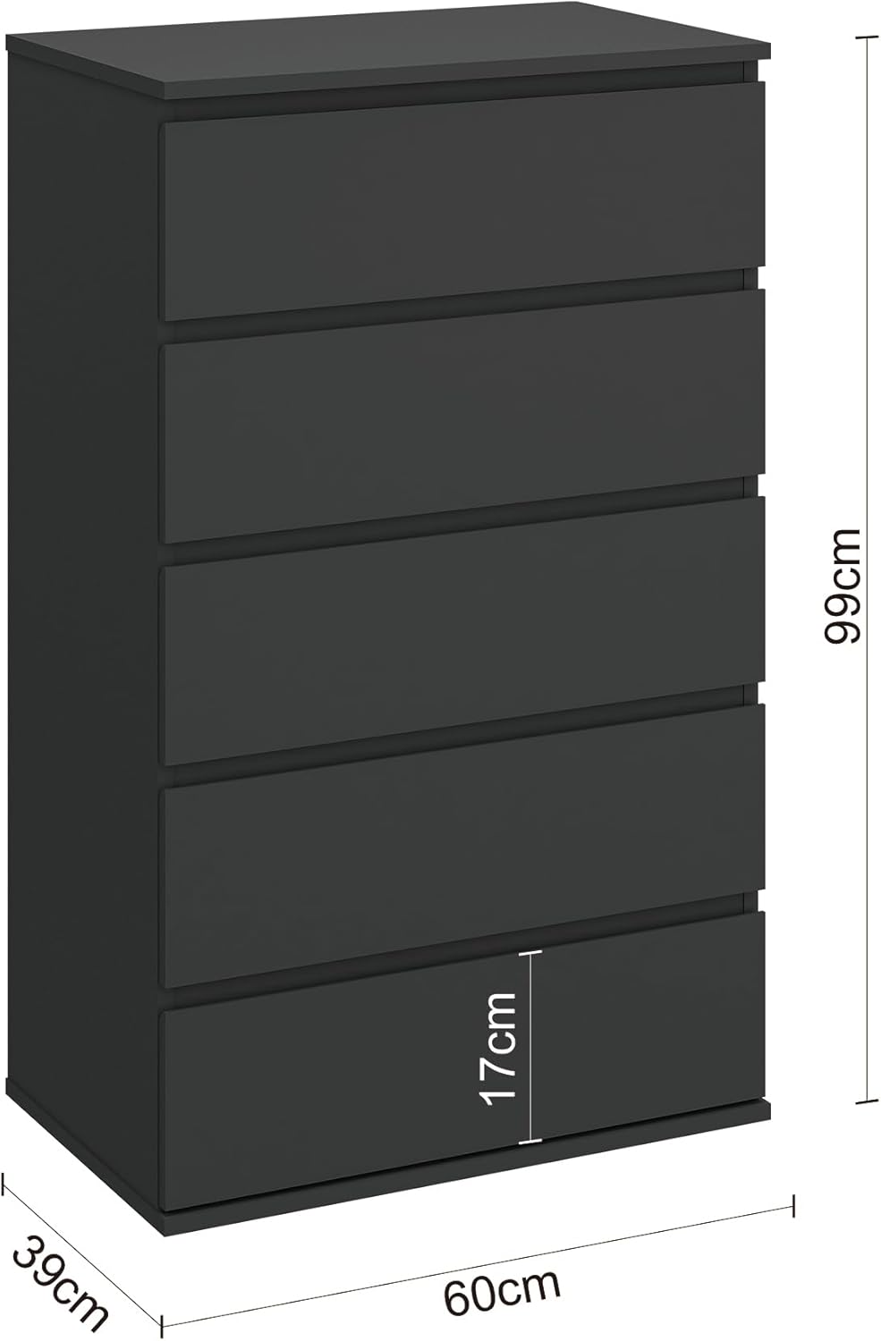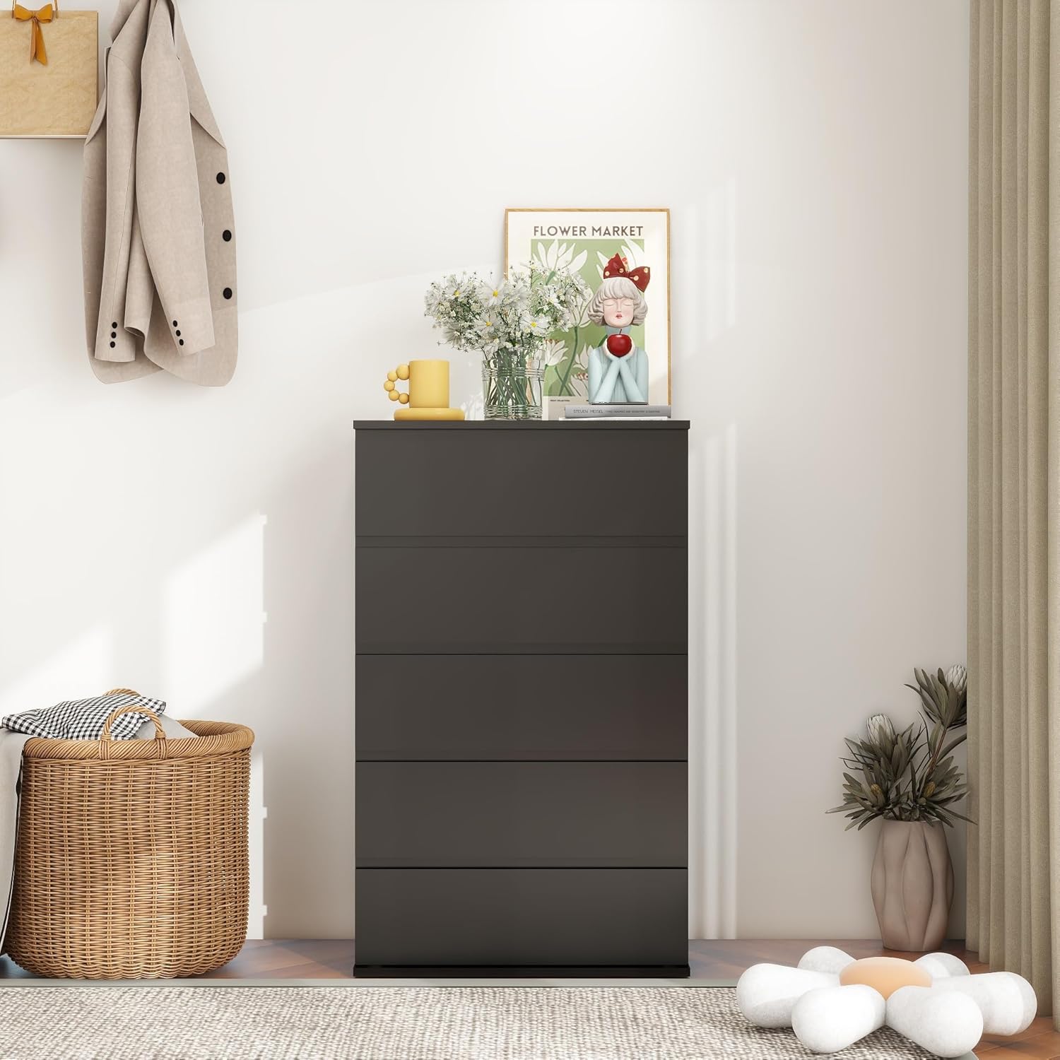 Modern Chest of Drawers, 4/5/6 Drawer Dresser Without Handles Floor Storage Drawer Cabinet Vertical Dresser Storage Organizer for Home Office (5 Drawers, Black)