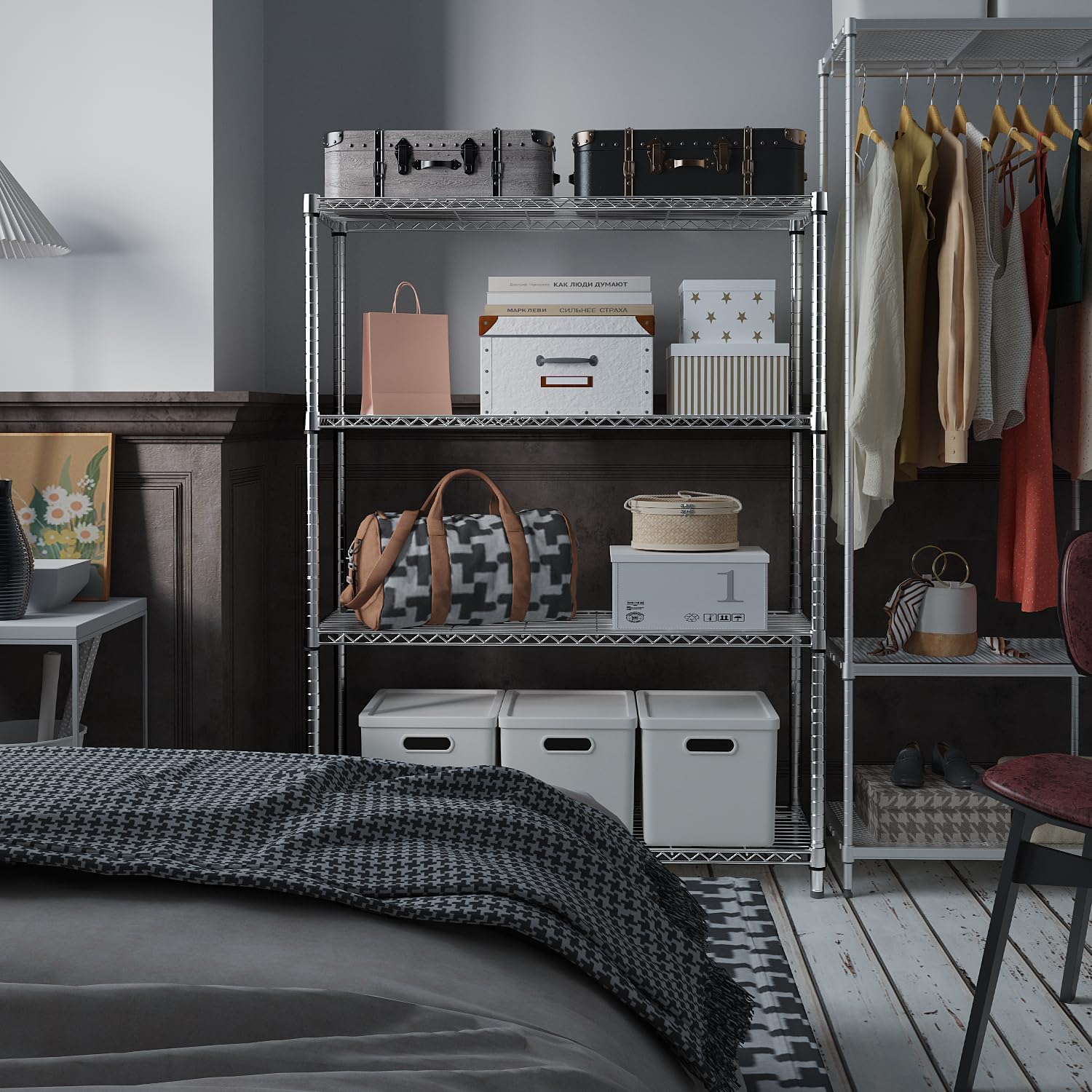 Wardrobe Closet Heavy Duty Clothes Rack, Portable Closet Organizer System with 4 Hang Rods & 8 Shelves, Metal Clothing Rack Garment Rack for Hanging Clothes, Max Load 890 LBS