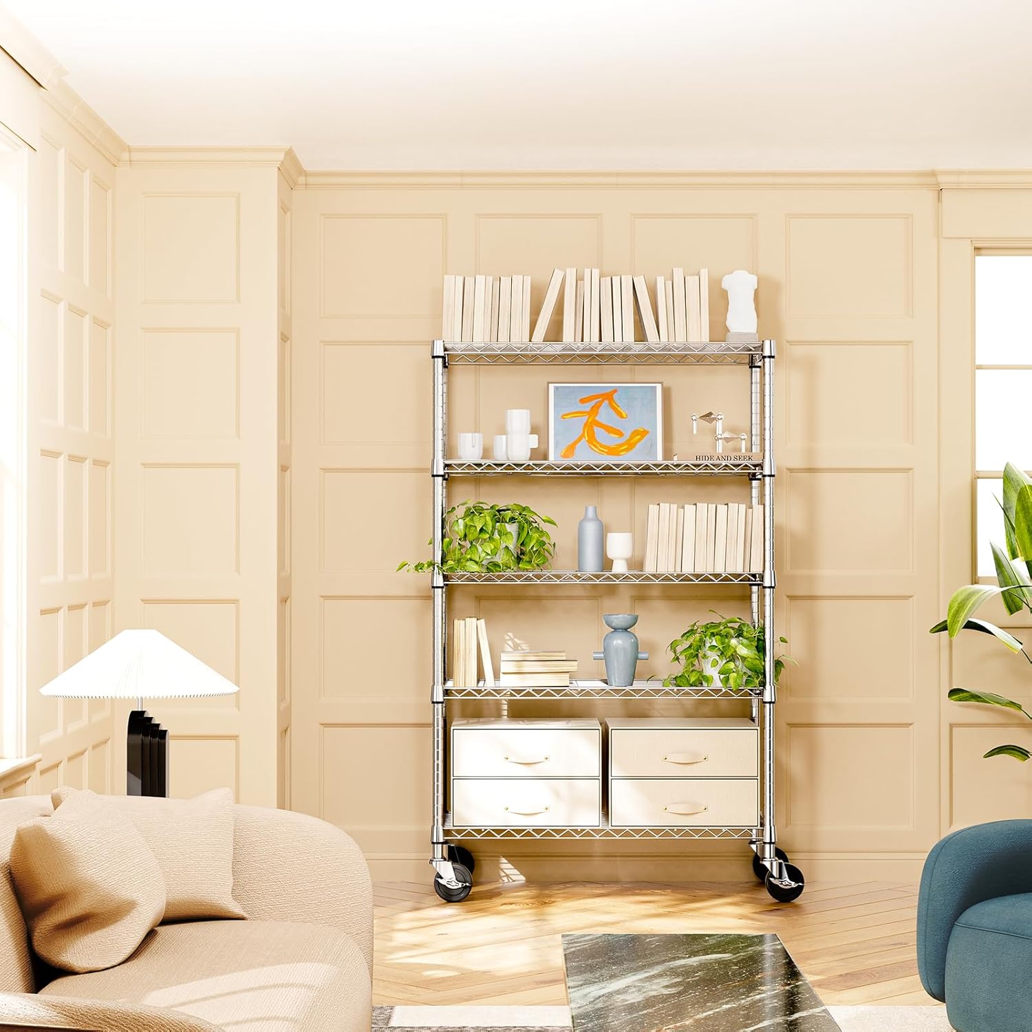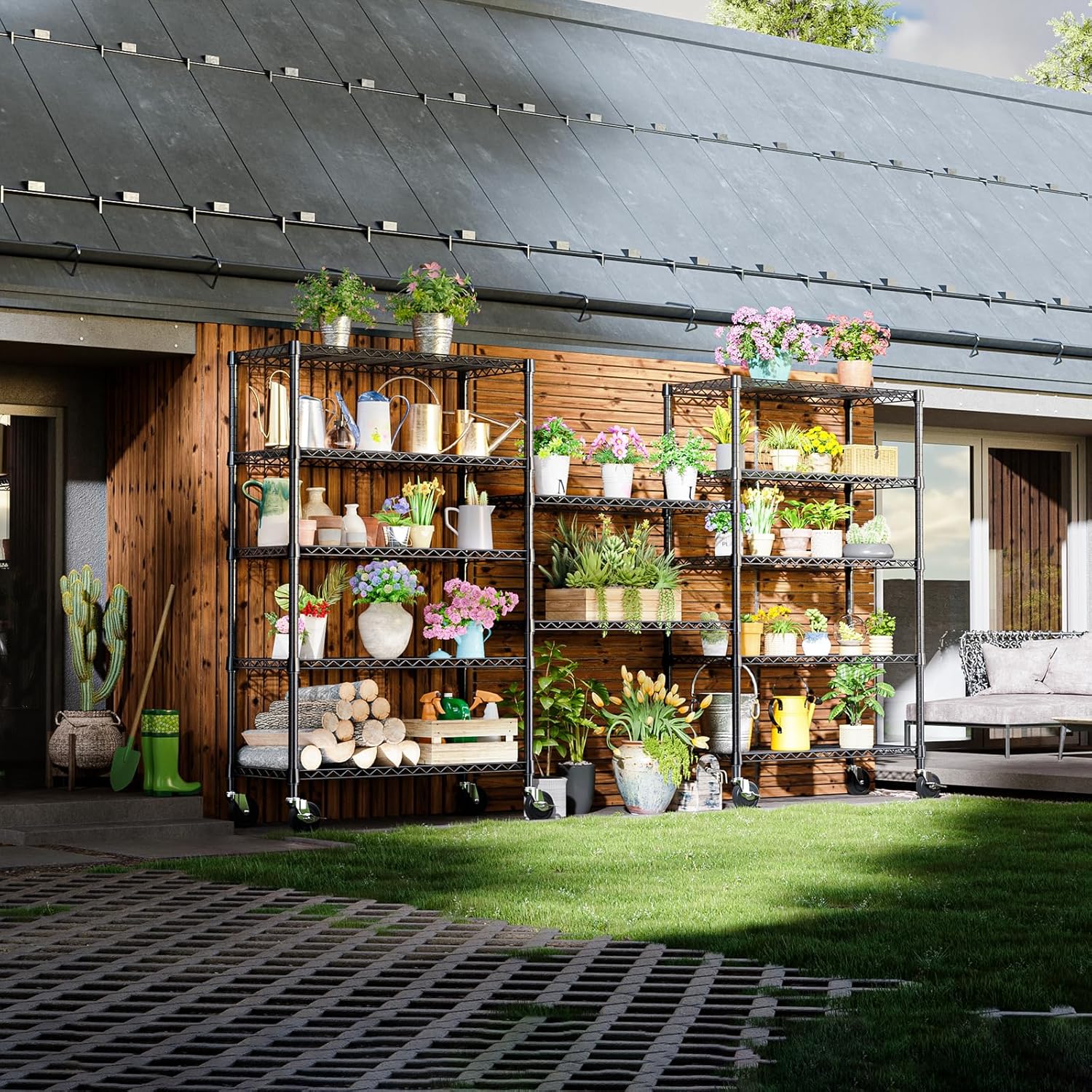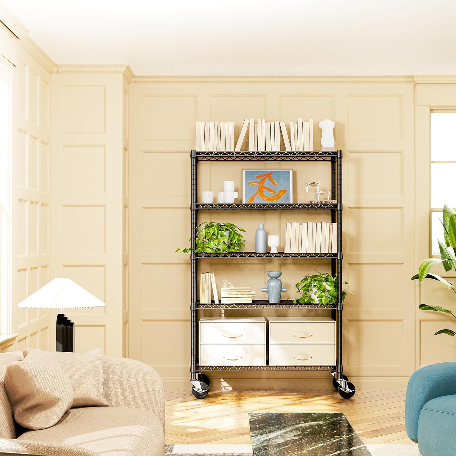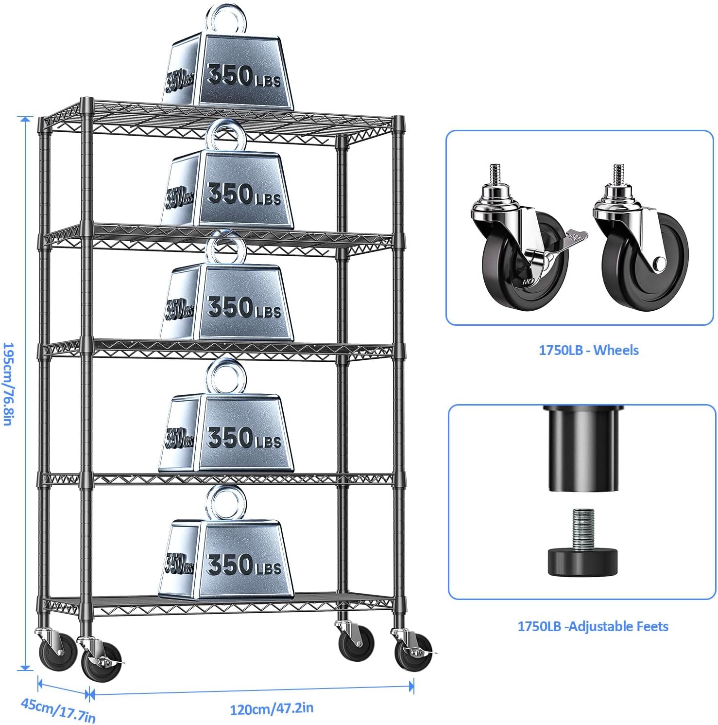 2 Pack 5-Tier Metal Wire Shelving Unit with Wheels & Feet, 14" D x 30" W x 60" H,750 lbs Capacity Adjustable Heavy Duty Steel Wire Rack Storage Shelves for Kitchen, Garage, Pantry