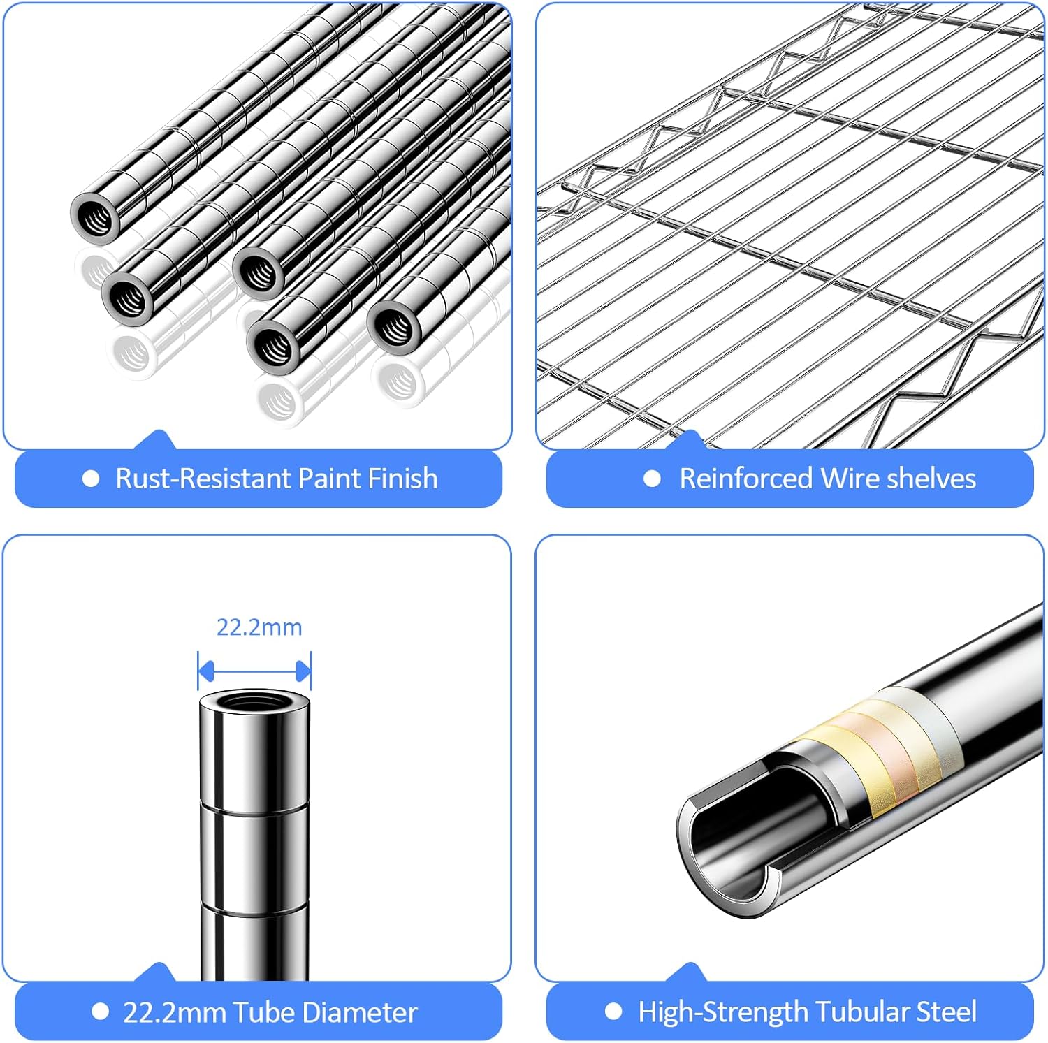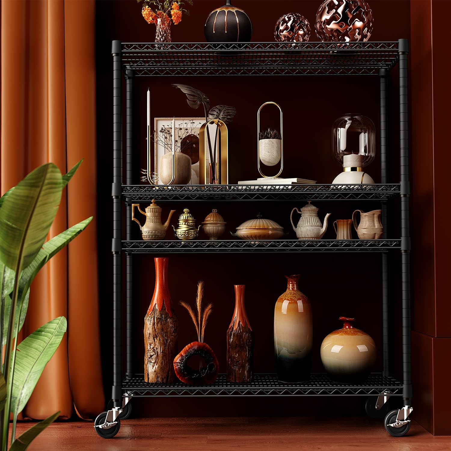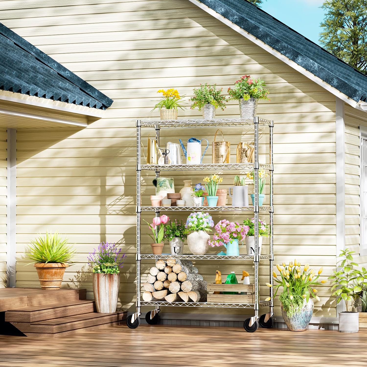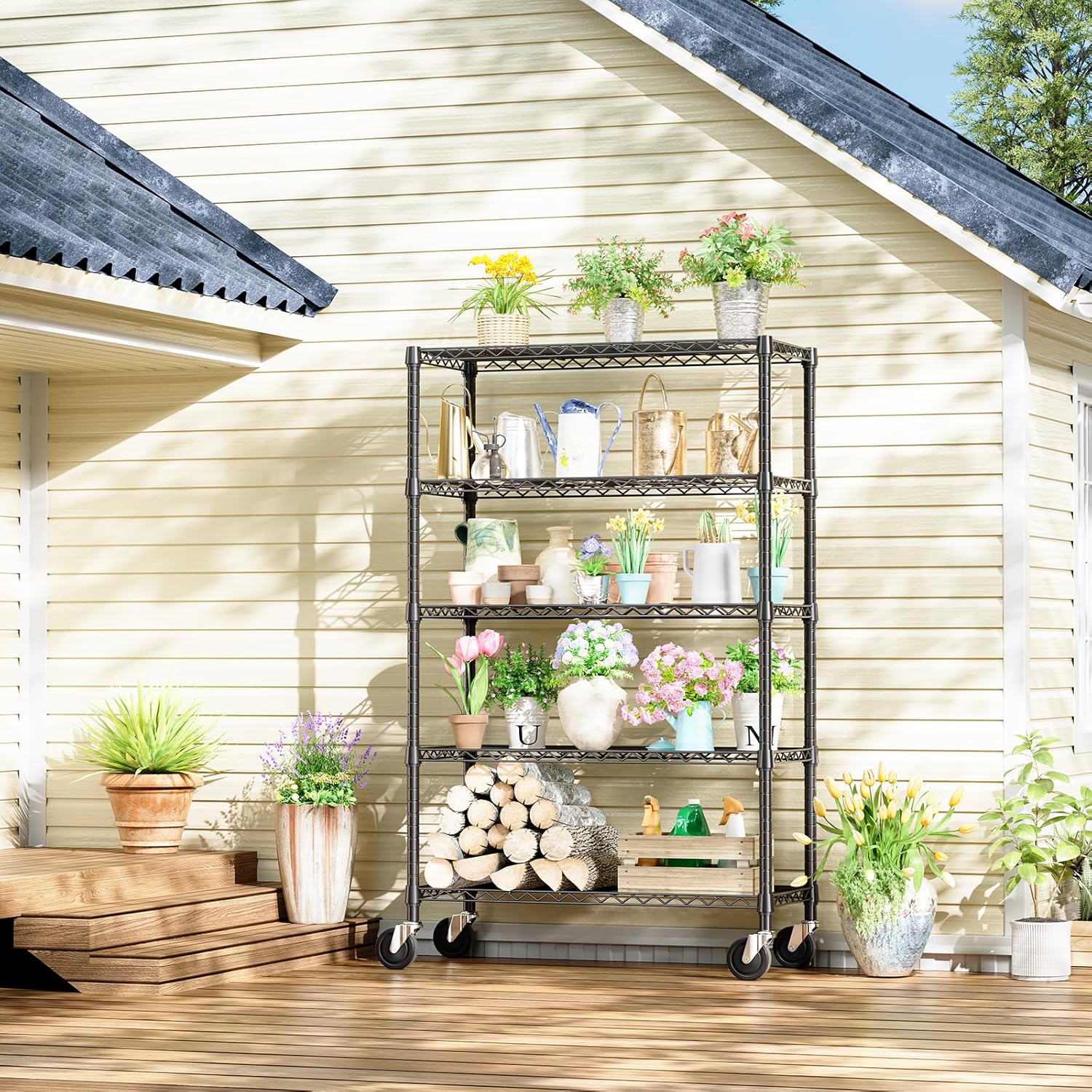 2 Pack 5-Tier Metal Wire Shelving Unit with Wheels & Feet, 14" D x 30" W x 60" H,750 lbs Capacity Adjustable Heavy Duty Steel Wire Rack Storage Shelves for Kitchen, Garage, Pantry